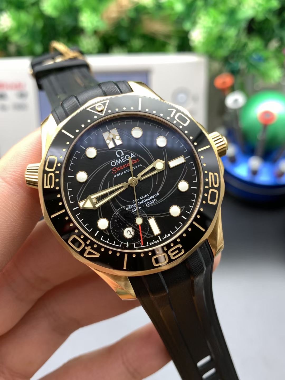 这款手表是AAAAA 1:1 质量 (非常棒). 使用了和原版一模一样的材料. 商标部分也保持了和欧米茄/Omega一样. 图片拍摄是实物手表拍摄, 您所收到的实物保证和我们图片一模一样.