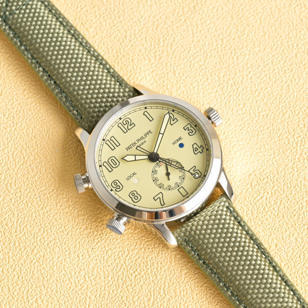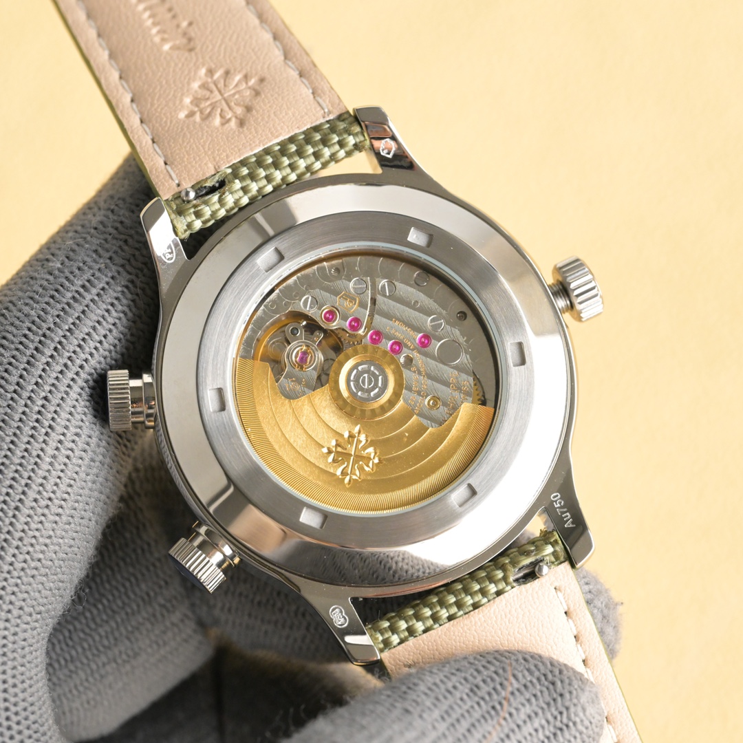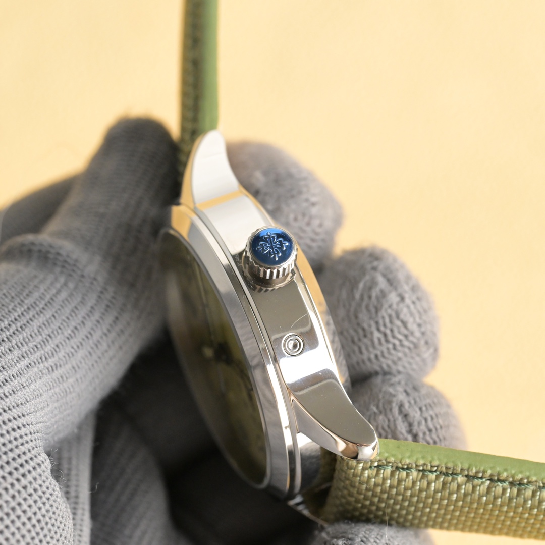 这款手表是AAAAA 1:1 质量 (非常棒). 使用了和原版一模一样的材料. 商标部分也保持了和百达翡丽/Patek Philippe一样. 图片拍摄是实物手表拍摄, 您所收到的实物保证和我们图片一模一样.