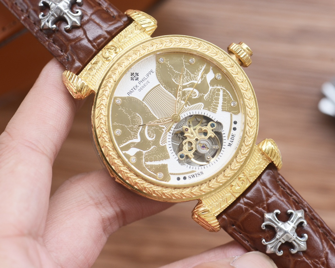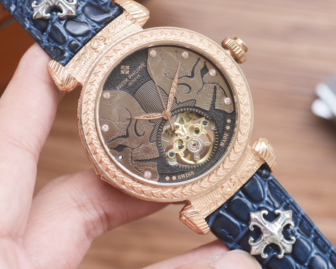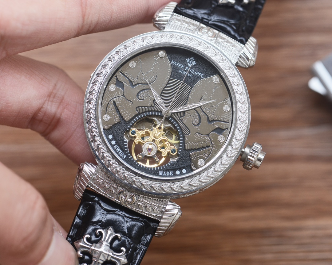 这款手表是AAAAA 1:1 质量 (非常棒). 使用了和原版一模一样的材料. 商标部分也保持了和克罗心/Chrome Hearts一样. 图片拍摄是实物手表拍摄, 您所收到的实物保证和我们图片一模一样.