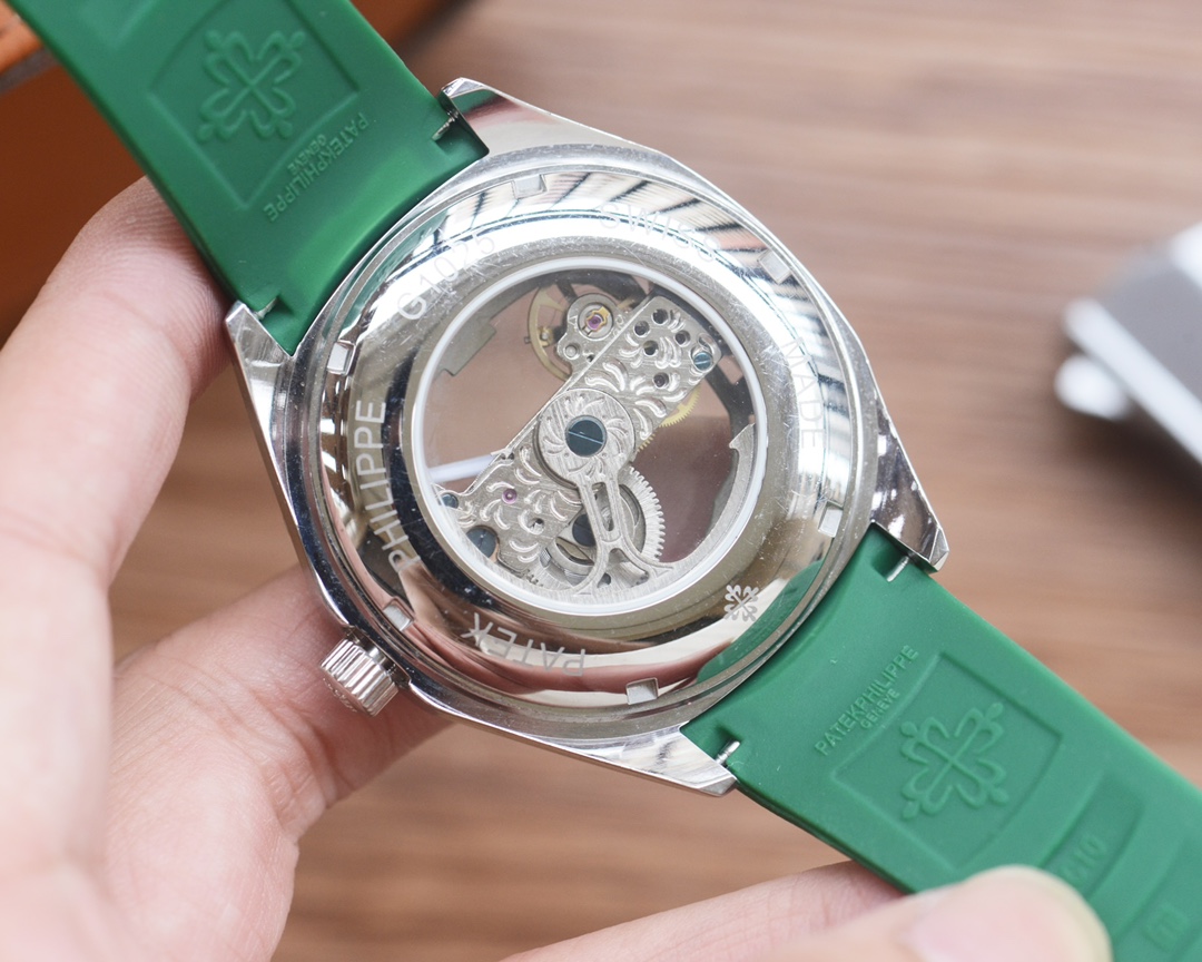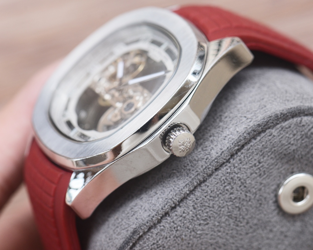 这款手表是AAAAA 1:1 质量 (非常棒). 使用了和原版一模一样的材料. 商标部分也保持了和百达翡丽/Patek Philippe一样. 图片拍摄是实物手表拍摄, 您所收到的实物保证和我们图片一模一样.