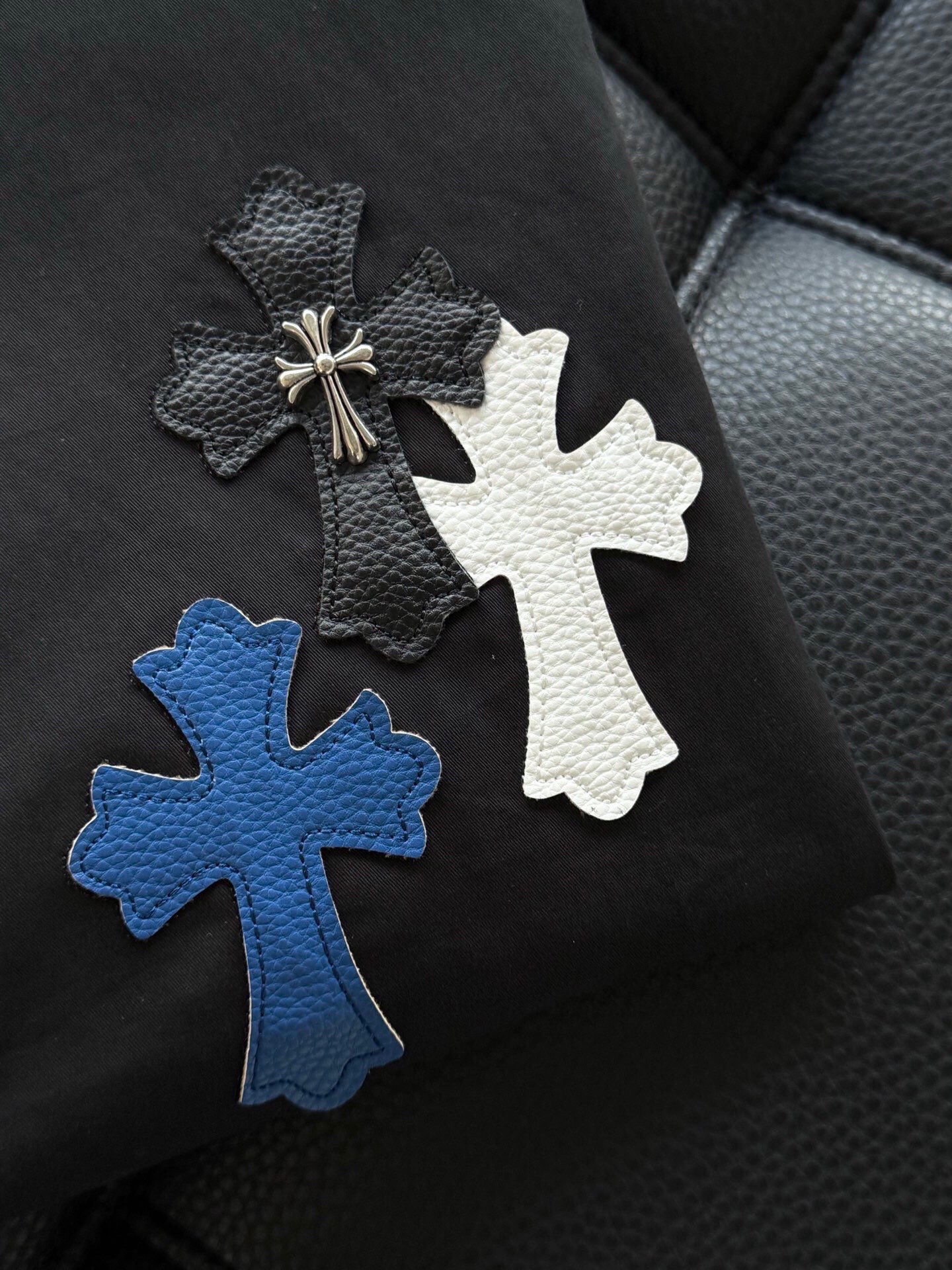 这款衣服是AAAAA 1:1 质量 (非常棒). 使用了和原版一模一样的材料. 商标部分也保持了和克罗心/Chrome Hearts一样. 图片拍摄是实物衣服拍摄, 您所收到的实物保证和我们图片一模一样.