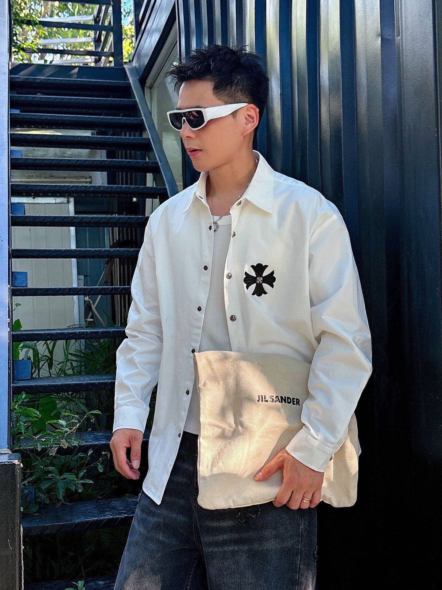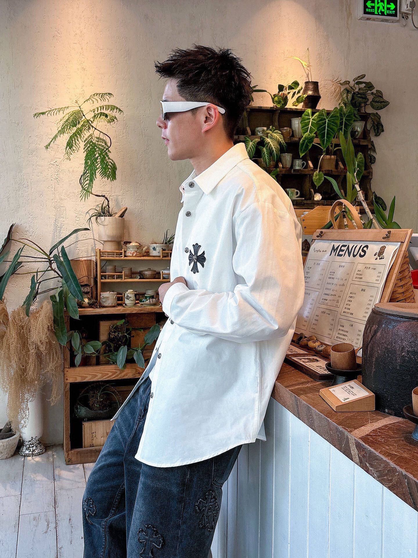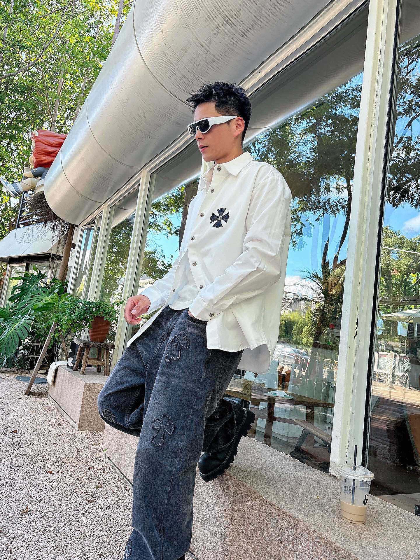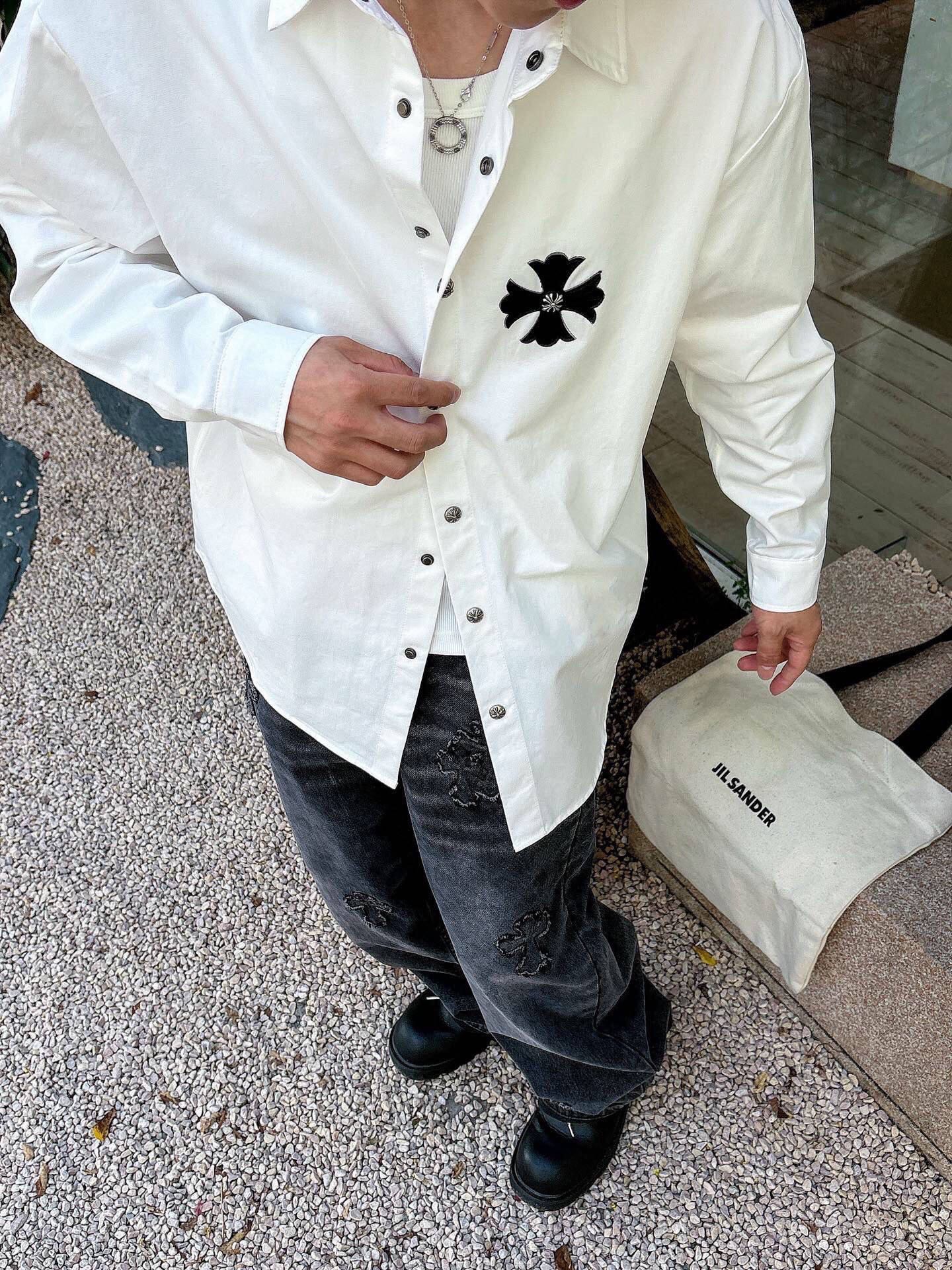 这款衣服是AAAAA 1:1 质量 (非常棒). 使用了和原版一模一样的材料. 商标部分也保持了和克罗心/Chrome Hearts一样. 图片拍摄是实物衣服拍摄, 您所收到的实物保证和我们图片一模一样.
