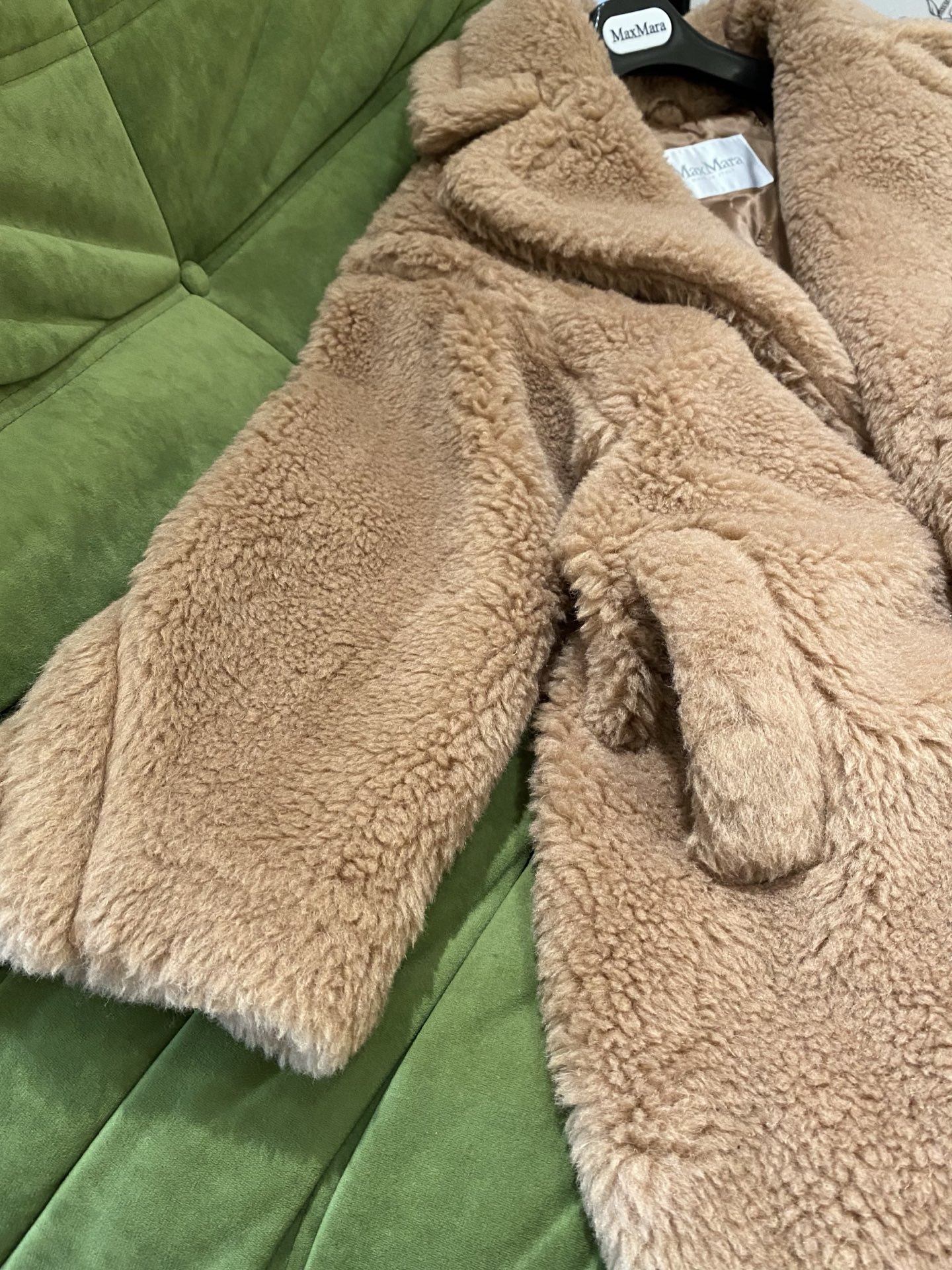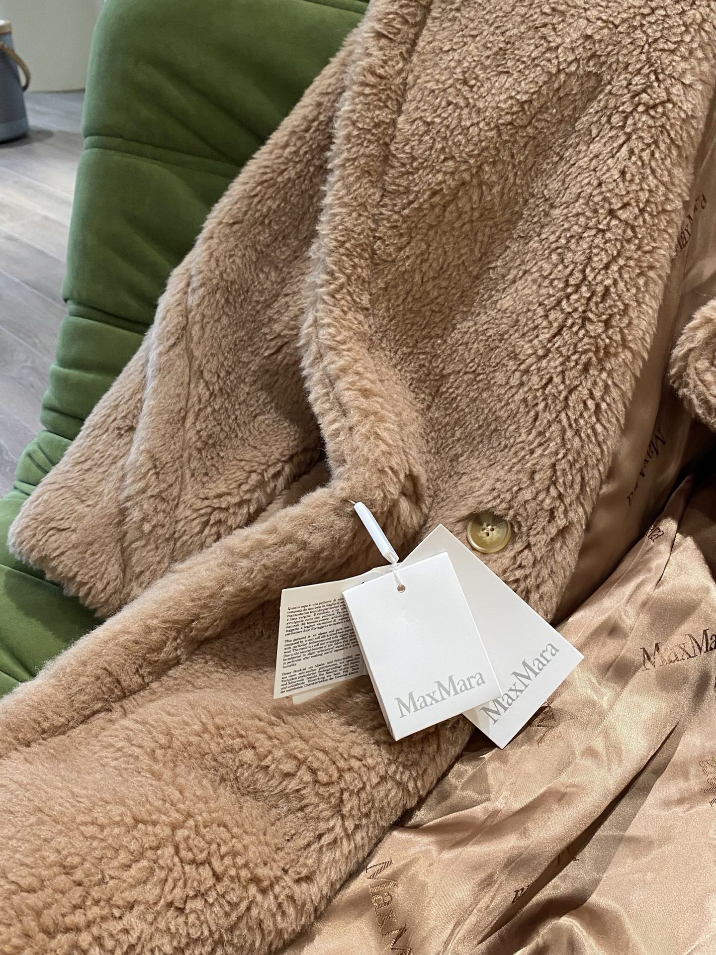这款衣服是AAAAA 1:1 质量 (非常棒). 使用了和原版一模一样的材料. 商标部分也保持了和Max Mara一样. 图片拍摄是实物衣服拍摄, 您所收到的实物保证和我们图片一模一样.