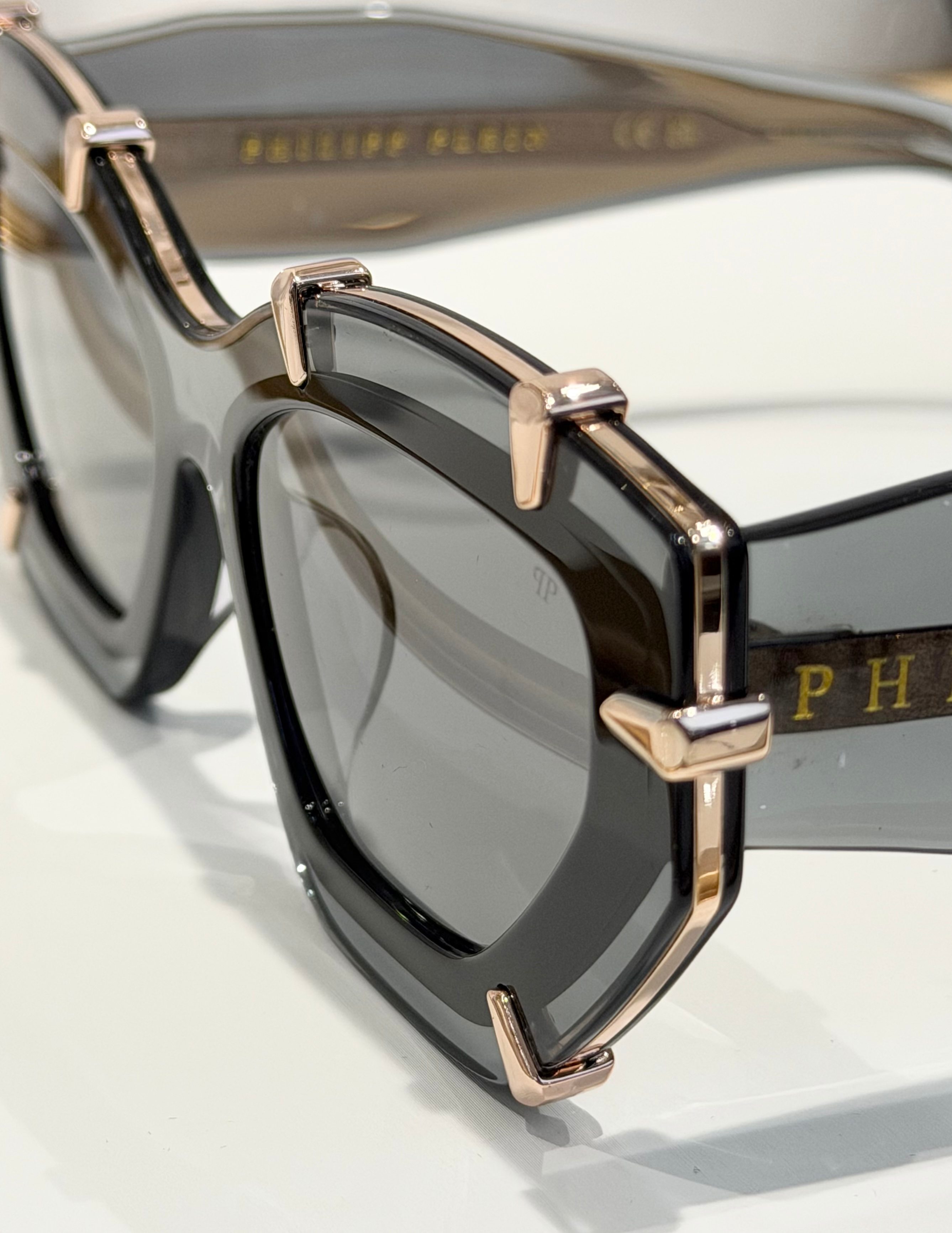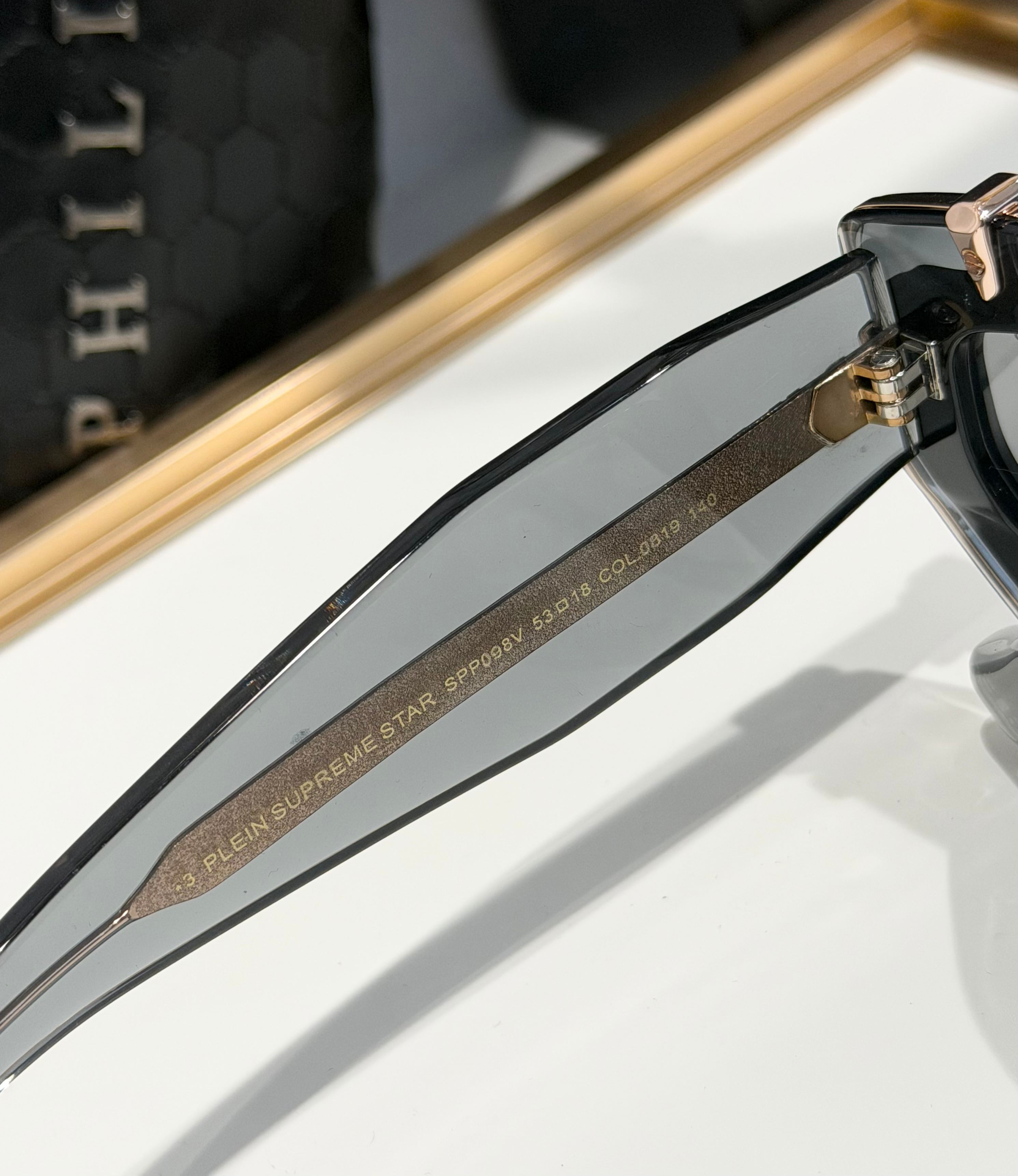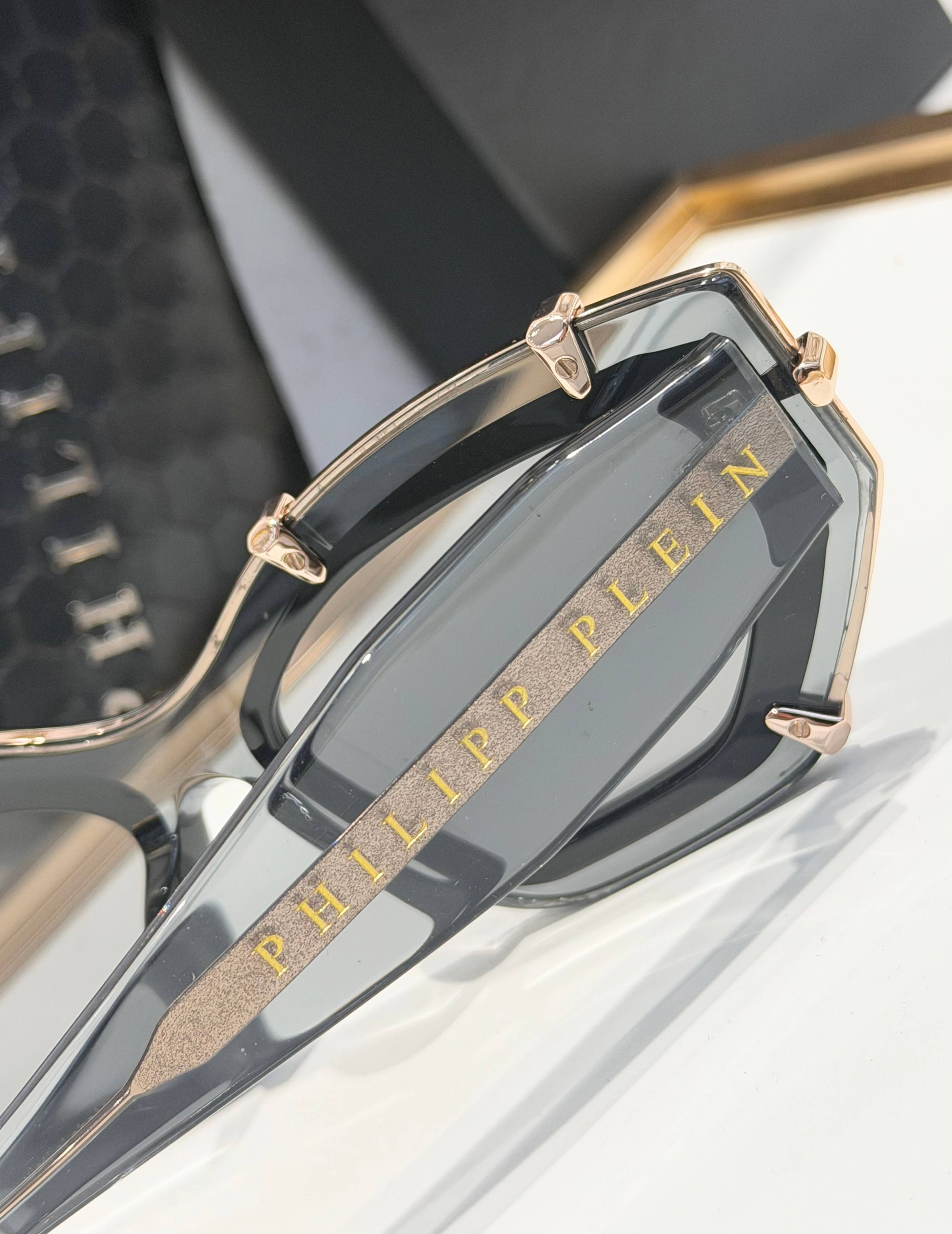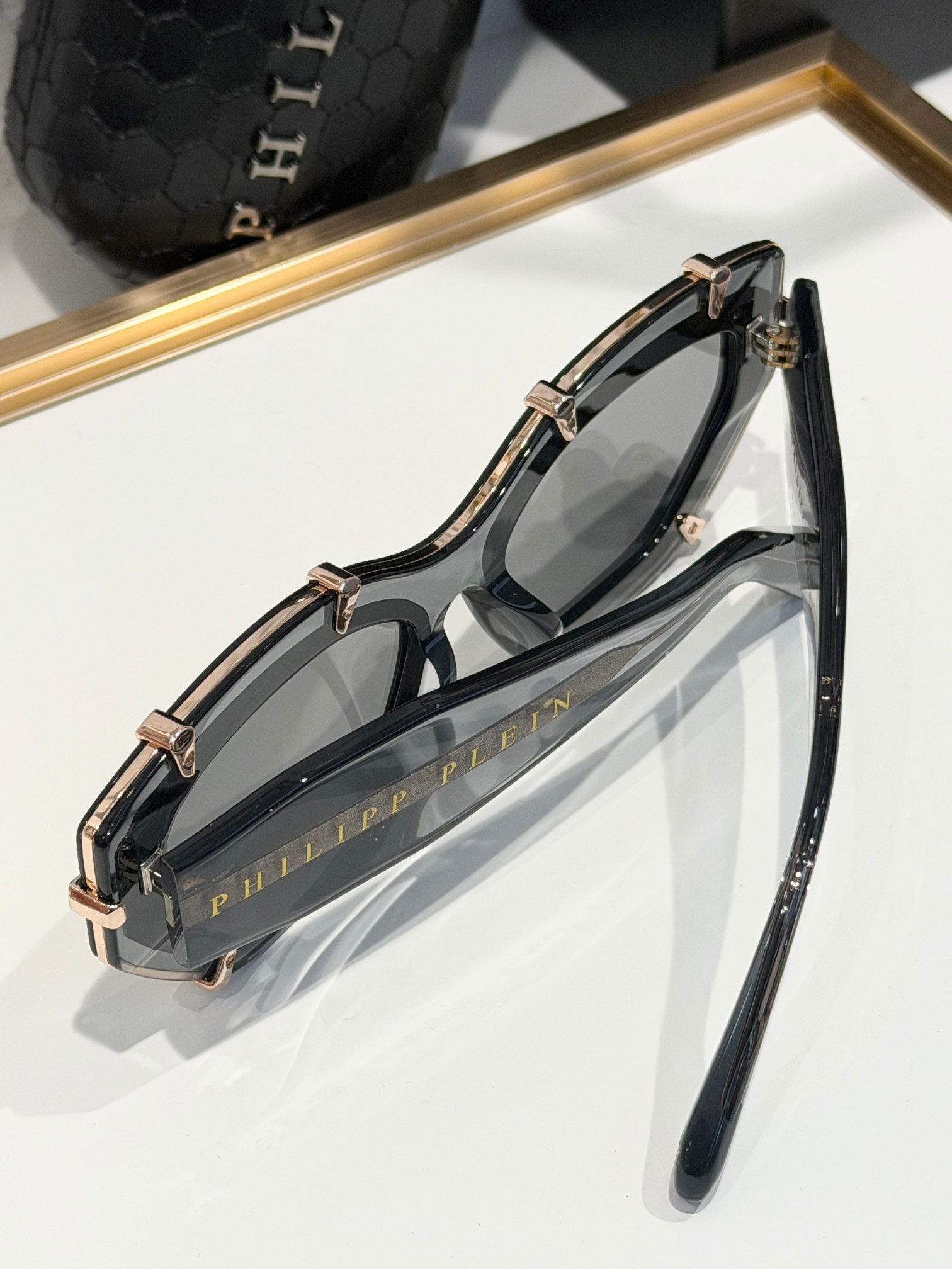 这款太阳眼镜是AAAAA 1:1 质量 (非常棒). 使用了和原版一模一样的材料. 商标部分也保持了和菲利普·普林/Philipp Plein一样. 图片拍摄是实物太阳眼镜拍摄, 您所收到的实物保证和我们图片一模一样.