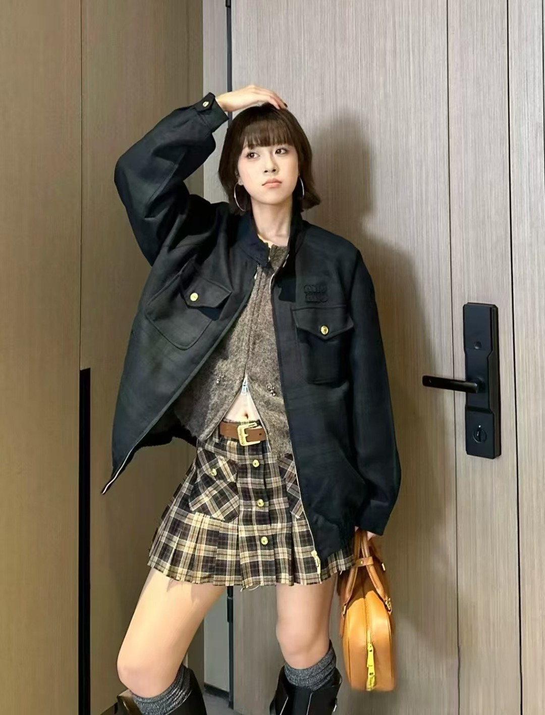 这款衣服是AAAAA 1:1 质量 (非常棒). 使用了和原版一模一样的材料. 商标部分也保持了和缪缪/Miu Miu一样. 图片拍摄是实物衣服拍摄, 您所收到的实物保证和我们图片一模一样.