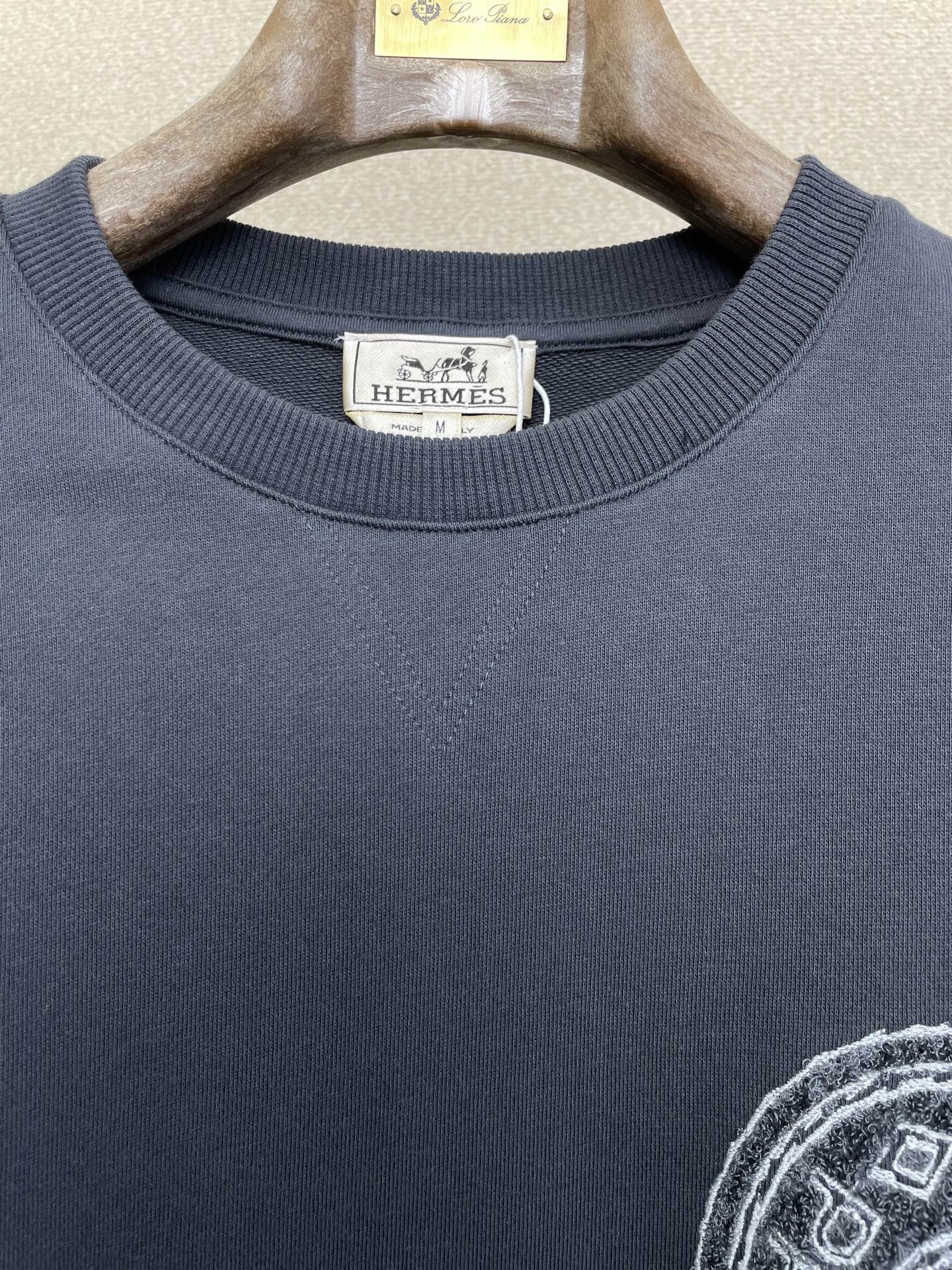这款衣服是AAAAA 1:1 质量 (非常棒). 使用了和原版一模一样的材料. 商标部分也保持了和爱马仕/Hermes一样. 图片拍摄是实物衣服拍摄, 您所收到的实物保证和我们图片一模一样.