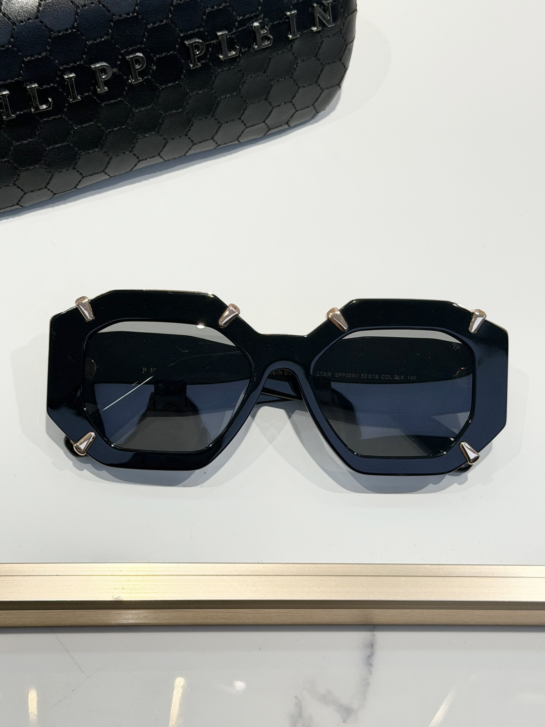 这款太阳眼镜是AAAAA 1:1 质量 (非常棒). 使用了和原版一模一样的材料. 商标部分也保持了和菲利普·普林/Philipp Plein一样. 图片拍摄是实物太阳眼镜拍摄, 您所收到的实物保证和我们图片一模一样.