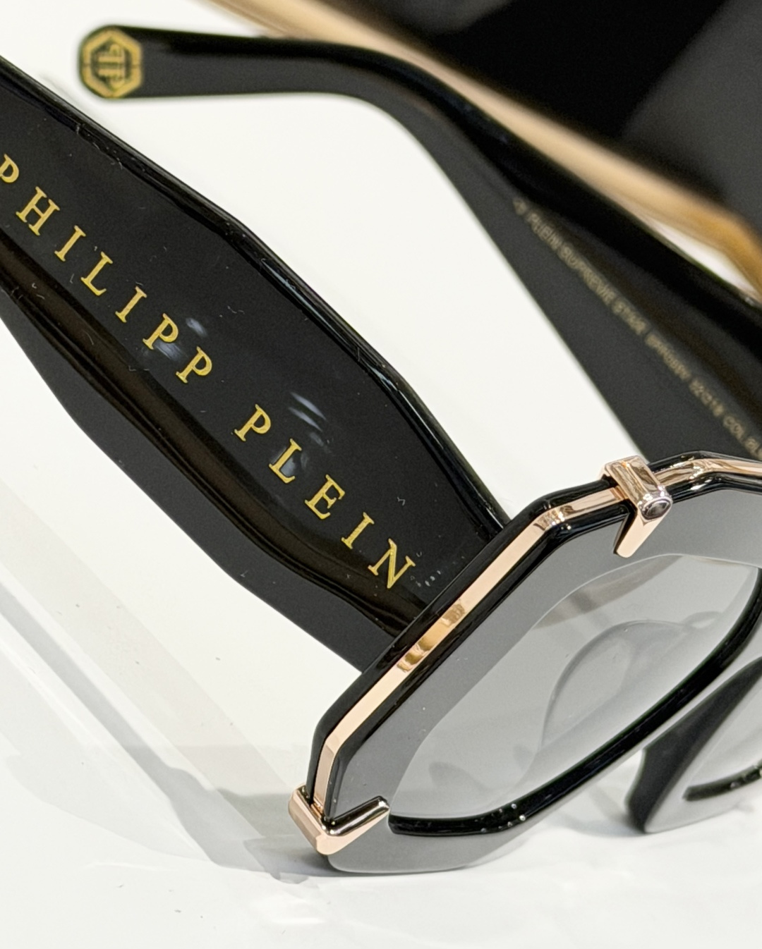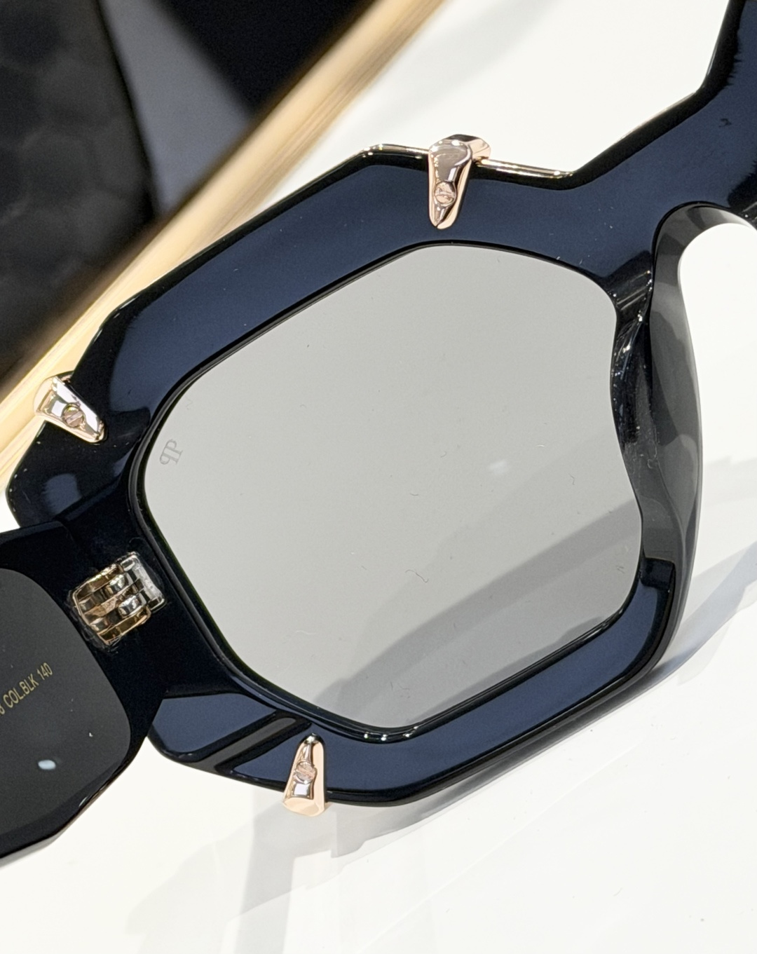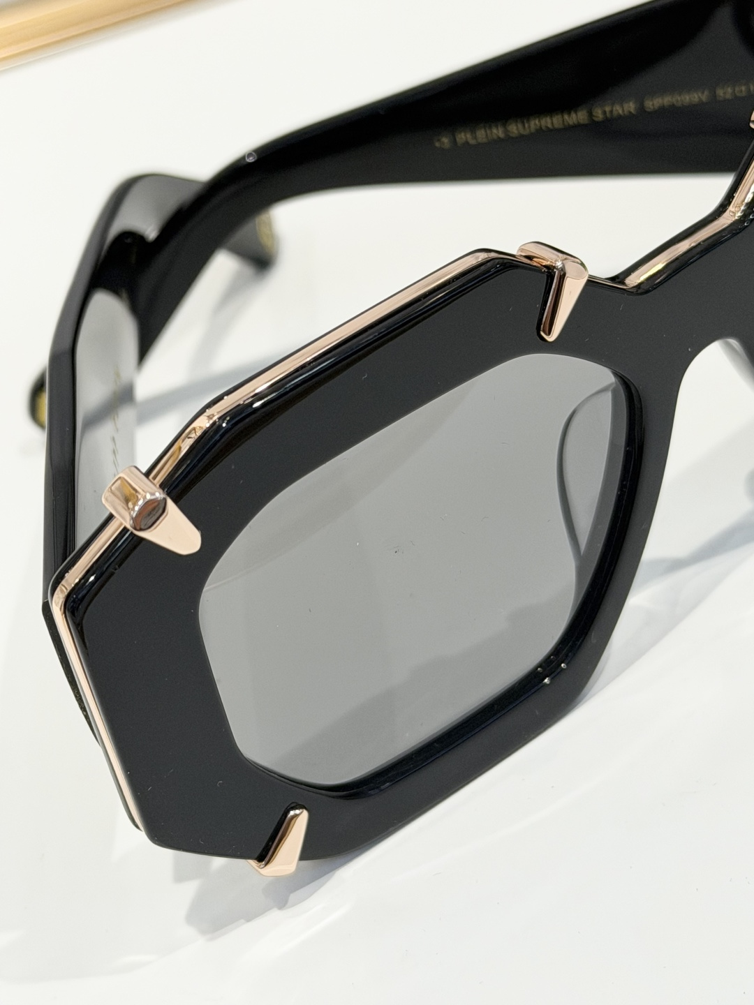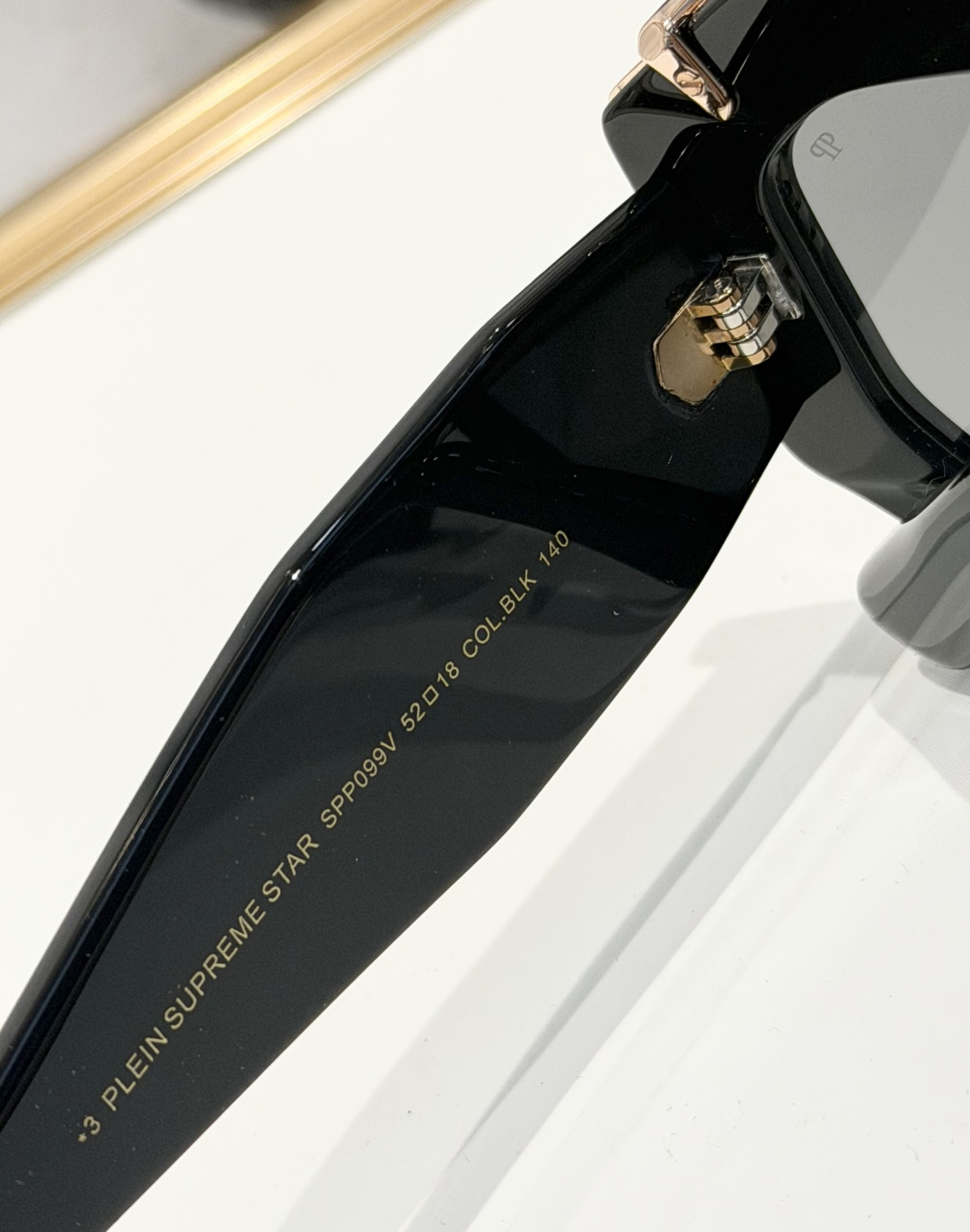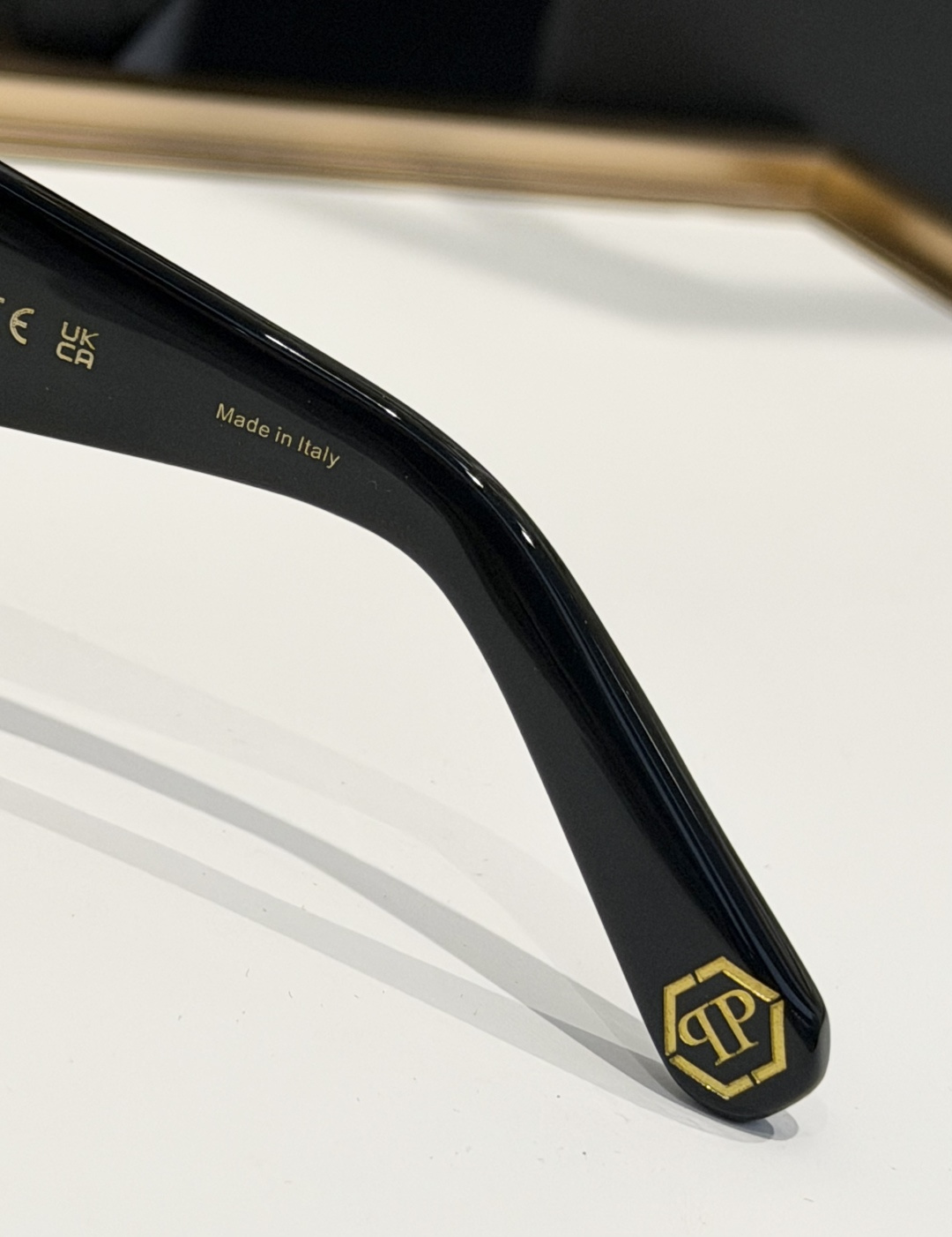 这款太阳眼镜是AAAAA 1:1 质量 (非常棒). 使用了和原版一模一样的材料. 商标部分也保持了和菲利普·普林/Philipp Plein一样. 图片拍摄是实物太阳眼镜拍摄, 您所收到的实物保证和我们图片一模一样.