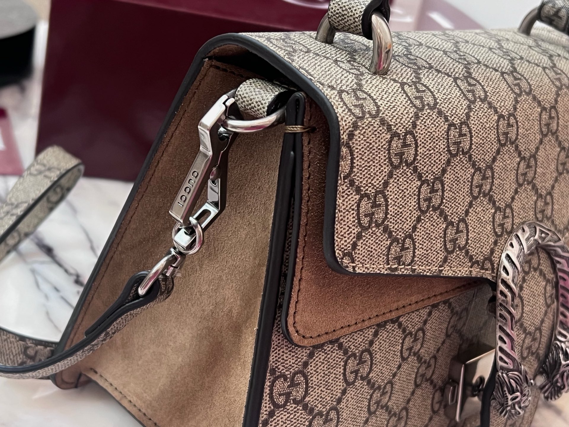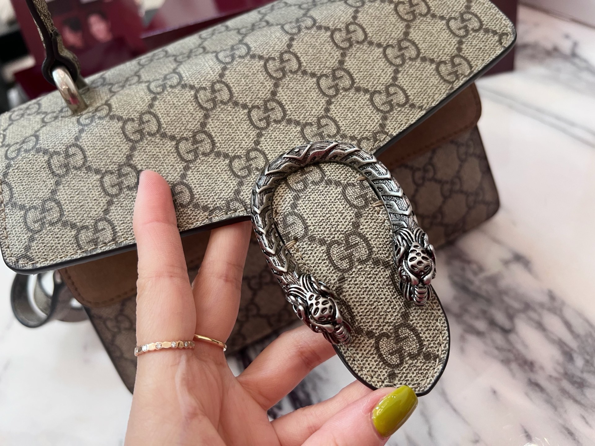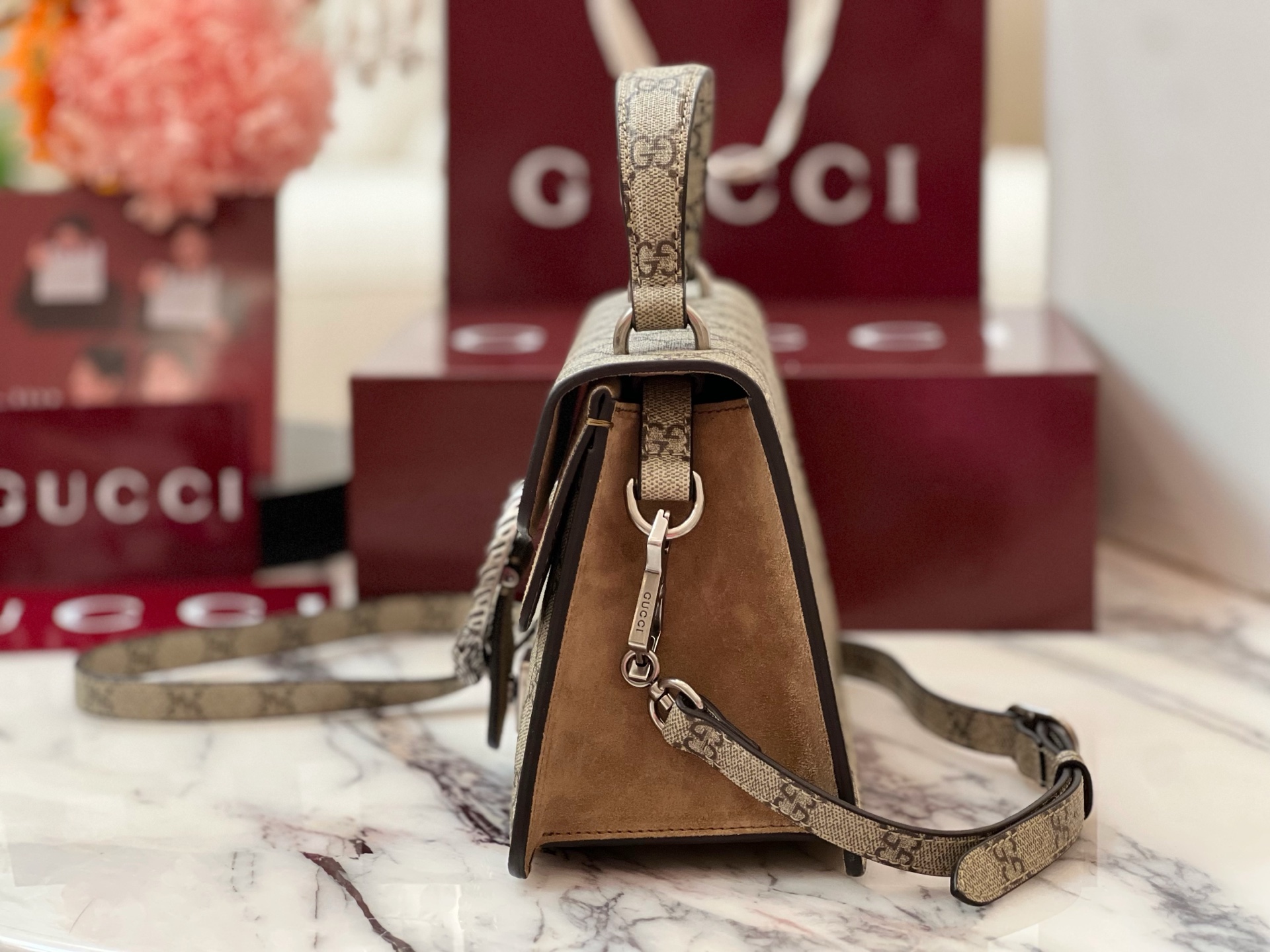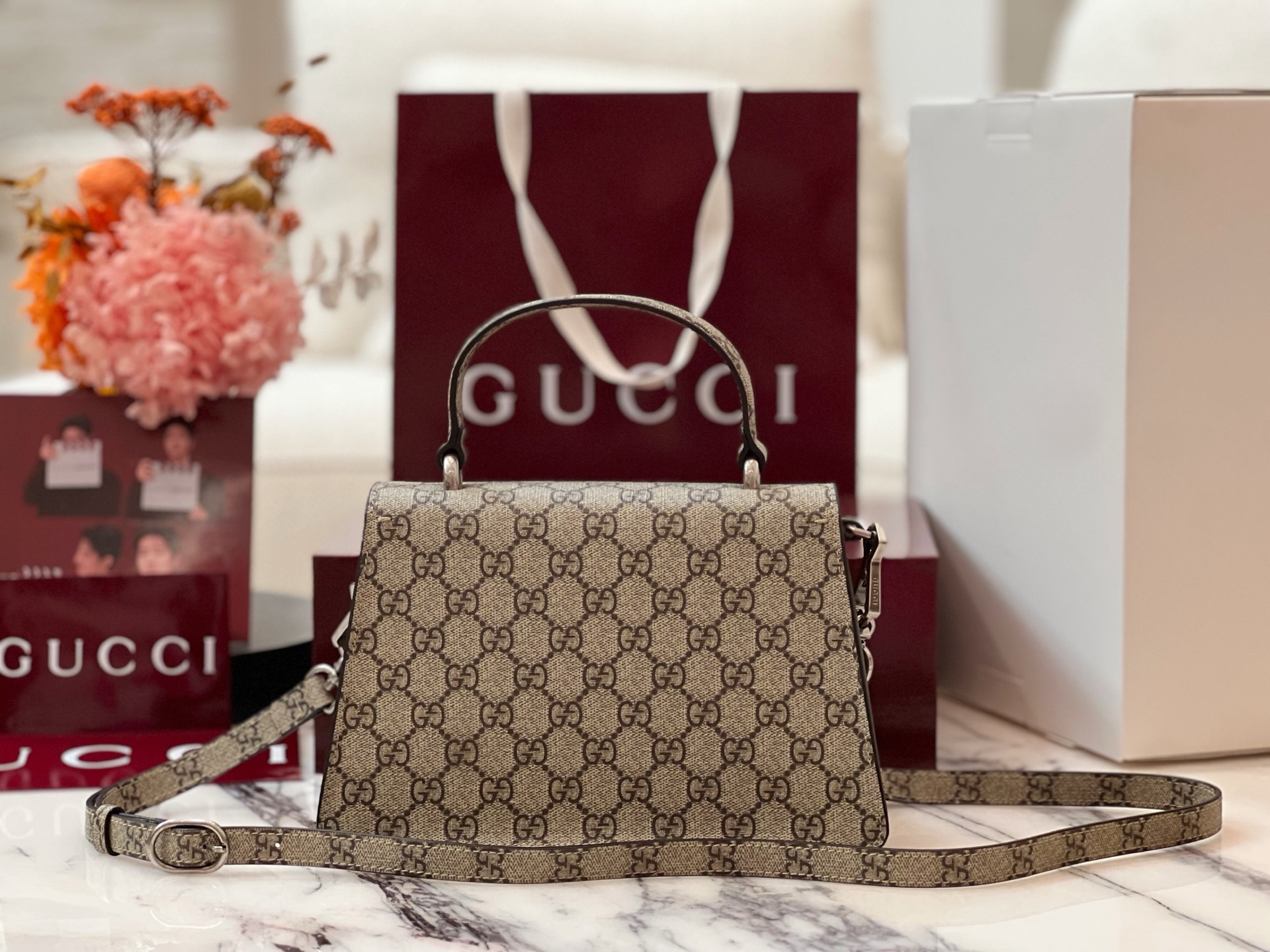 这款包包是AAAAA 1:1 质量 (非常棒). 使用了和原版一模一样的材料. 商标部分也保持了和古奇/Gucci一样. 图片拍摄是实物包包拍摄, 您所收到的实物保证和我们图片一模一样.