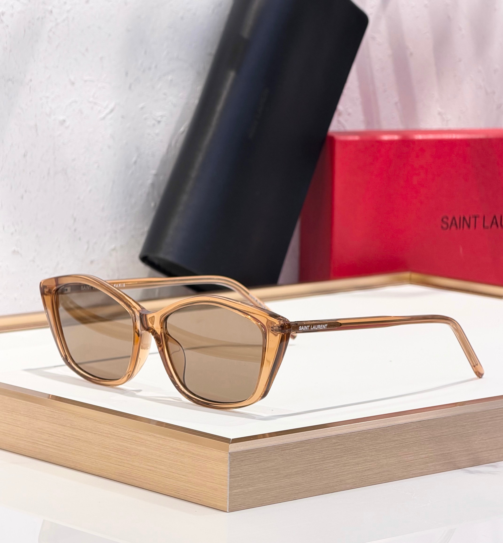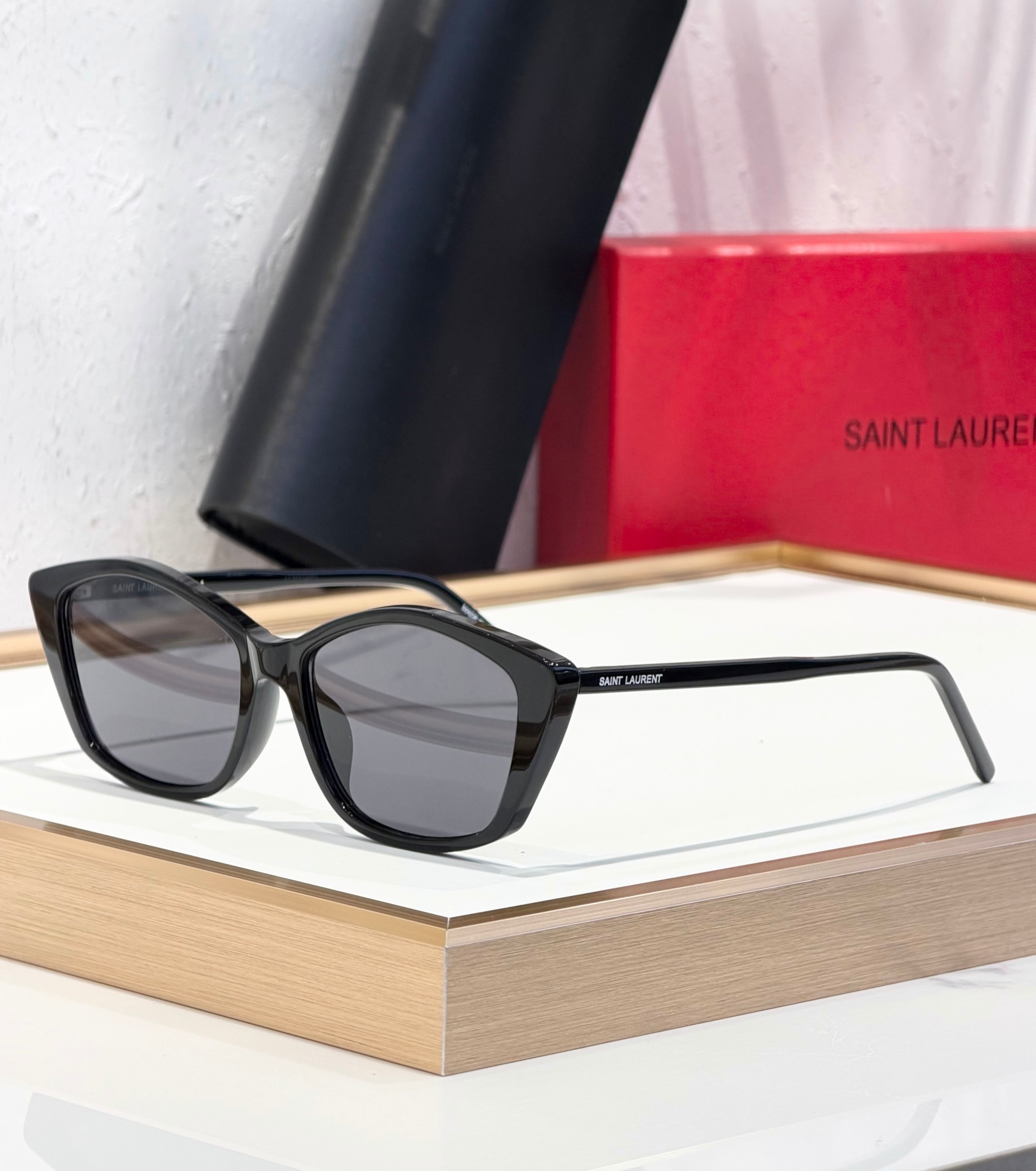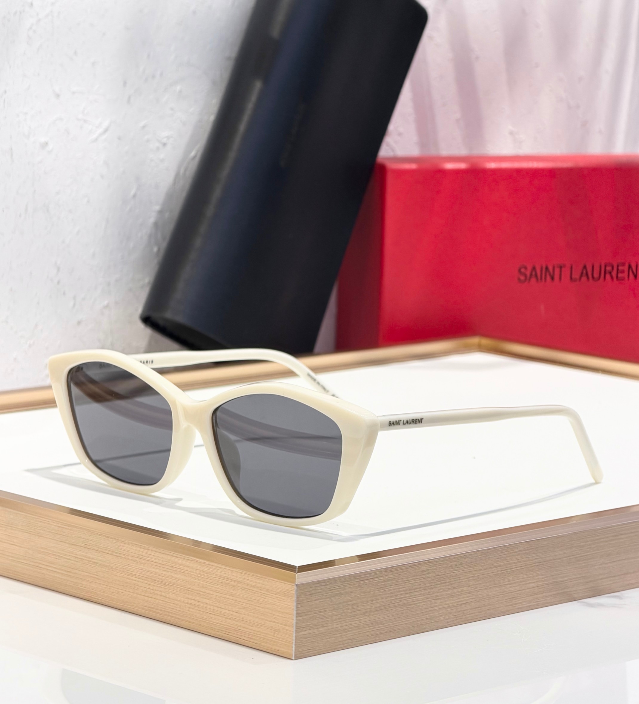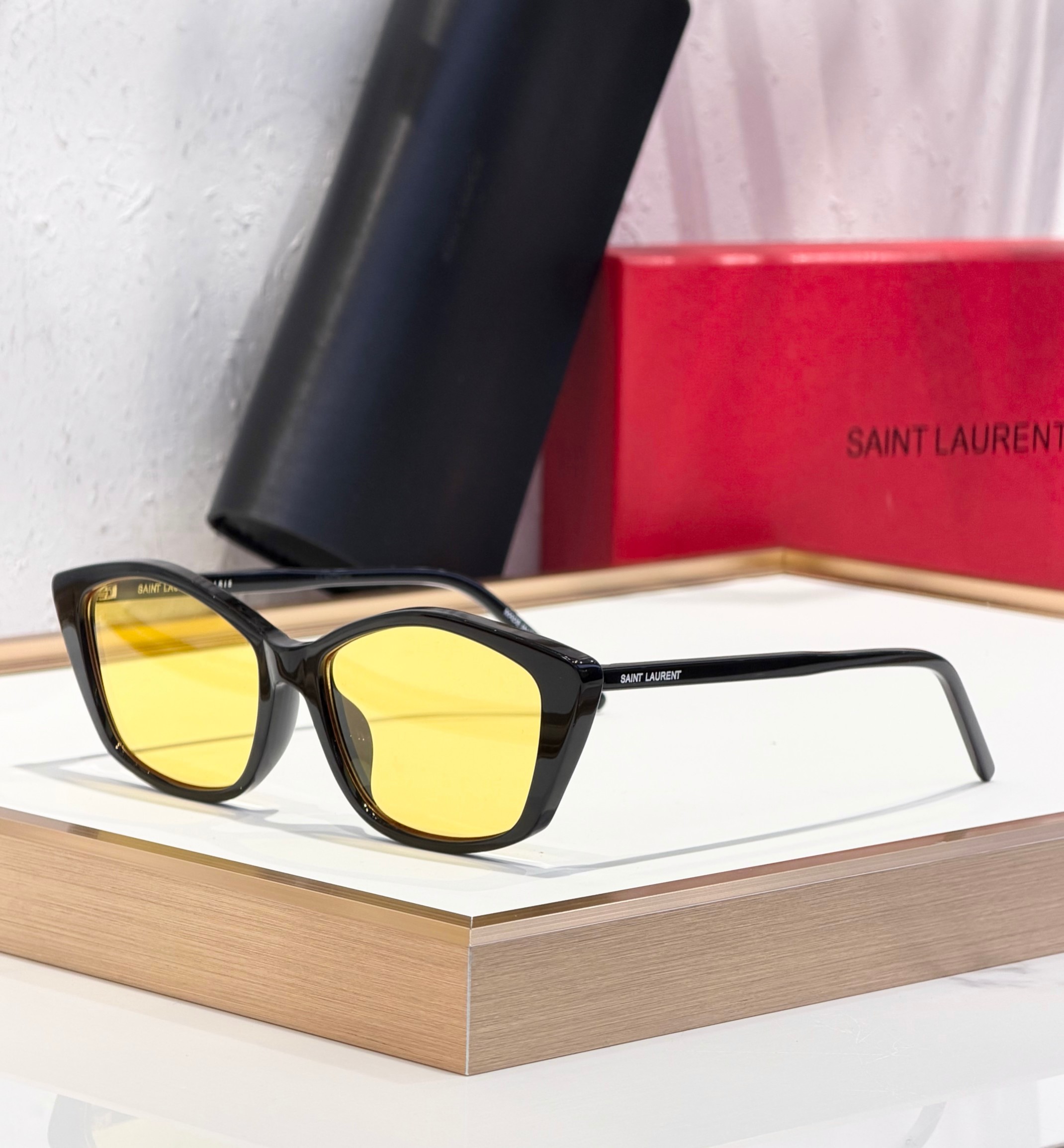 这款太阳眼镜是AAAAA 1:1 质量 (非常棒). 使用了和原版一模一样的材料. 商标部分也保持了和圣罗兰/Saint Laurent一样. 图片拍摄是实物太阳眼镜拍摄, 您所收到的实物保证和我们图片一模一样.