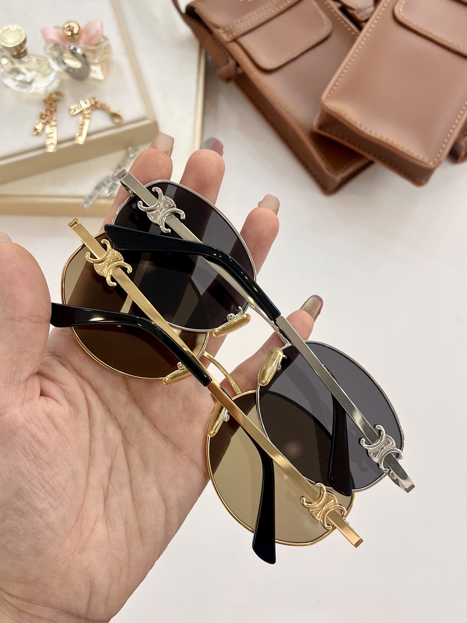 这款太阳眼镜是AAAAA 1:1 质量 (非常棒). 使用了和原版一模一样的材料. 商标部分也保持了和思琳/Celine一样. 图片拍摄是实物太阳眼镜拍摄, 您所收到的实物保证和我们图片一模一样.