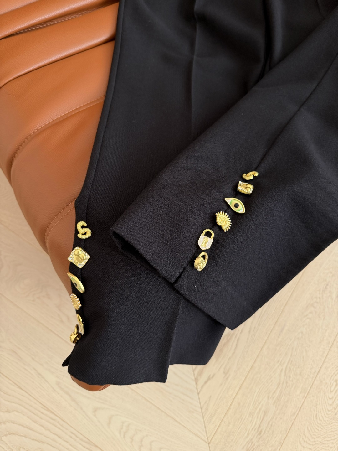 这款衣服是AAAAA 1:1 质量 (非常棒). 使用了和原版一模一样的材料. 商标部分也保持了和Schiaparelli一样. 图片拍摄是实物衣服拍摄, 您所收到的实物保证和我们图片一模一样.