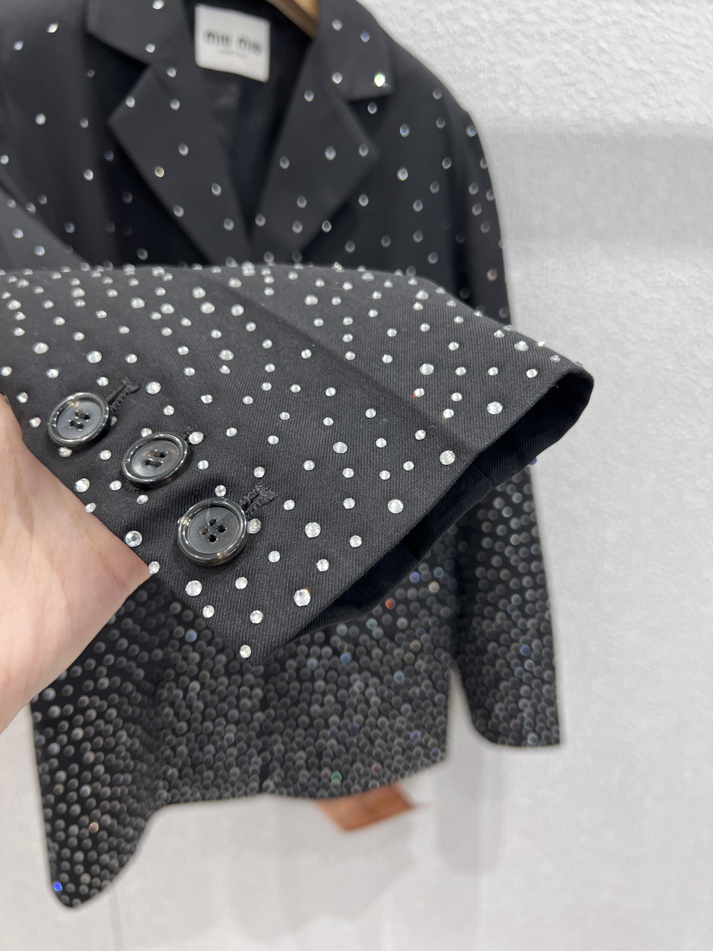 这款衣服是AAAAA 1:1 质量 (非常棒). 使用了和原版一模一样的材料. 商标部分也保持了和缪缪/Miu Miu一样. 图片拍摄是实物衣服拍摄, 您所收到的实物保证和我们图片一模一样.