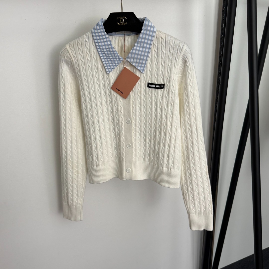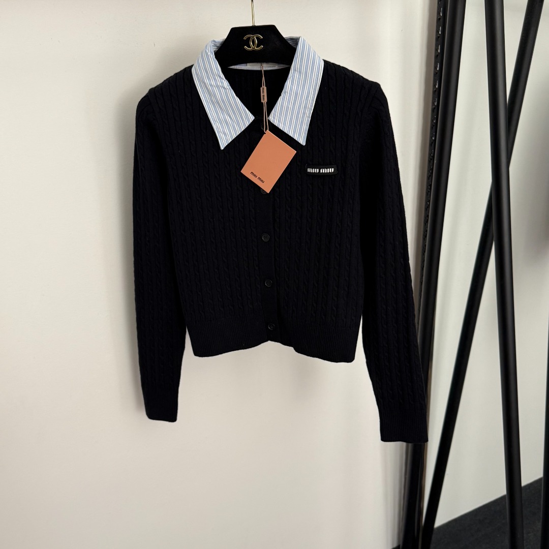 这款衣服是AAAAA 1:1 质量 (非常棒). 使用了和原版一模一样的材料. 商标部分也保持了和缪缪/Miu Miu一样. 图片拍摄是实物衣服拍摄, 您所收到的实物保证和我们图片一模一样.