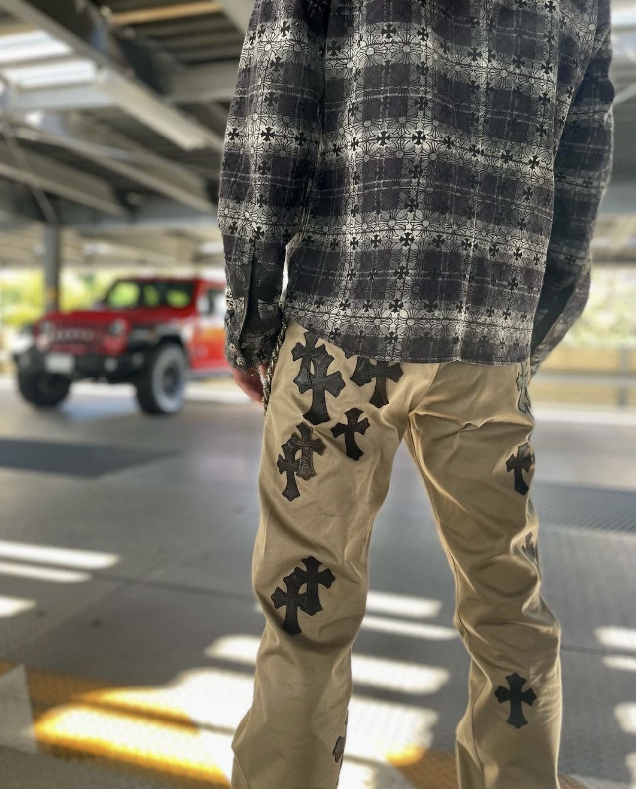 这款衣服是AAAAA 1:1 质量 (非常棒). 使用了和原版一模一样的材料. 商标部分也保持了和克罗心/Chrome Hearts一样. 图片拍摄是实物衣服拍摄, 您所收到的实物保证和我们图片一模一样.