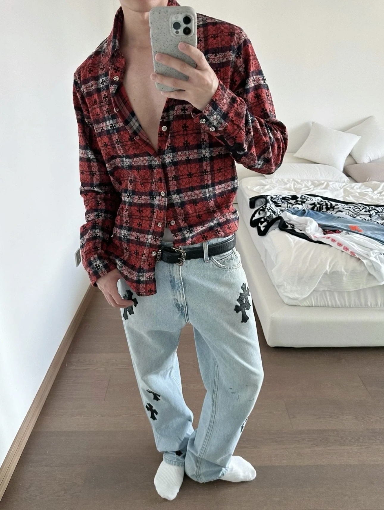 这款衣服是AAAAA 1:1 质量 (非常棒). 使用了和原版一模一样的材料. 商标部分也保持了和克罗心/Chrome Hearts一样. 图片拍摄是实物衣服拍摄, 您所收到的实物保证和我们图片一模一样.
