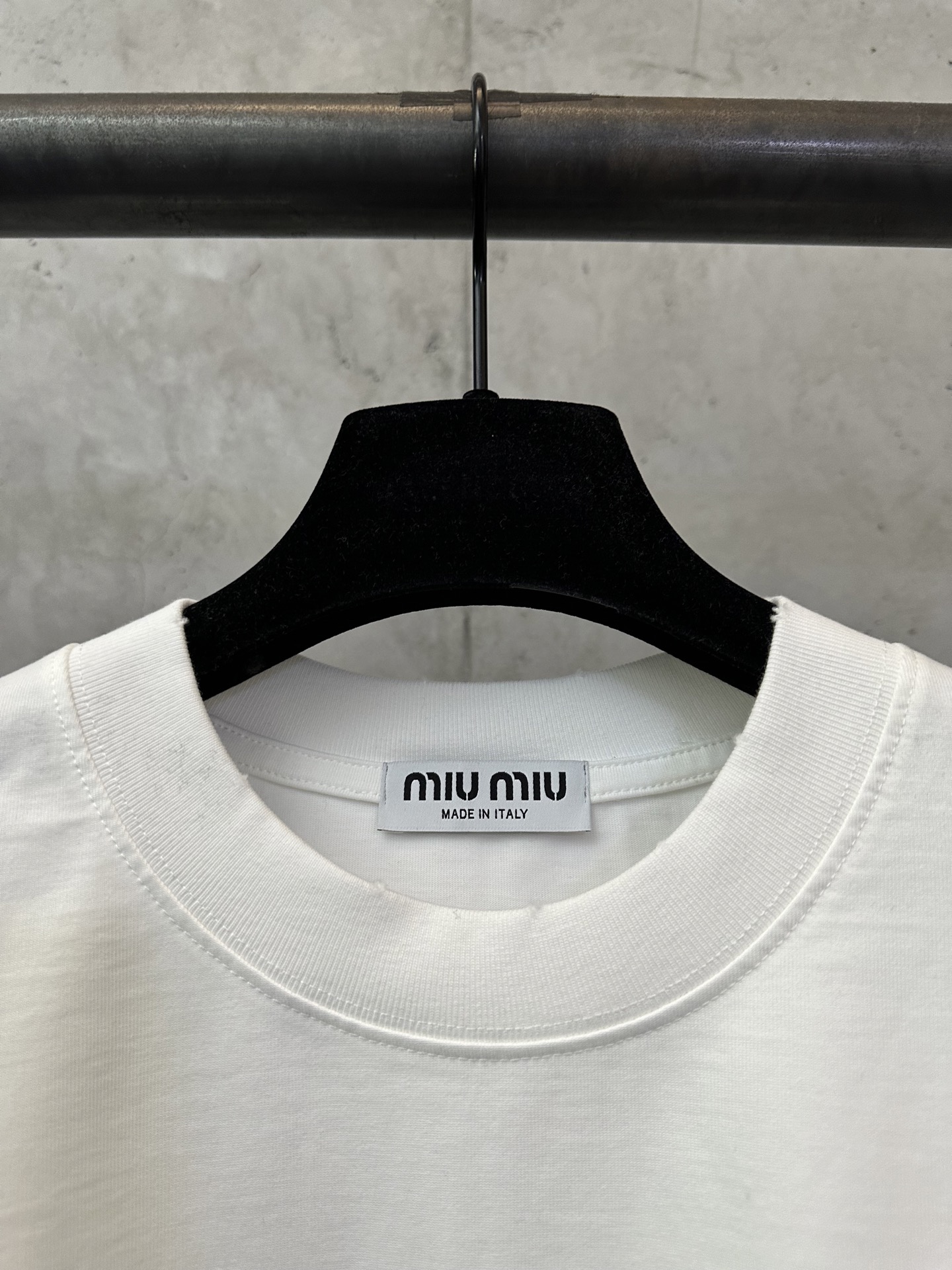 这款衣服是AAAAA 1:1 质量 (非常棒). 使用了和原版一模一样的材料. 商标部分也保持了和缪缪/Miu Miu一样. 图片拍摄是实物衣服拍摄, 您所收到的实物保证和我们图片一模一样.