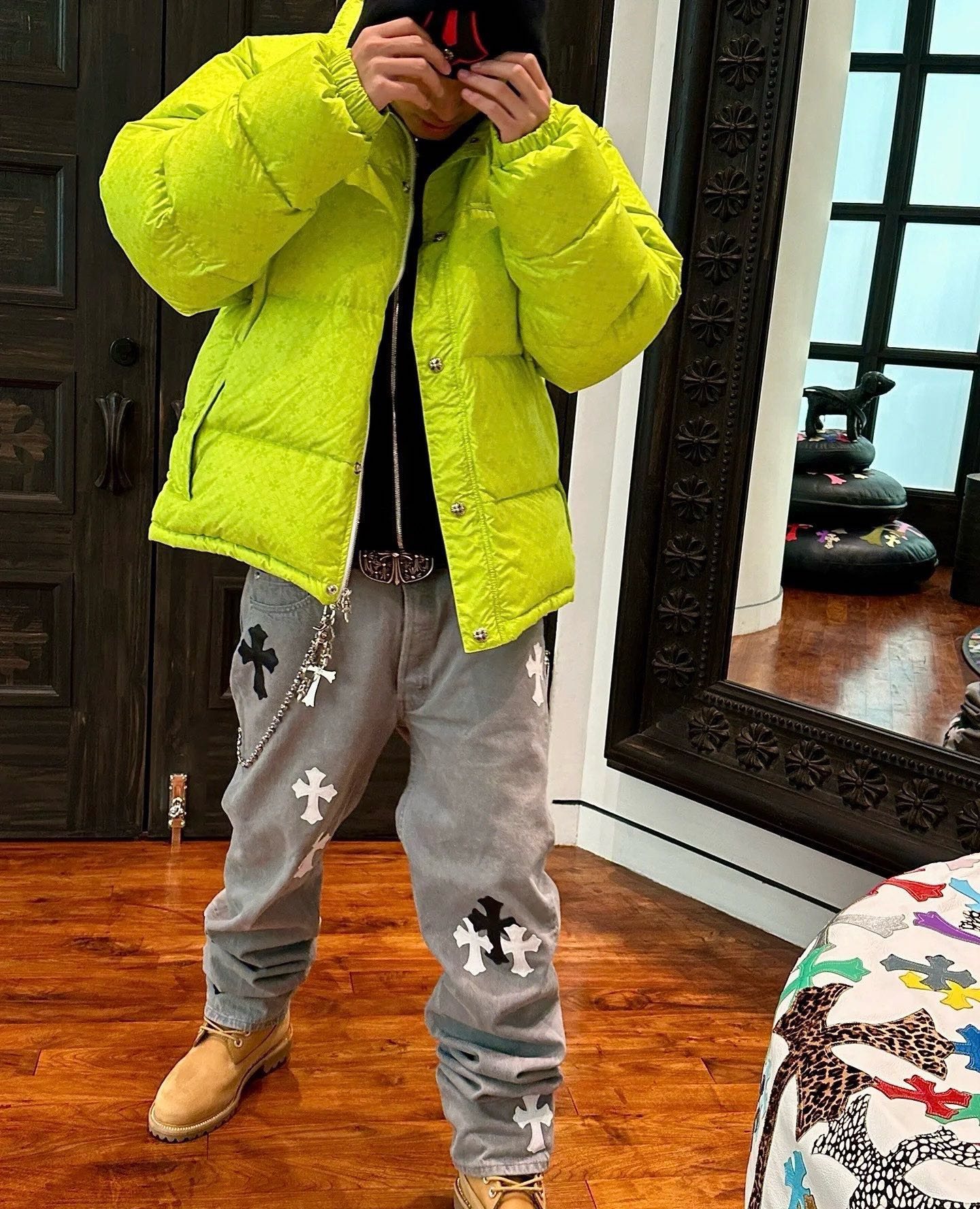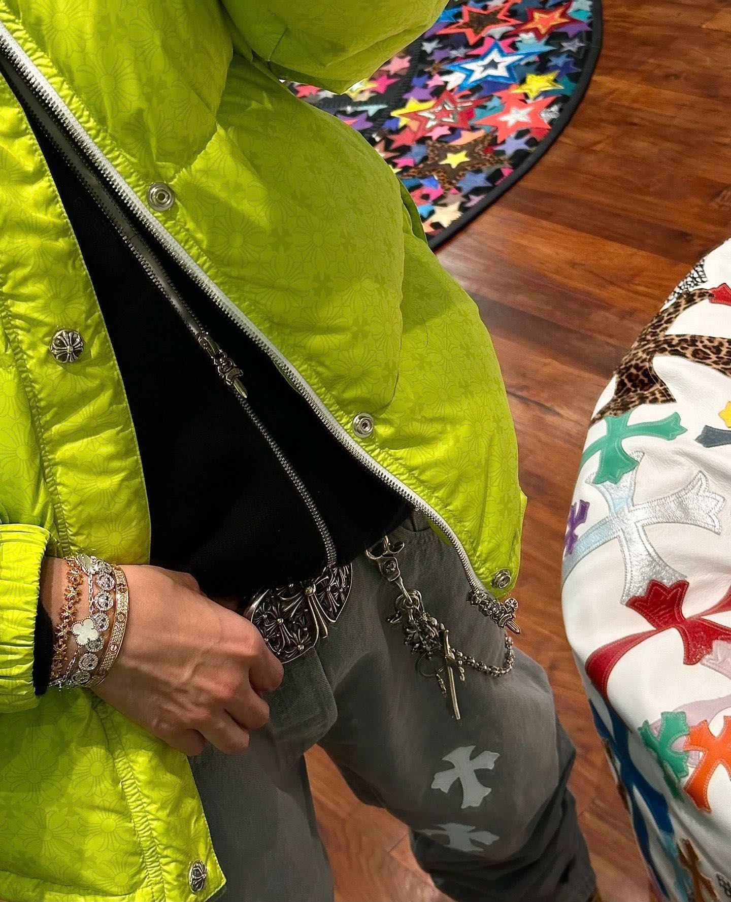 这款衣服是AAAAA 1:1 质量 (非常棒). 使用了和原版一模一样的材料. 商标部分也保持了和克罗心/Chrome Hearts一样. 图片拍摄是实物衣服拍摄, 您所收到的实物保证和我们图片一模一样.