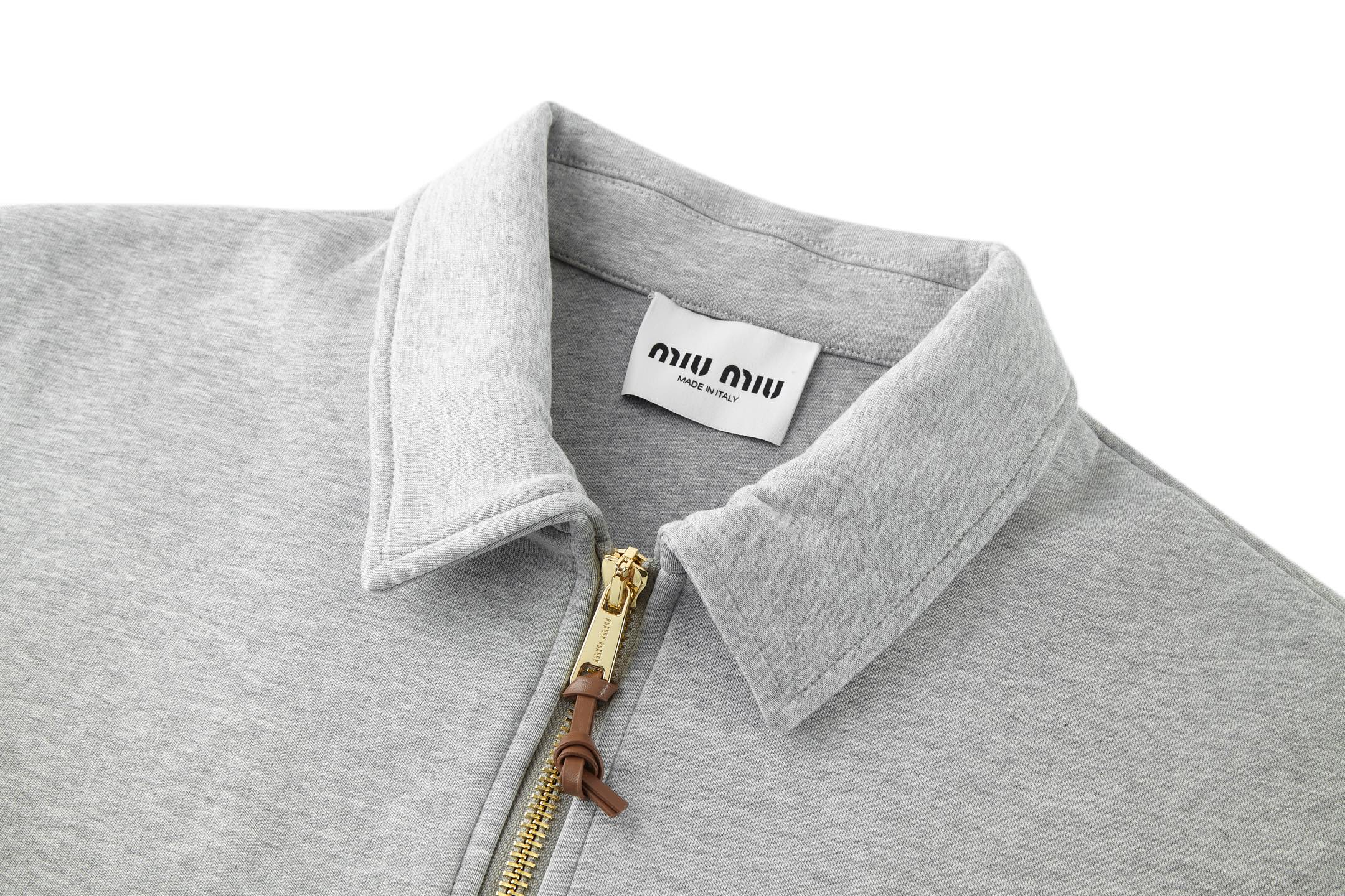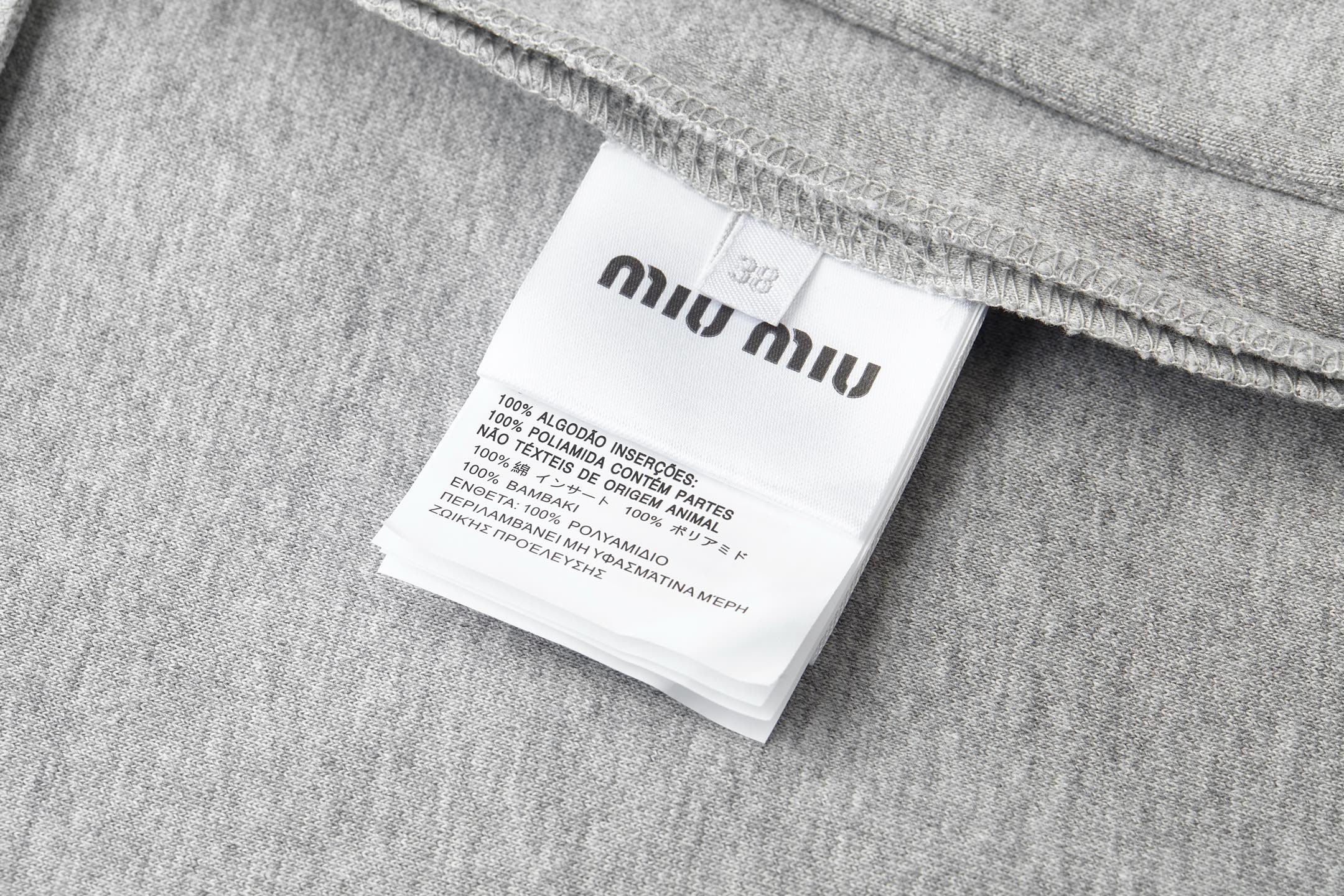这款衣服是AAAAA 1:1 质量 (非常棒). 使用了和原版一模一样的材料. 商标部分也保持了和缪缪/Miu Miu一样. 图片拍摄是实物衣服拍摄, 您所收到的实物保证和我们图片一模一样.