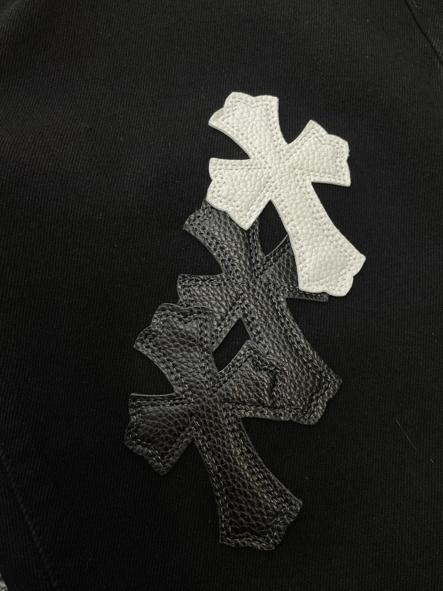 这款衣服是AAAAA 1:1 质量 (非常棒). 使用了和原版一模一样的材料. 商标部分也保持了和克罗心/Chrome Hearts一样. 图片拍摄是实物衣服拍摄, 您所收到的实物保证和我们图片一模一样.