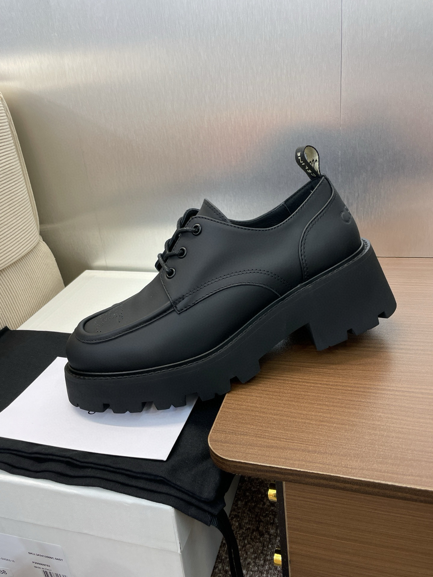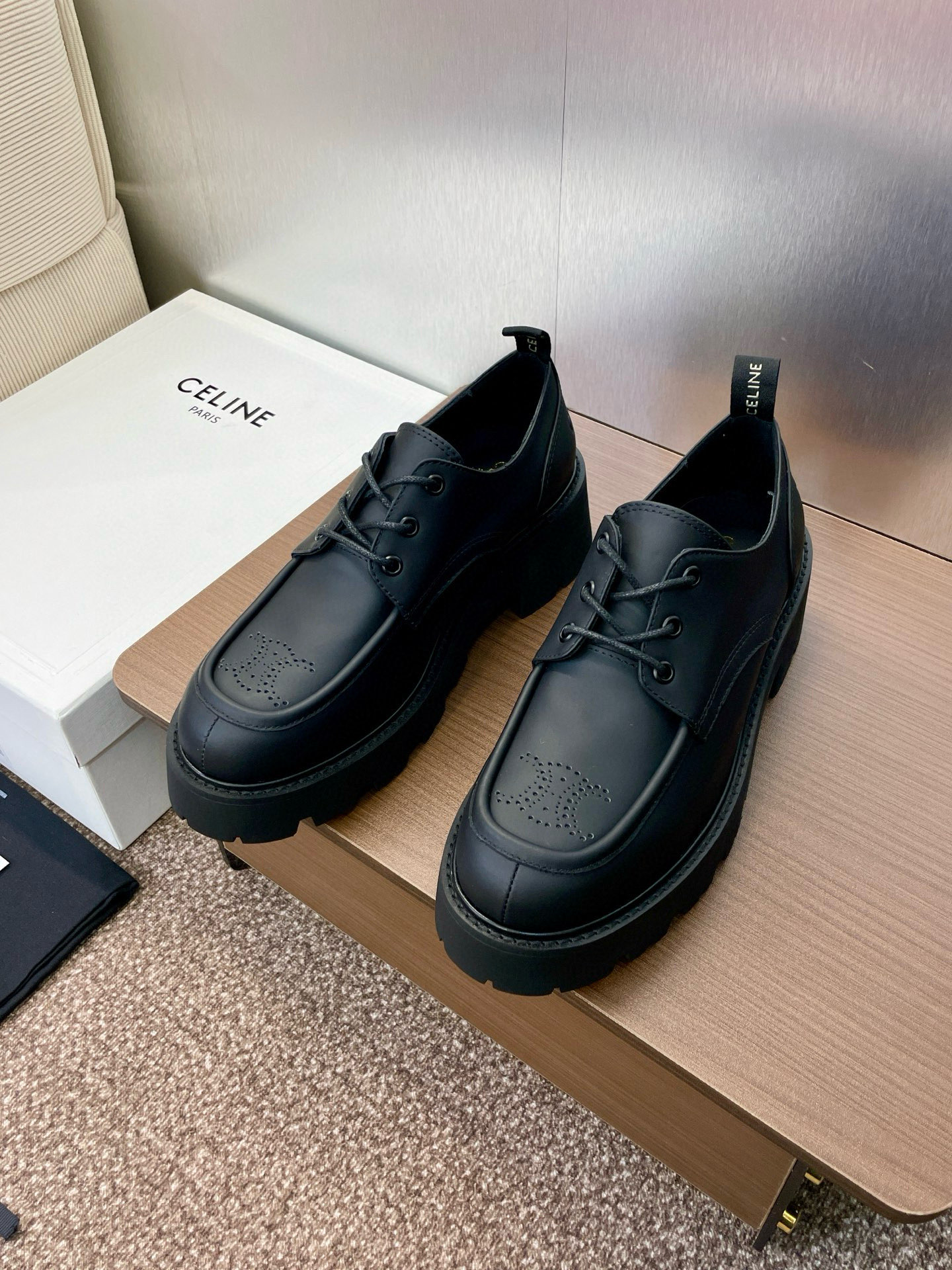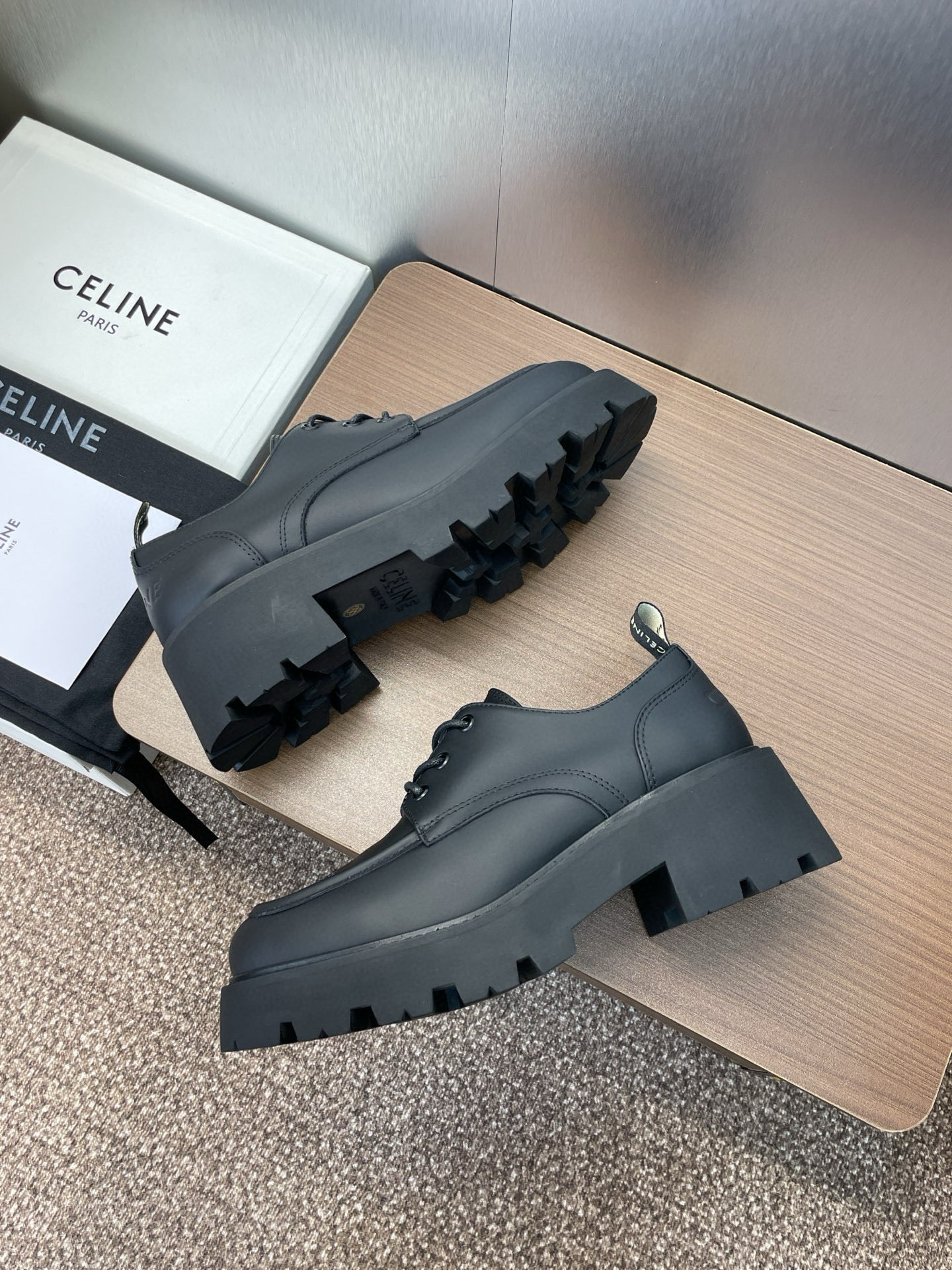 这款鞋子是AAAAA 1:1 质量 (非常棒). 使用了和原版一模一样的材料. 商标部分也保持了和思琳/Celine一样. 图片拍摄是实物鞋子拍摄, 您所收到的实物保证和我们图片一模一样.