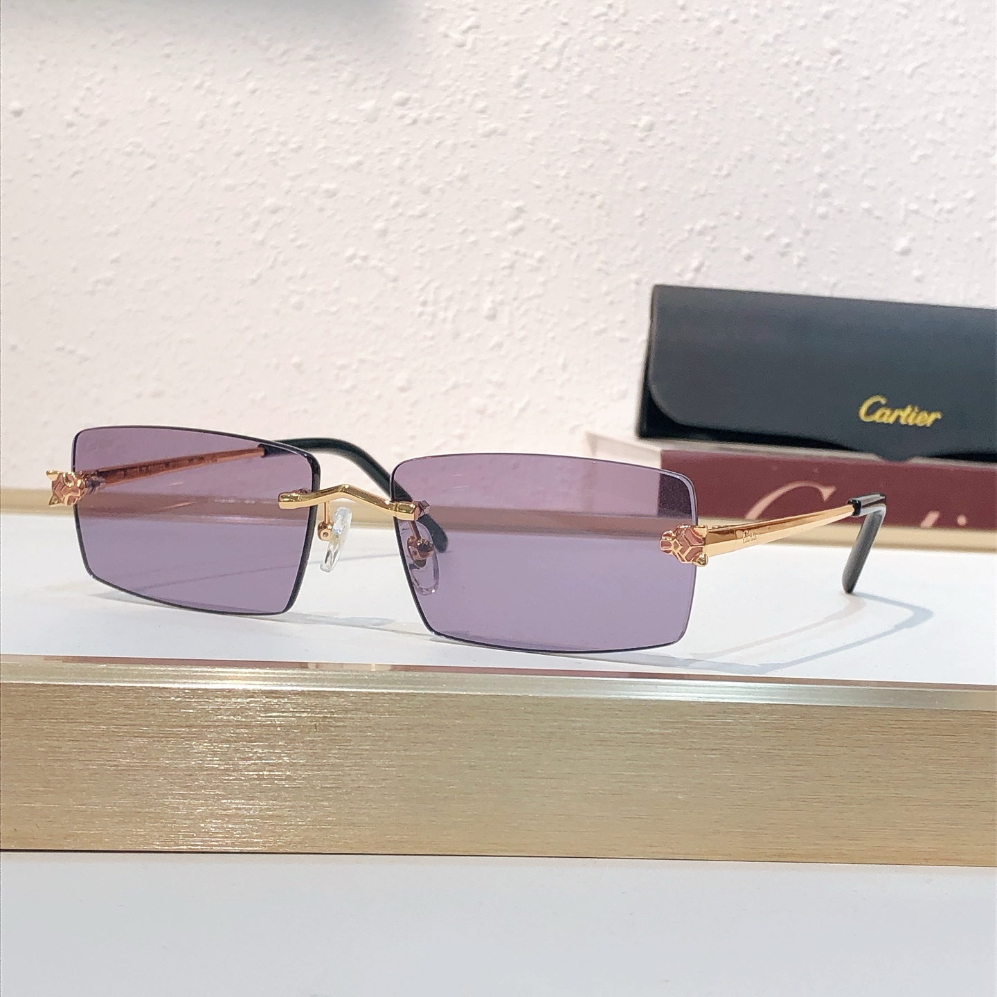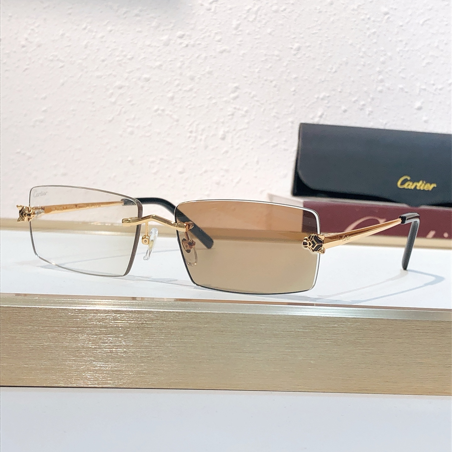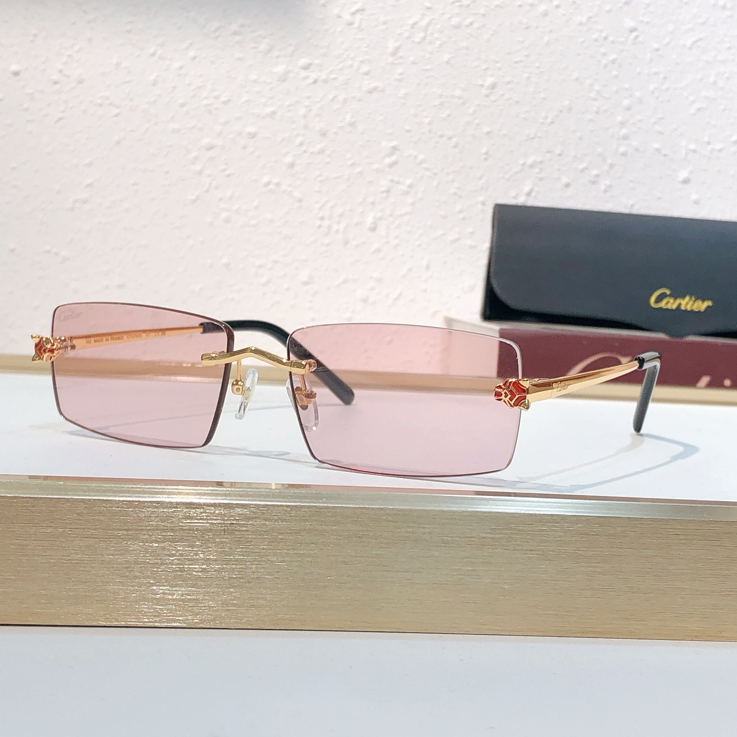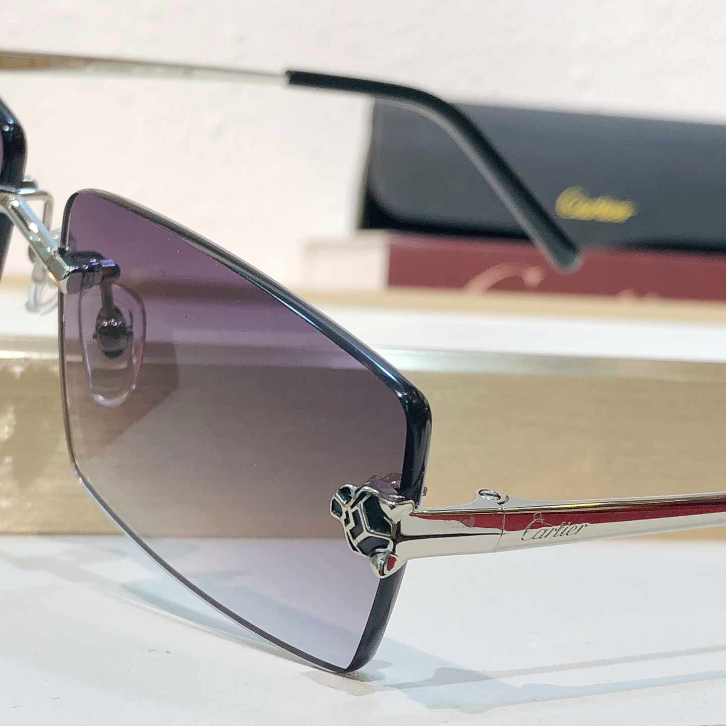 这款太阳眼镜是AAAAA 1:1 质量 (非常棒). 使用了和原版一模一样的材料. 商标部分也保持了和卡地亚/Cartier一样. 图片拍摄是实物太阳眼镜拍摄, 您所收到的实物保证和我们图片一模一样.