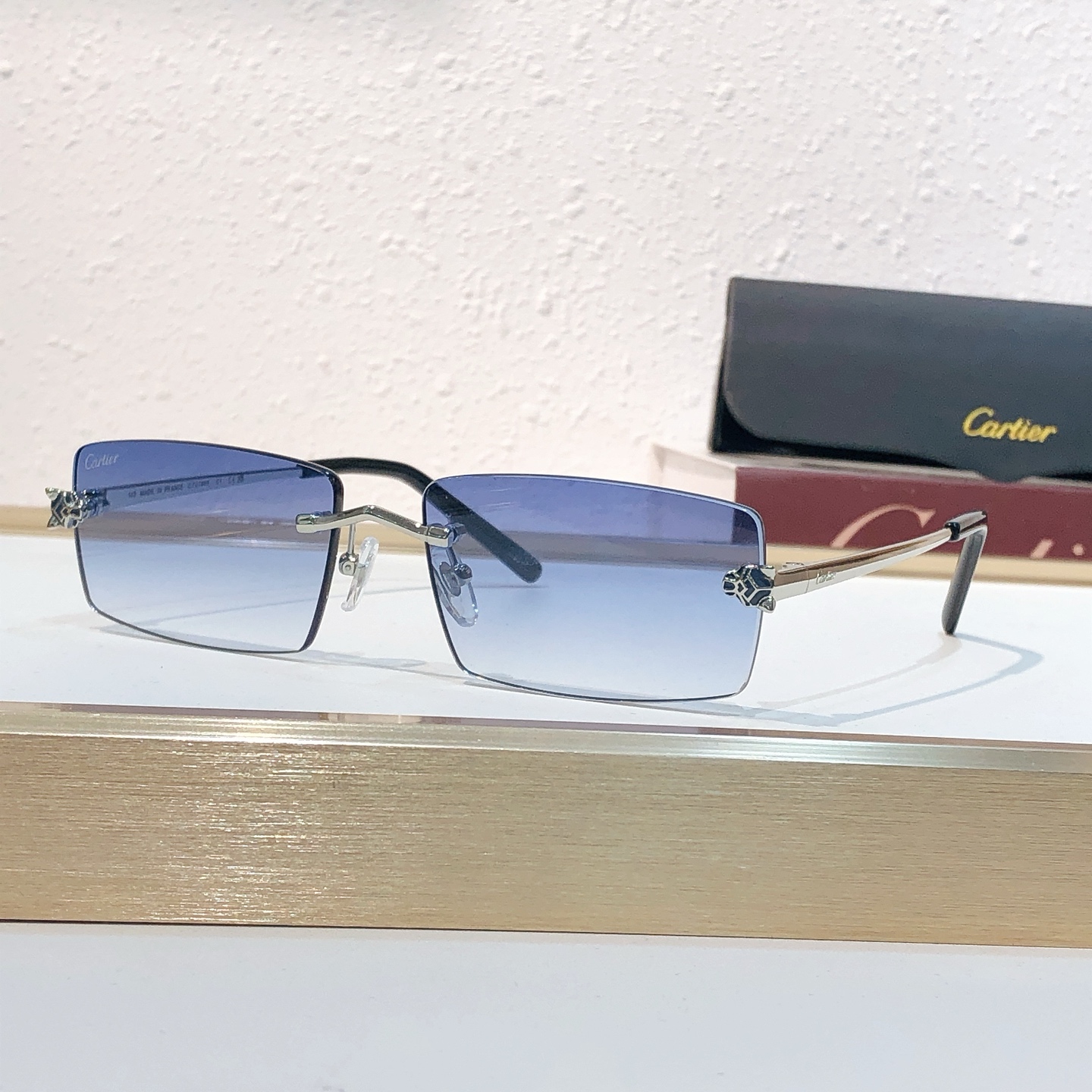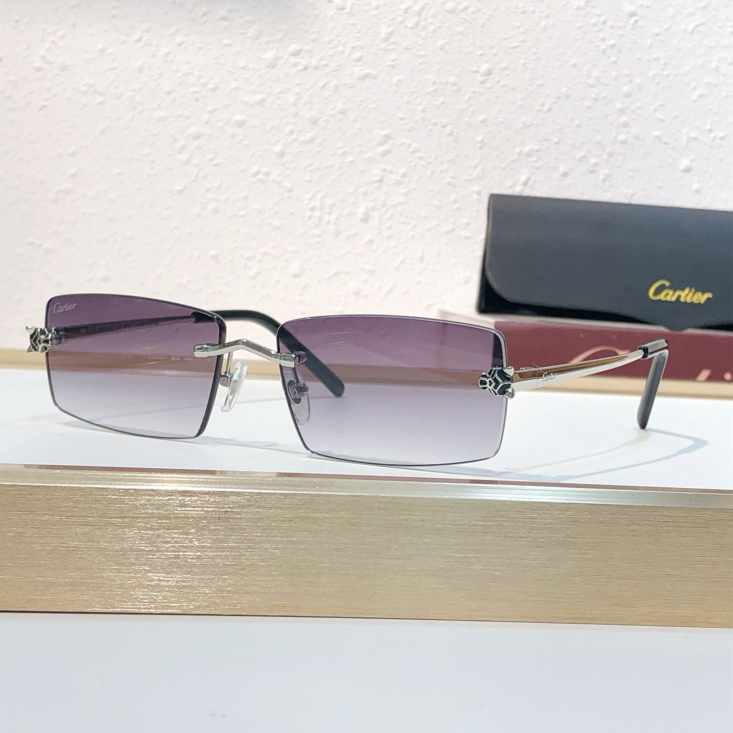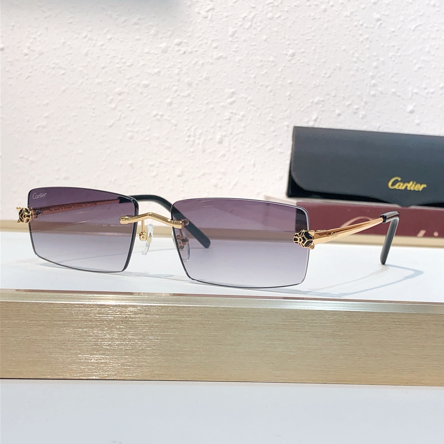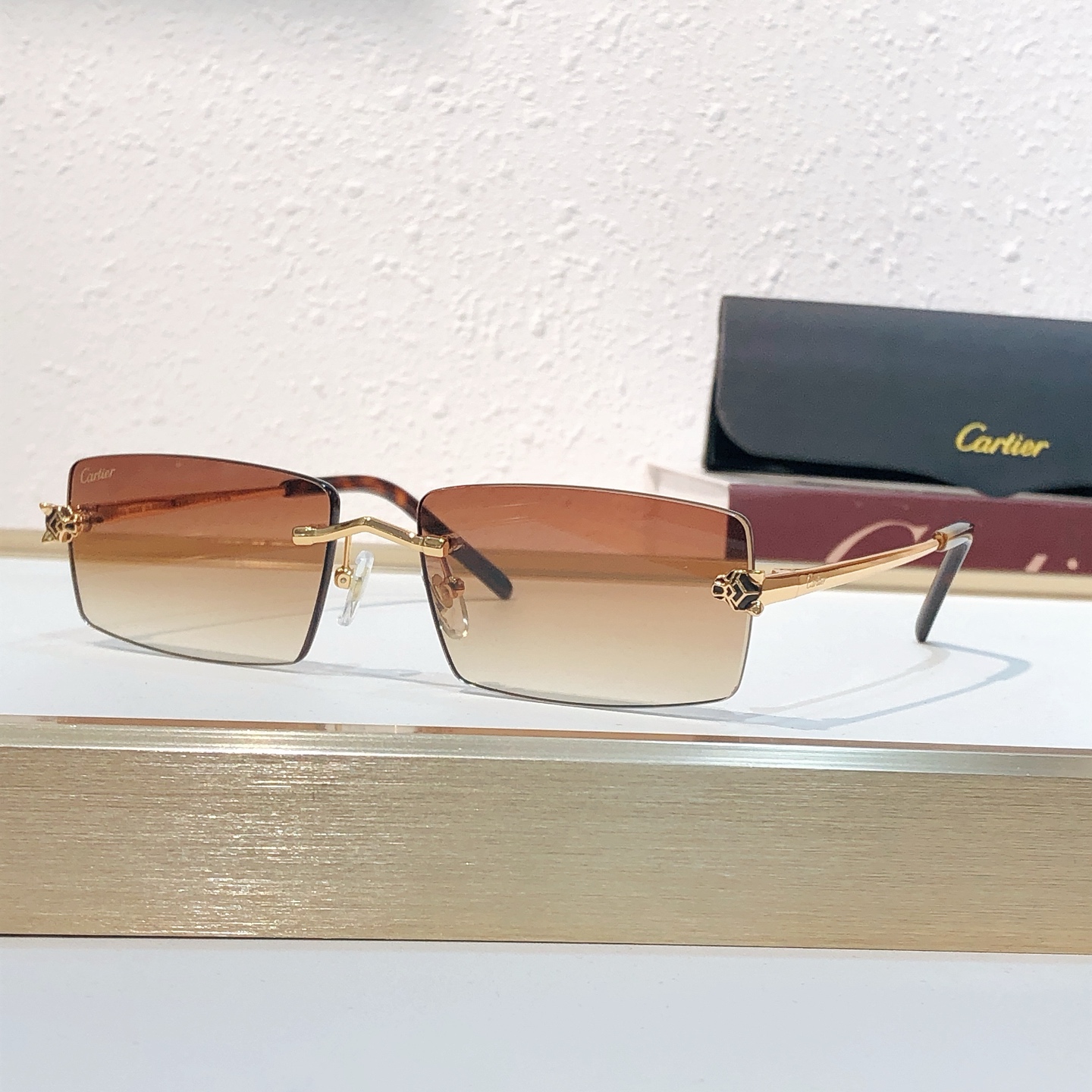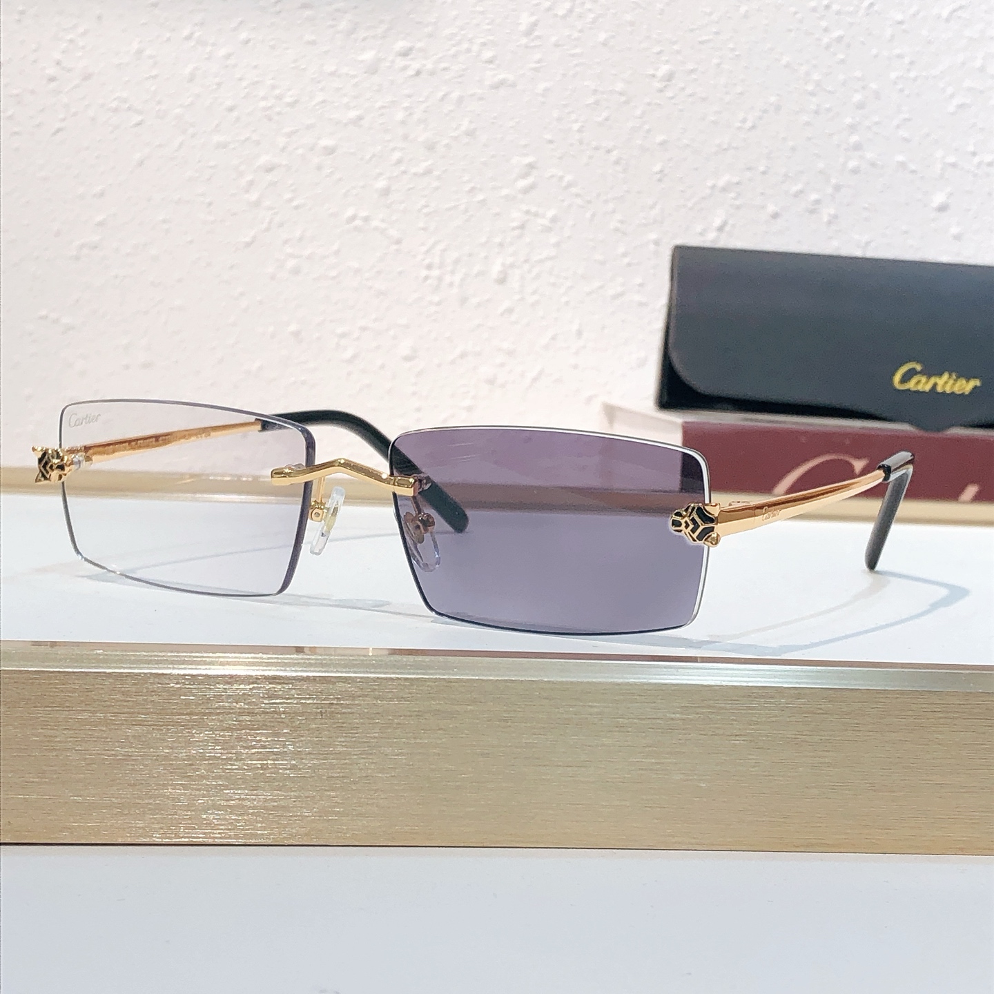 这款太阳眼镜是AAAAA 1:1 质量 (非常棒). 使用了和原版一模一样的材料. 商标部分也保持了和卡地亚/Cartier一样. 图片拍摄是实物太阳眼镜拍摄, 您所收到的实物保证和我们图片一模一样.