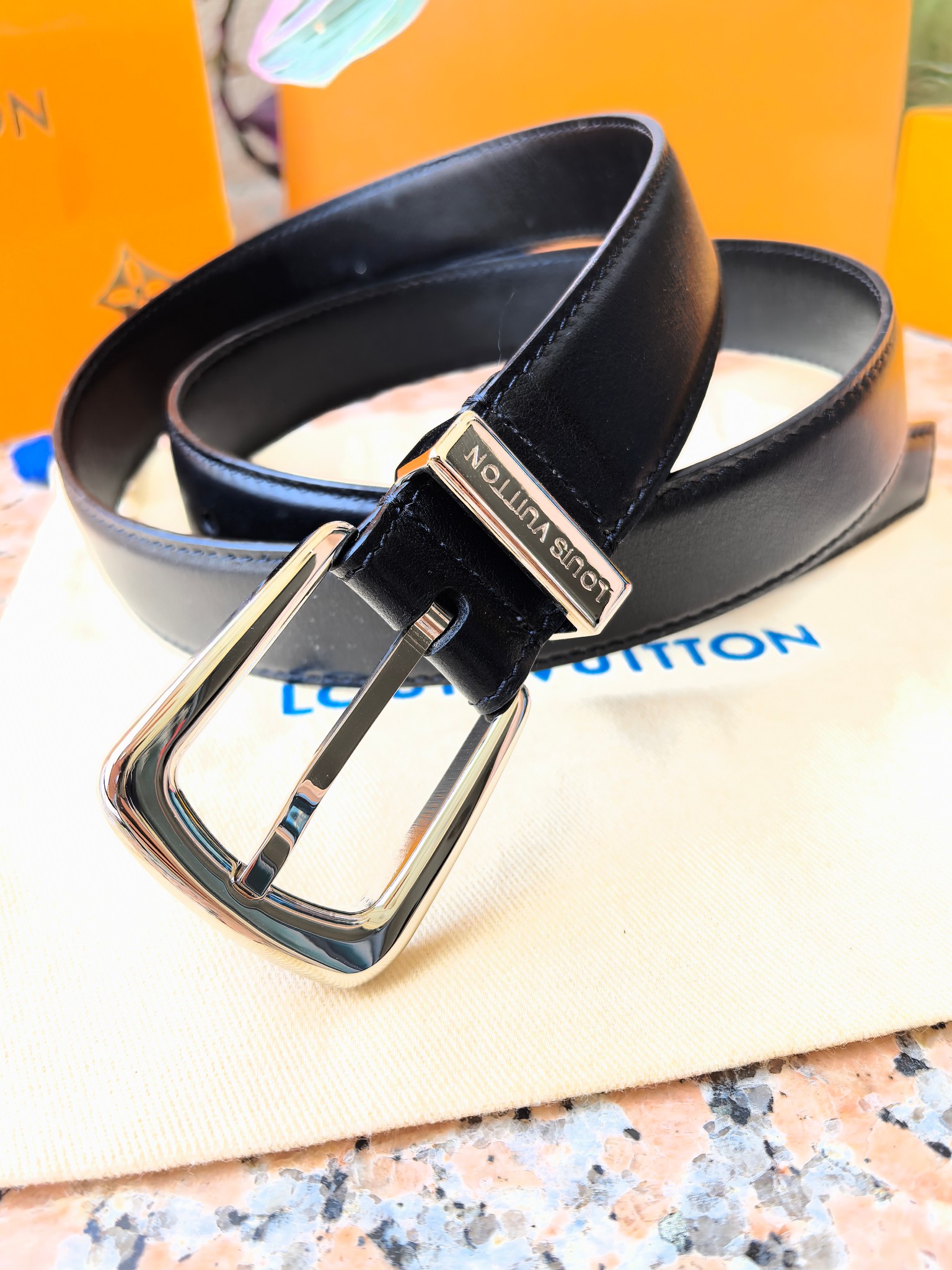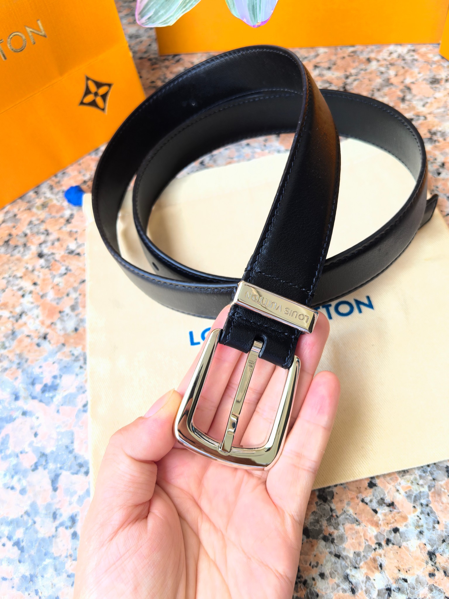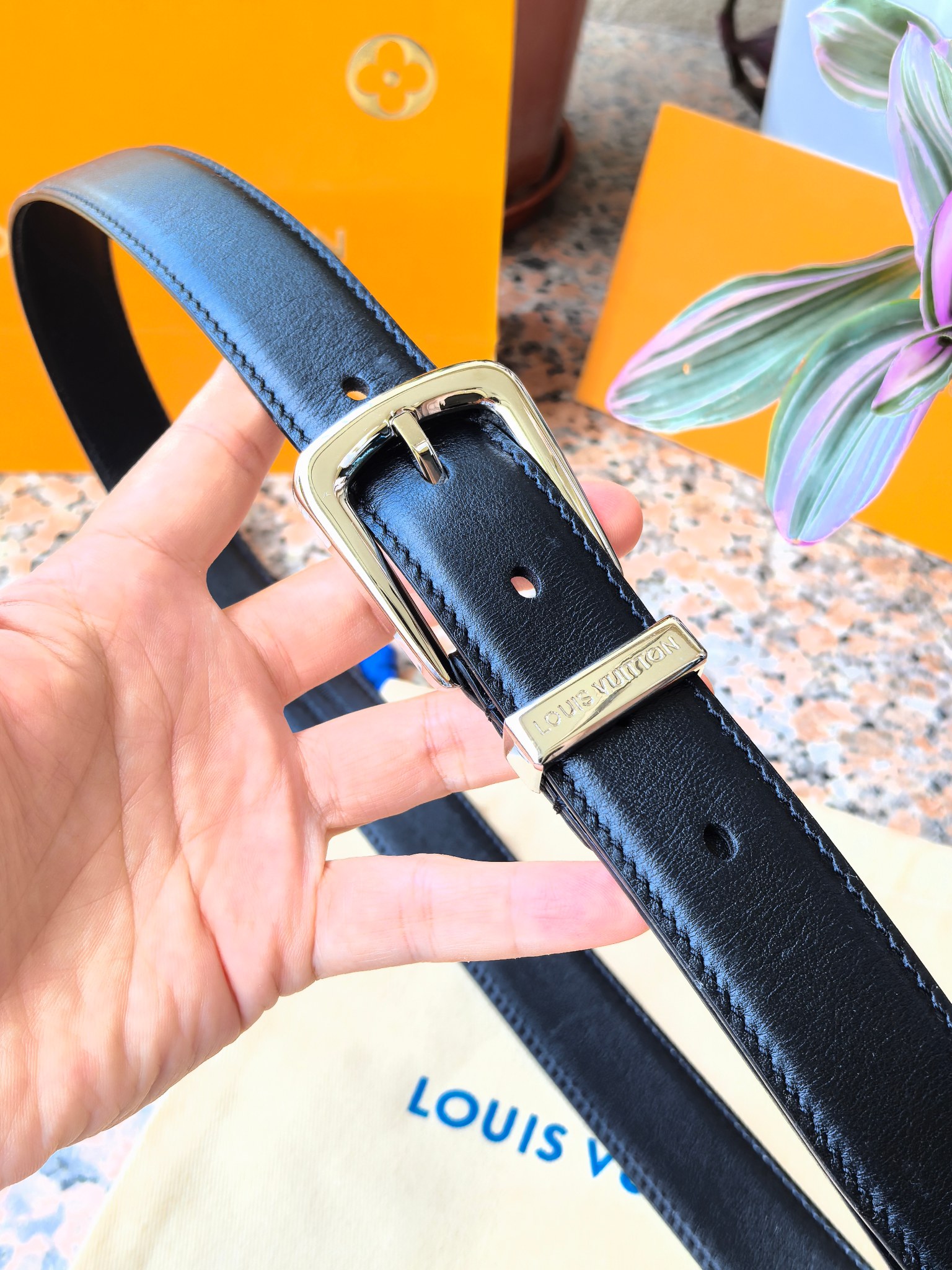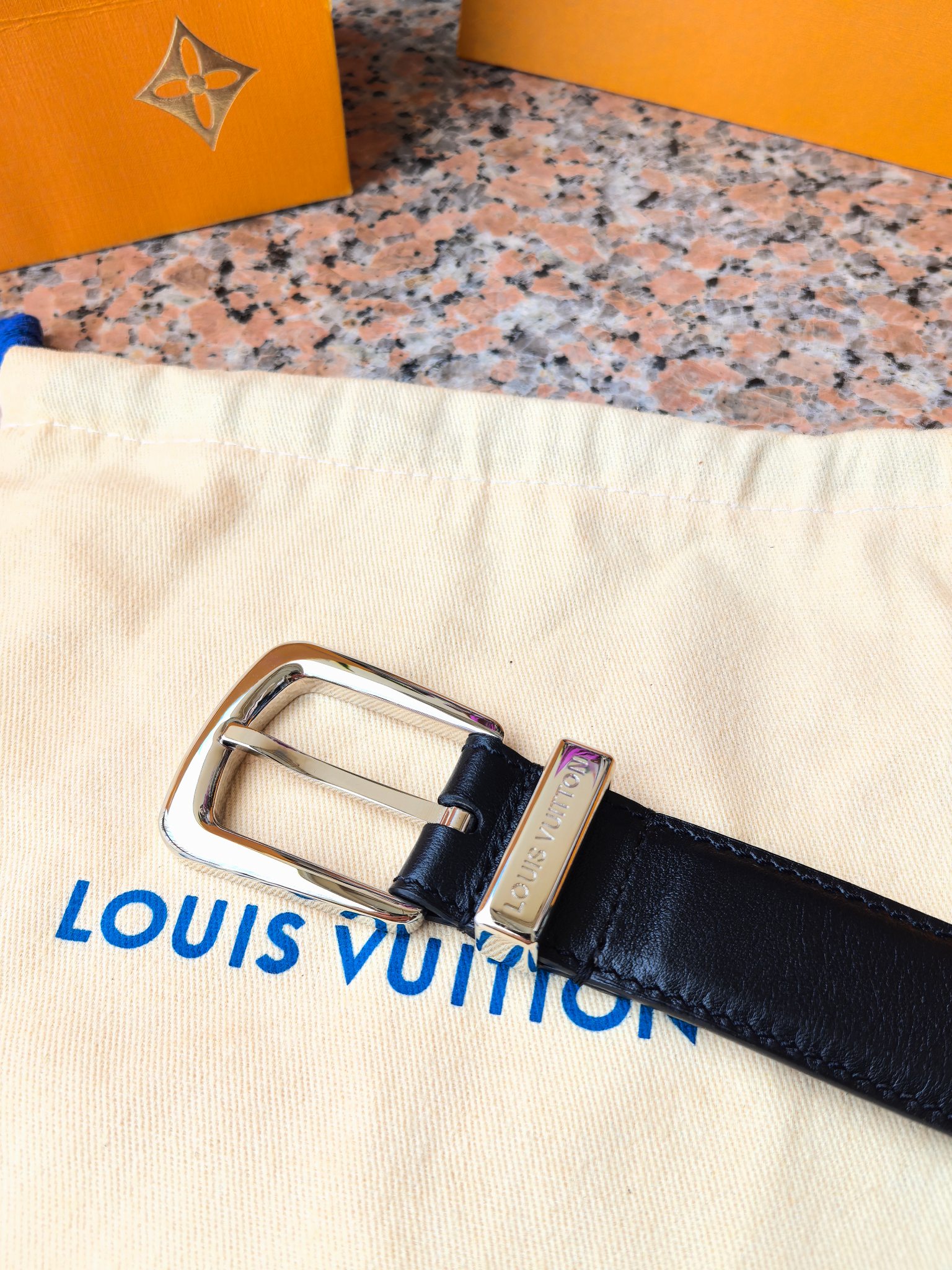 这款皮带是AAAAA 1:1 质量 (非常棒). 使用了和原版一模一样的材料. 商标部分也保持了和路易威登/Louis Vuitton一样. 图片拍摄是实物皮带拍摄, 您所收到的实物保证和我们图片一模一样.