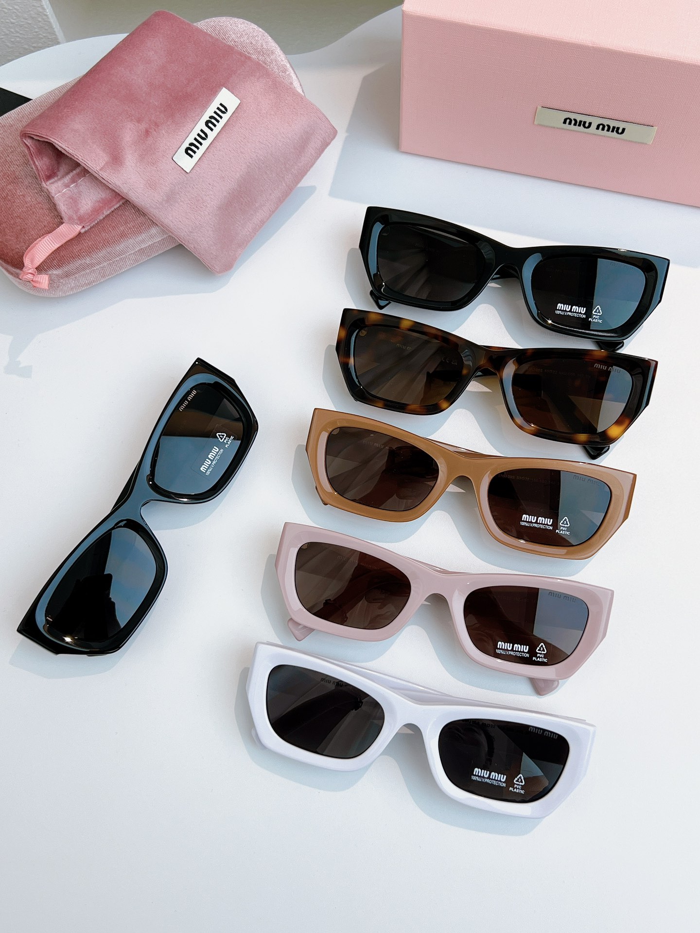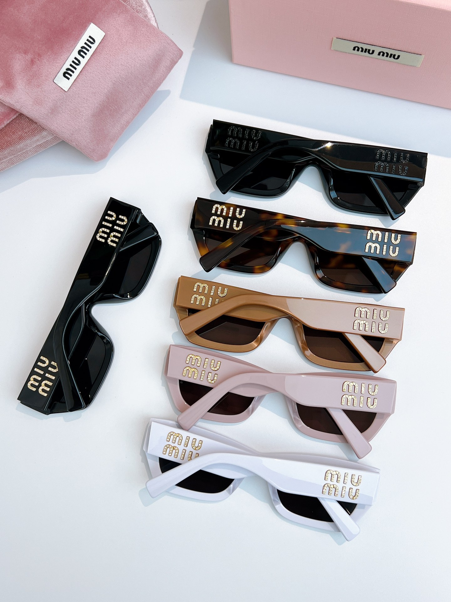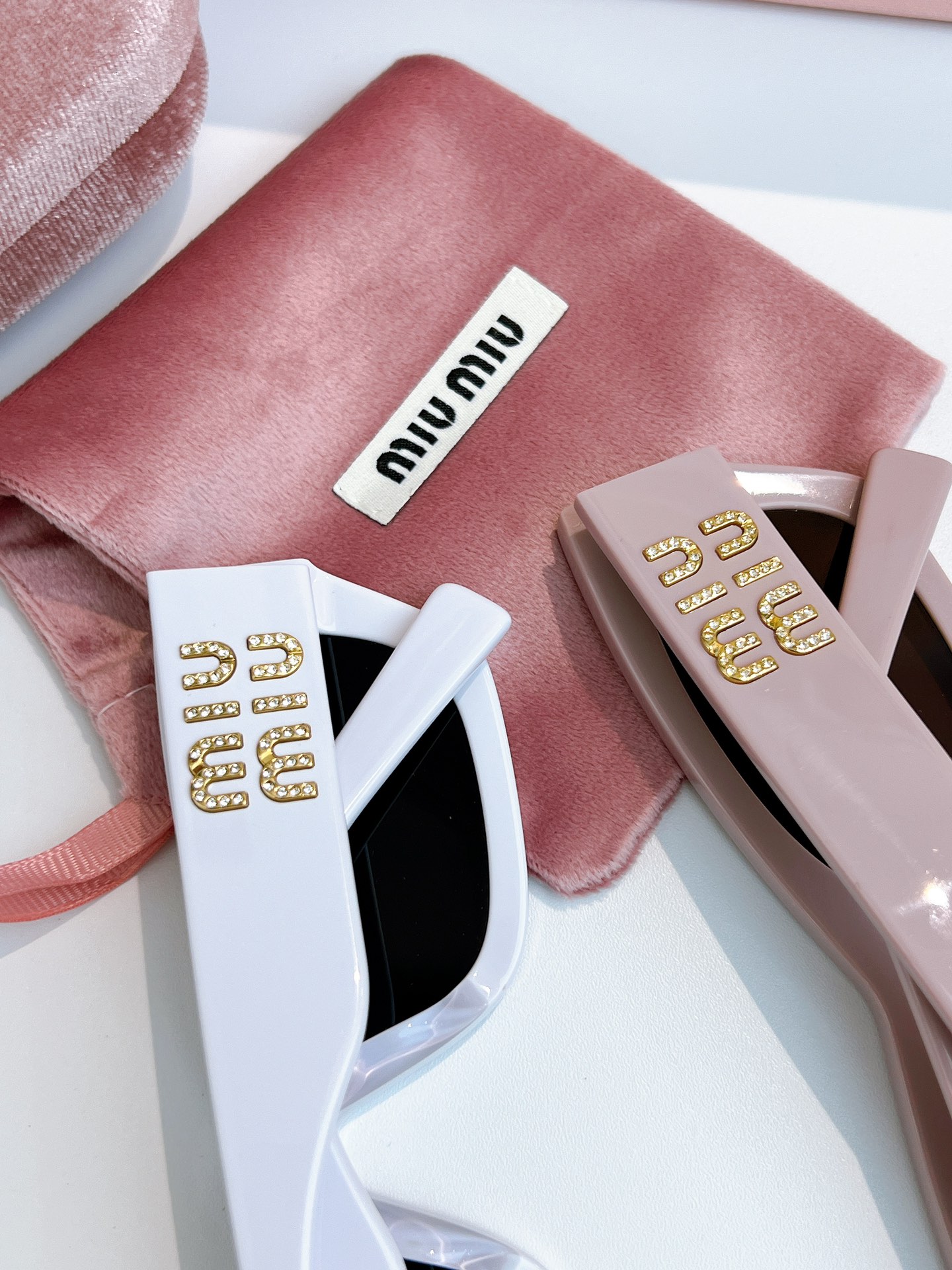 这款太阳眼镜是AAAAA 1:1 质量 (非常棒). 使用了和原版一模一样的材料. 商标部分也保持了和缪缪/Miu Miu一样. 图片拍摄是实物太阳眼镜拍摄, 您所收到的实物保证和我们图片一模一样.