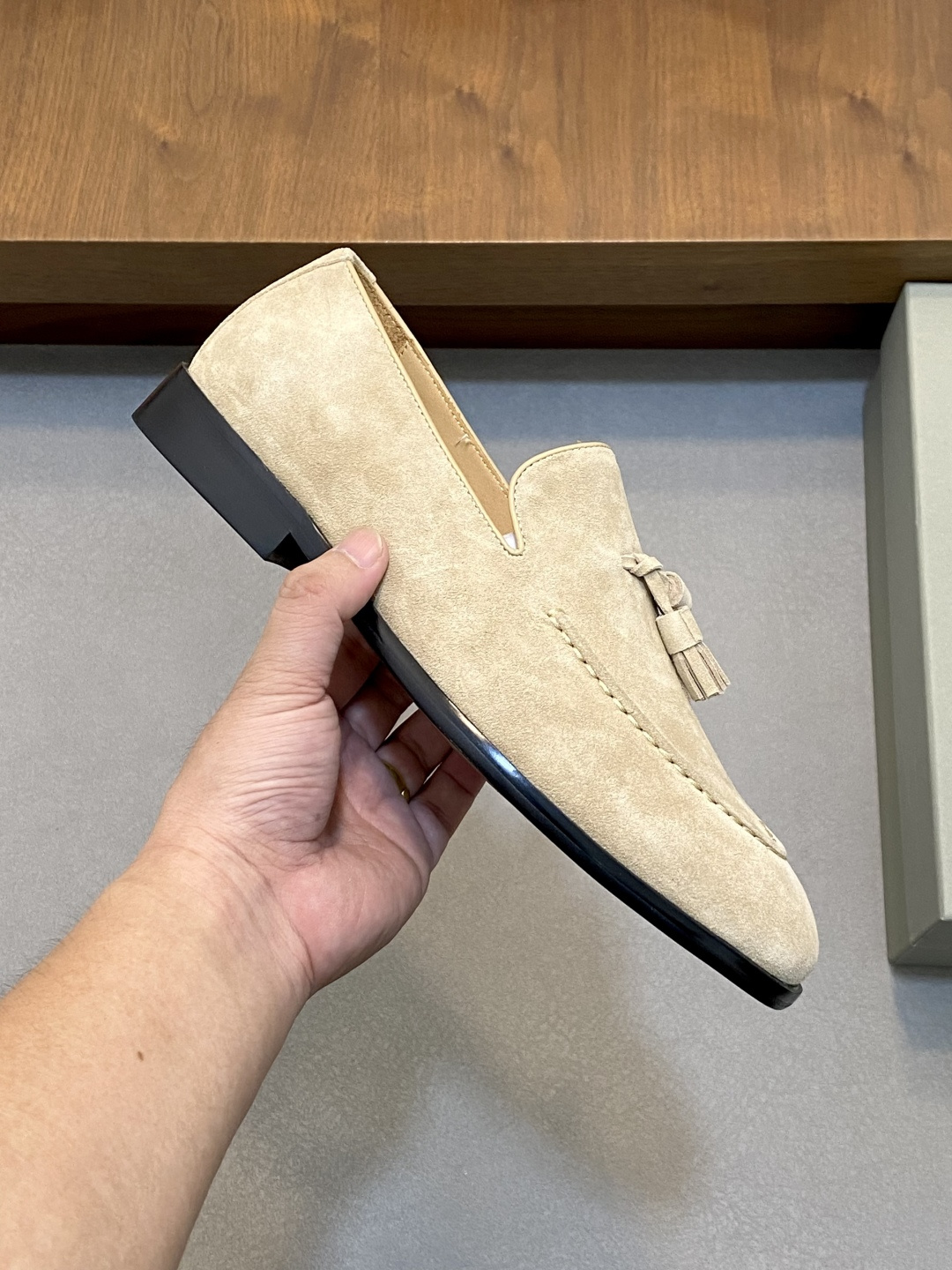 这款鞋子是AAAAA 1:1 质量 (非常棒). 使用了和原版一模一样的材料. 商标部分也保持了和Brunello Cucinelli一样. 图片拍摄是实物鞋子拍摄, 您所收到的实物保证和我们图片一模一样.