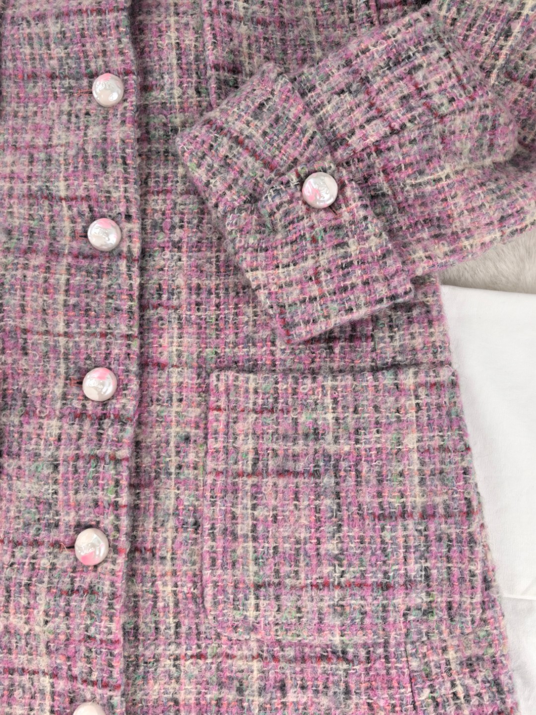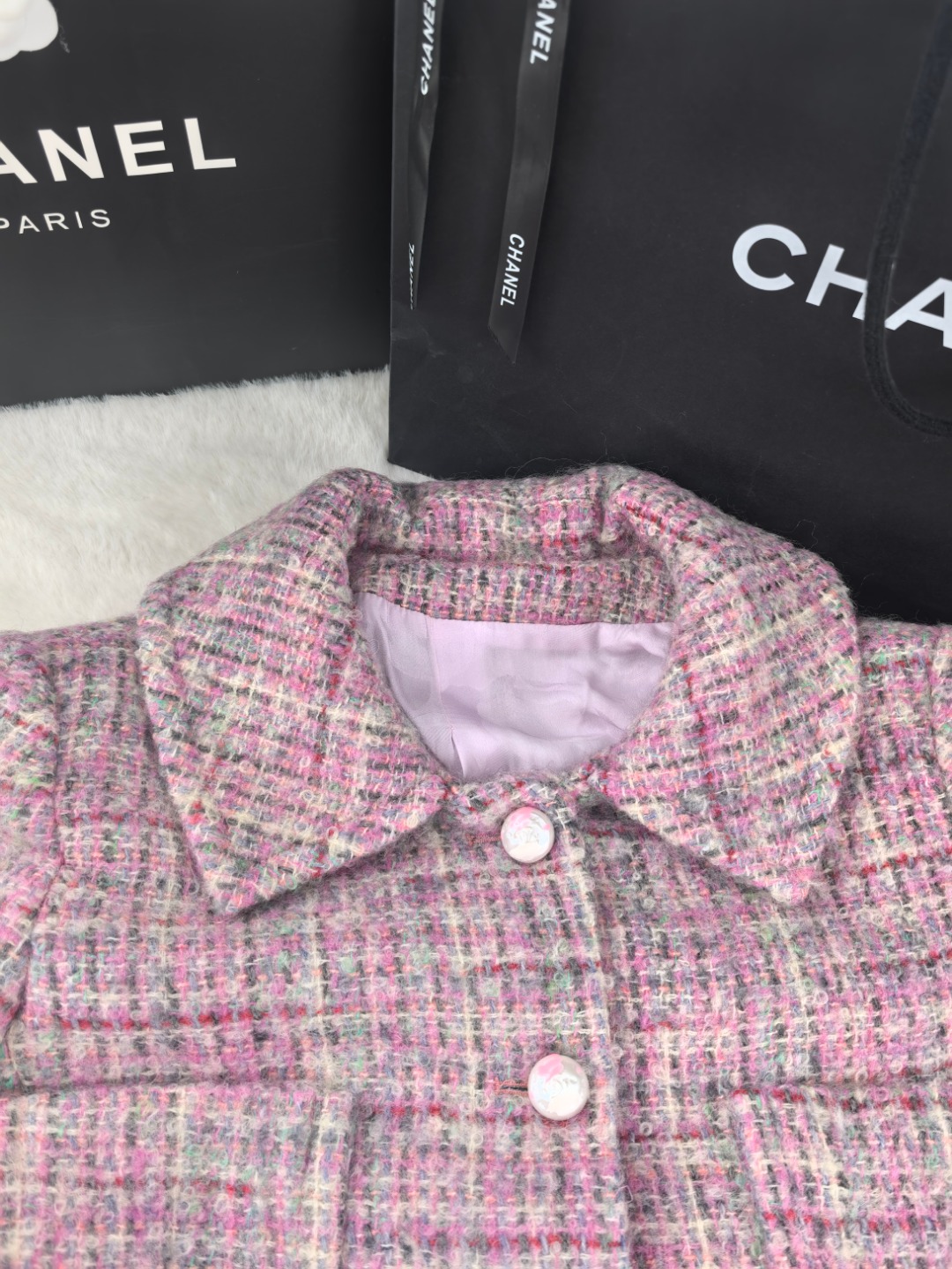 这款衣服是AAAAA 1:1 质量 (非常棒). 使用了和原版一模一样的材料. 商标部分也保持了和香奈儿/Chanel一样. 图片拍摄是实物衣服拍摄, 您所收到的实物保证和我们图片一模一样.