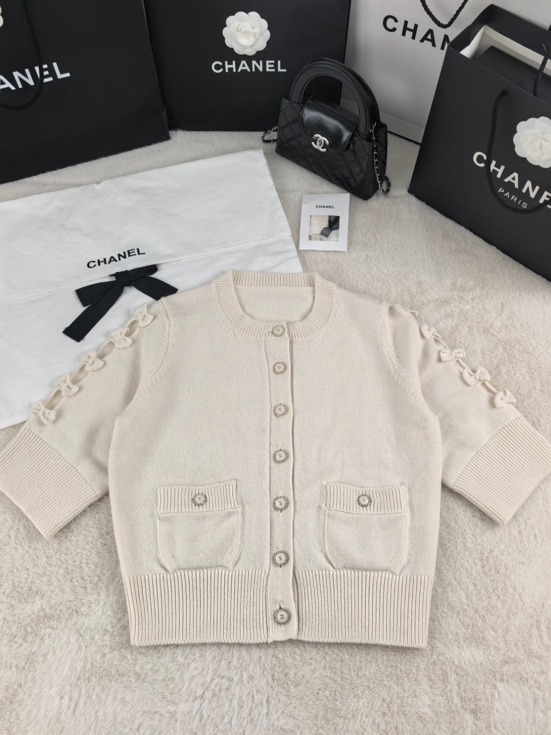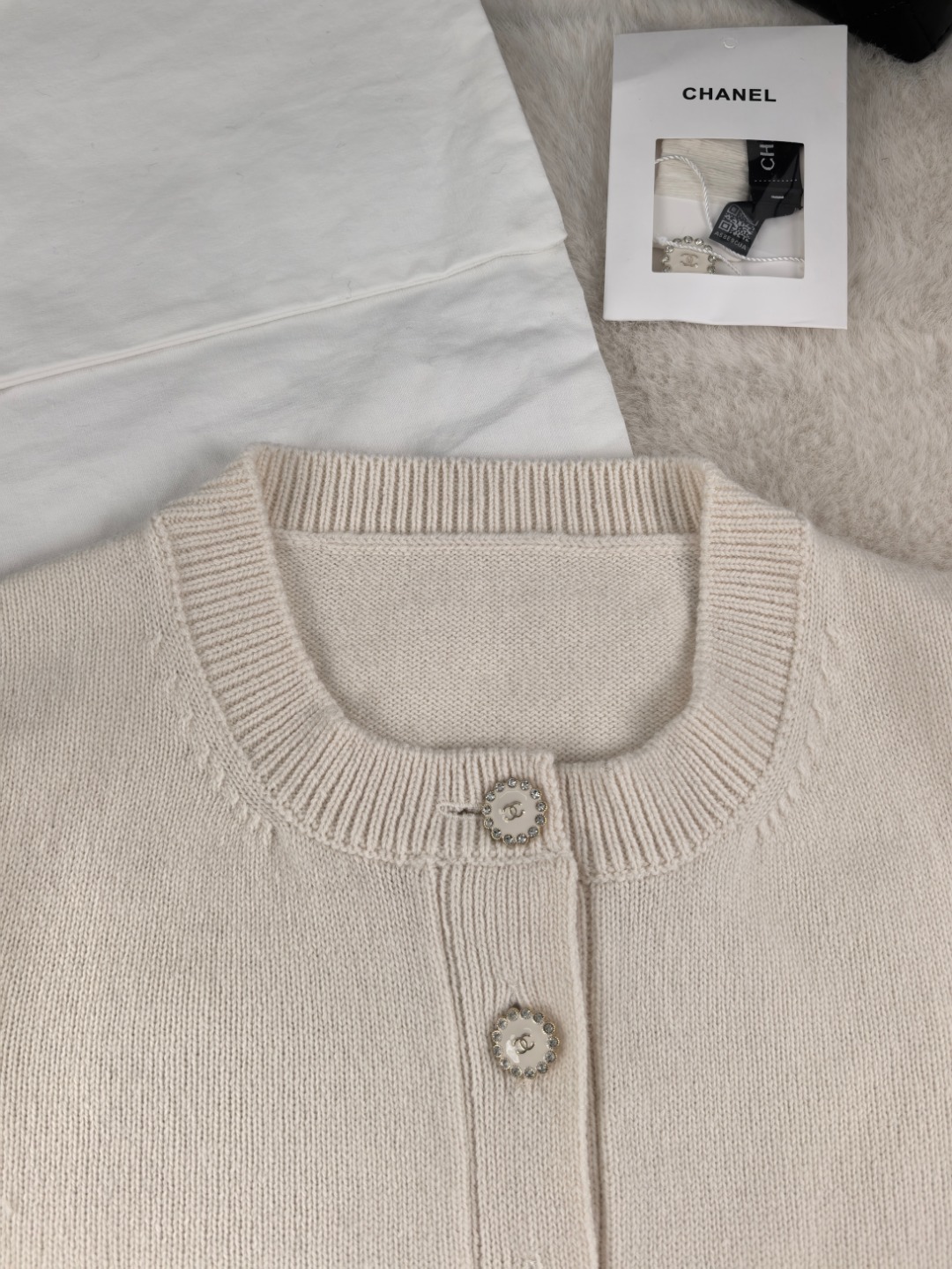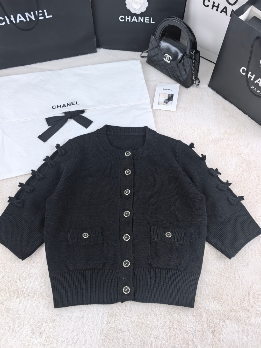 这款衣服是AAAAA 1:1 质量 (非常棒). 使用了和原版一模一样的材料. 商标部分也保持了和香奈儿/Chanel一样. 图片拍摄是实物衣服拍摄, 您所收到的实物保证和我们图片一模一样.