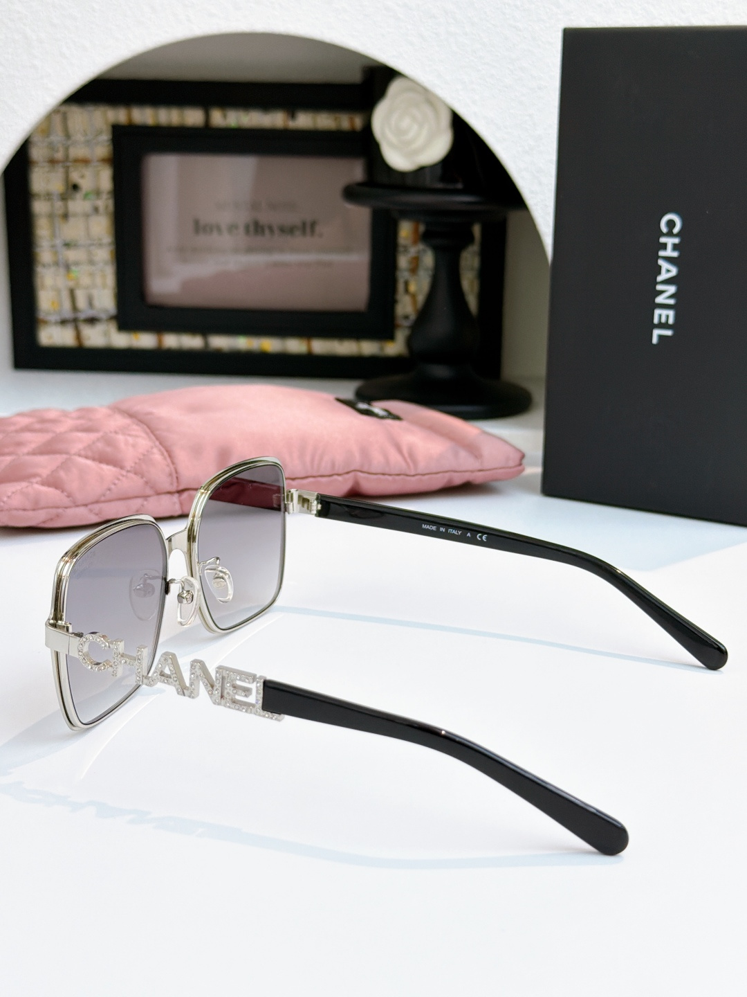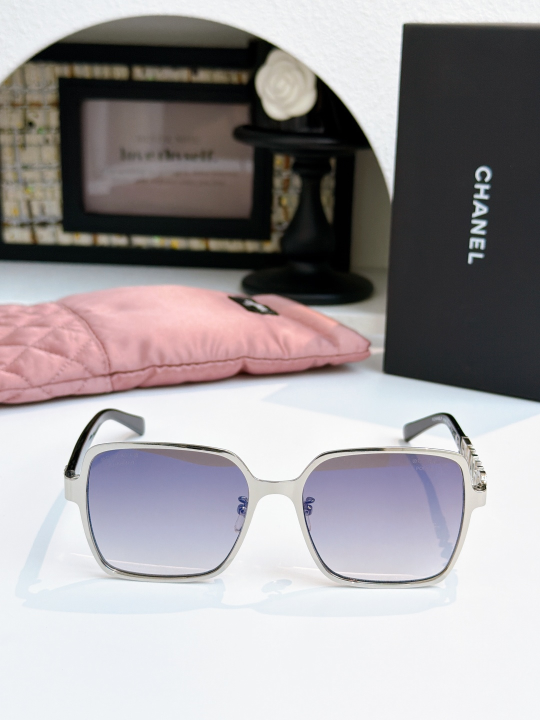 这款太阳眼镜是AAAAA 1:1 质量 (非常棒). 使用了和原版一模一样的材料. 商标部分也保持了和香奈儿/Chanel一样. 图片拍摄是实物太阳眼镜拍摄, 您所收到的实物保证和我们图片一模一样.