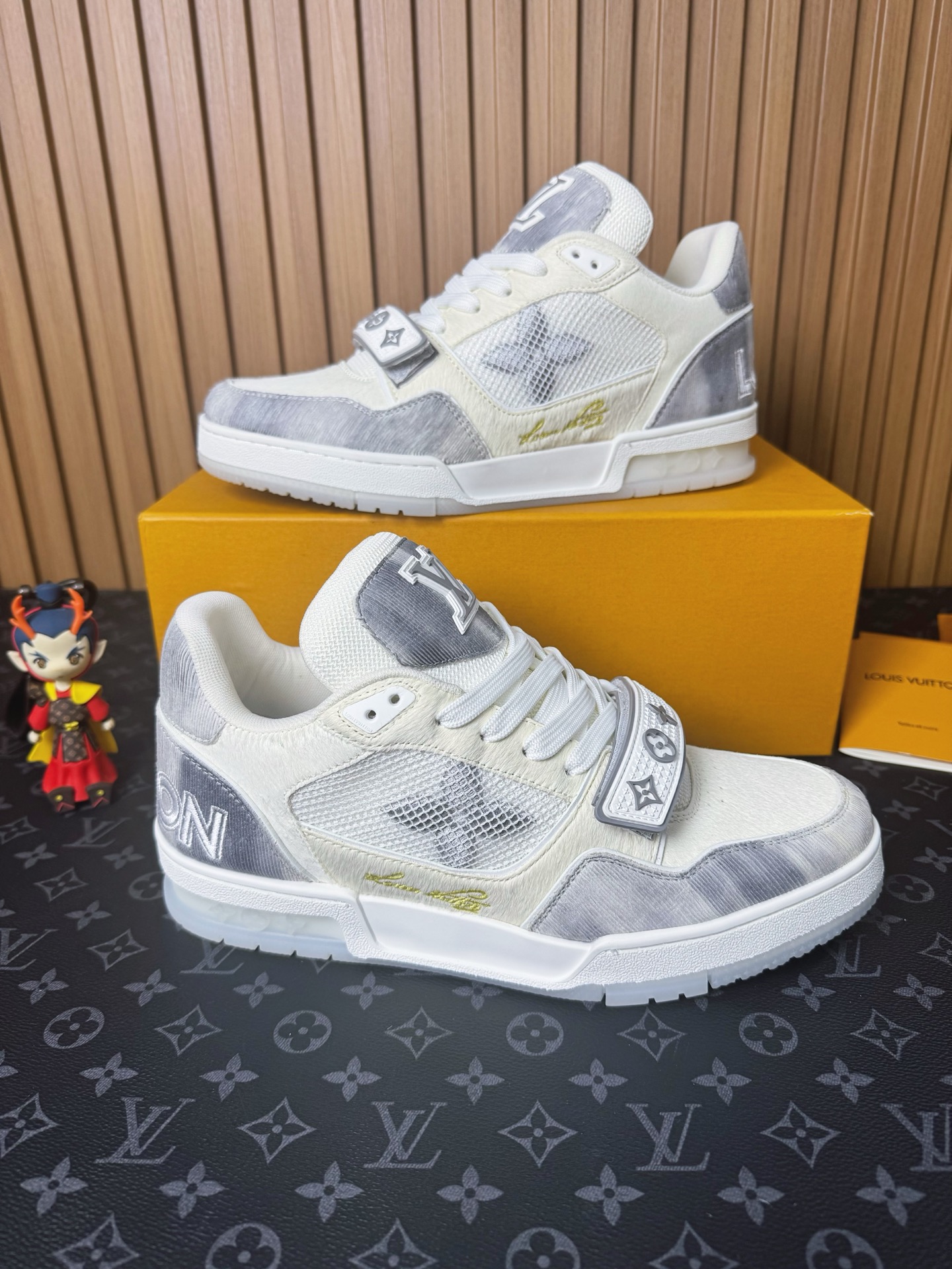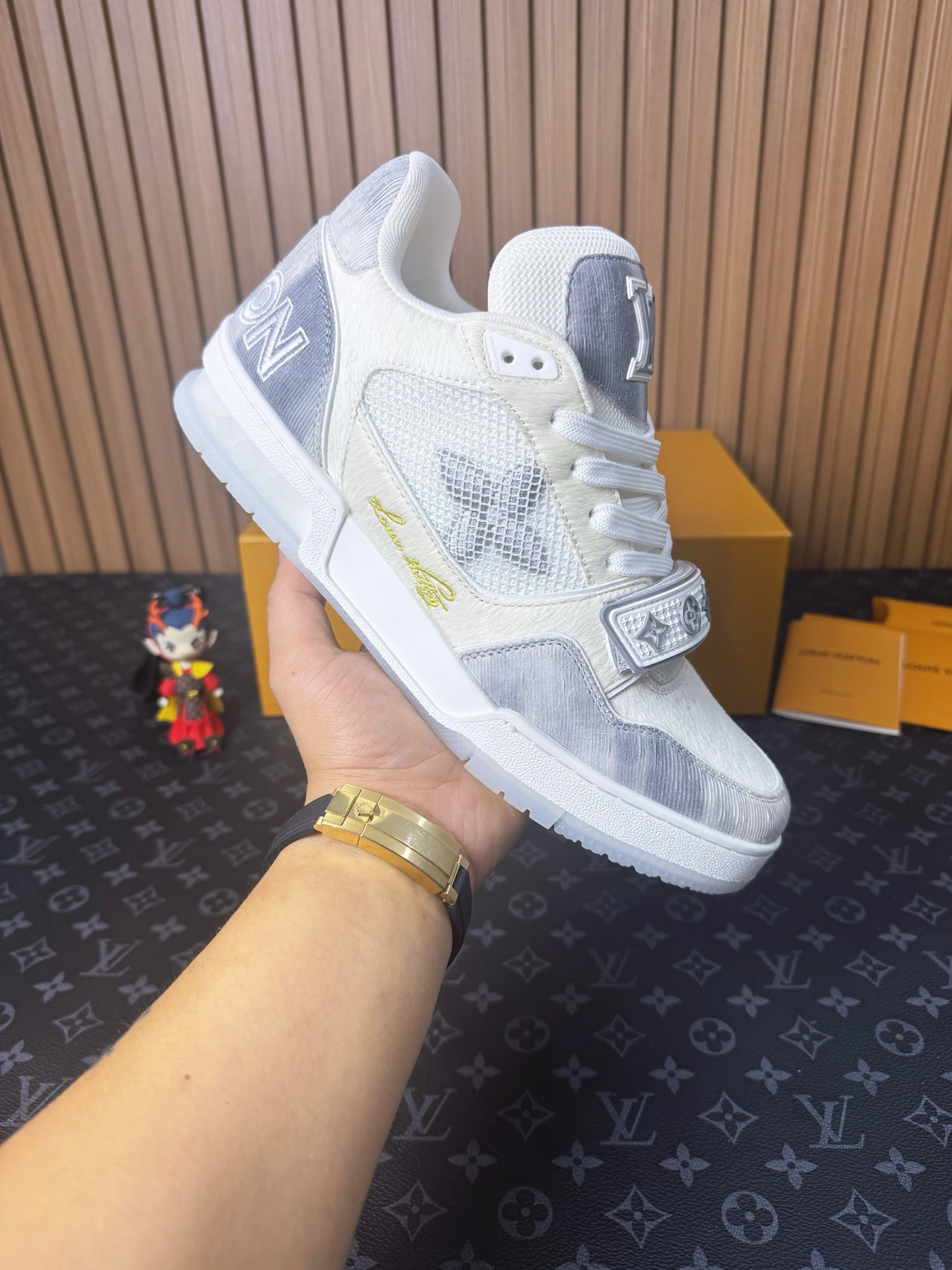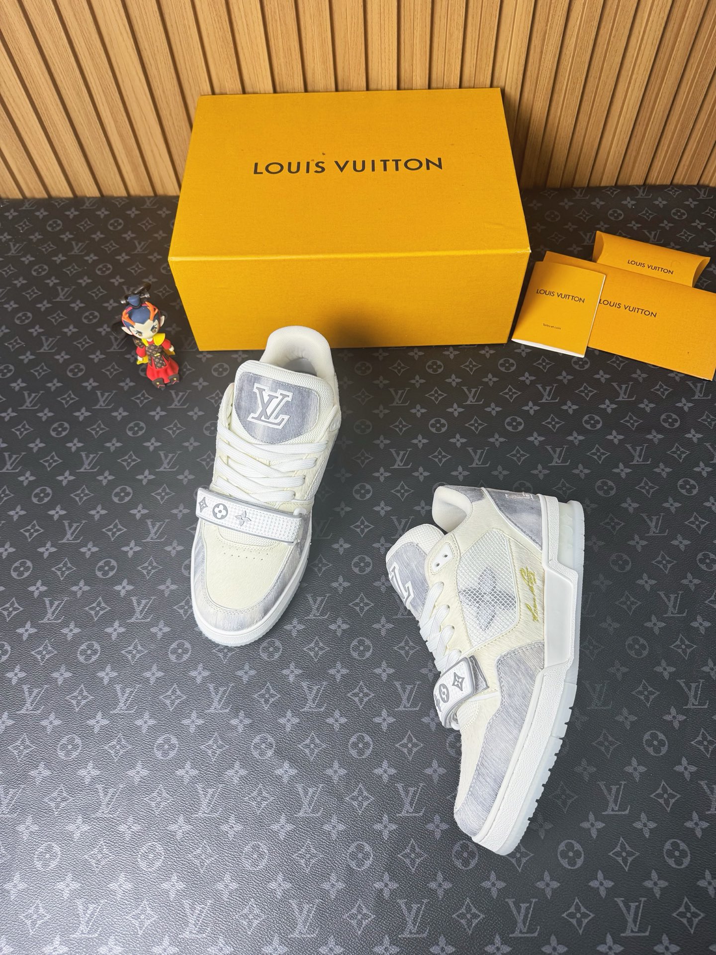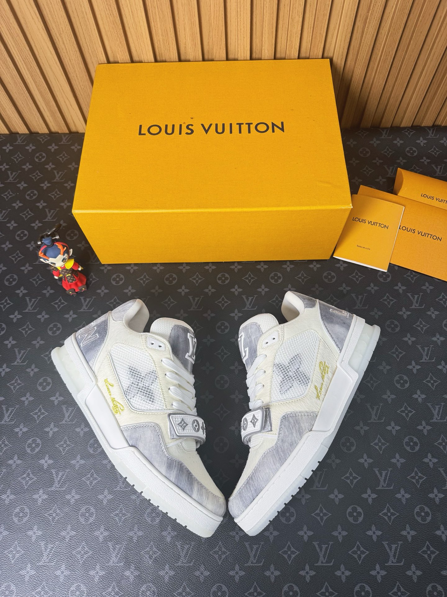 这款鞋子是AAAAA 1:1 质量 (非常棒). 使用了和原版一模一样的材料. 商标部分也保持了和路易威登/Louis Vuitton一样. 图片拍摄是实物鞋子拍摄, 您所收到的实物保证和我们图片一模一样.