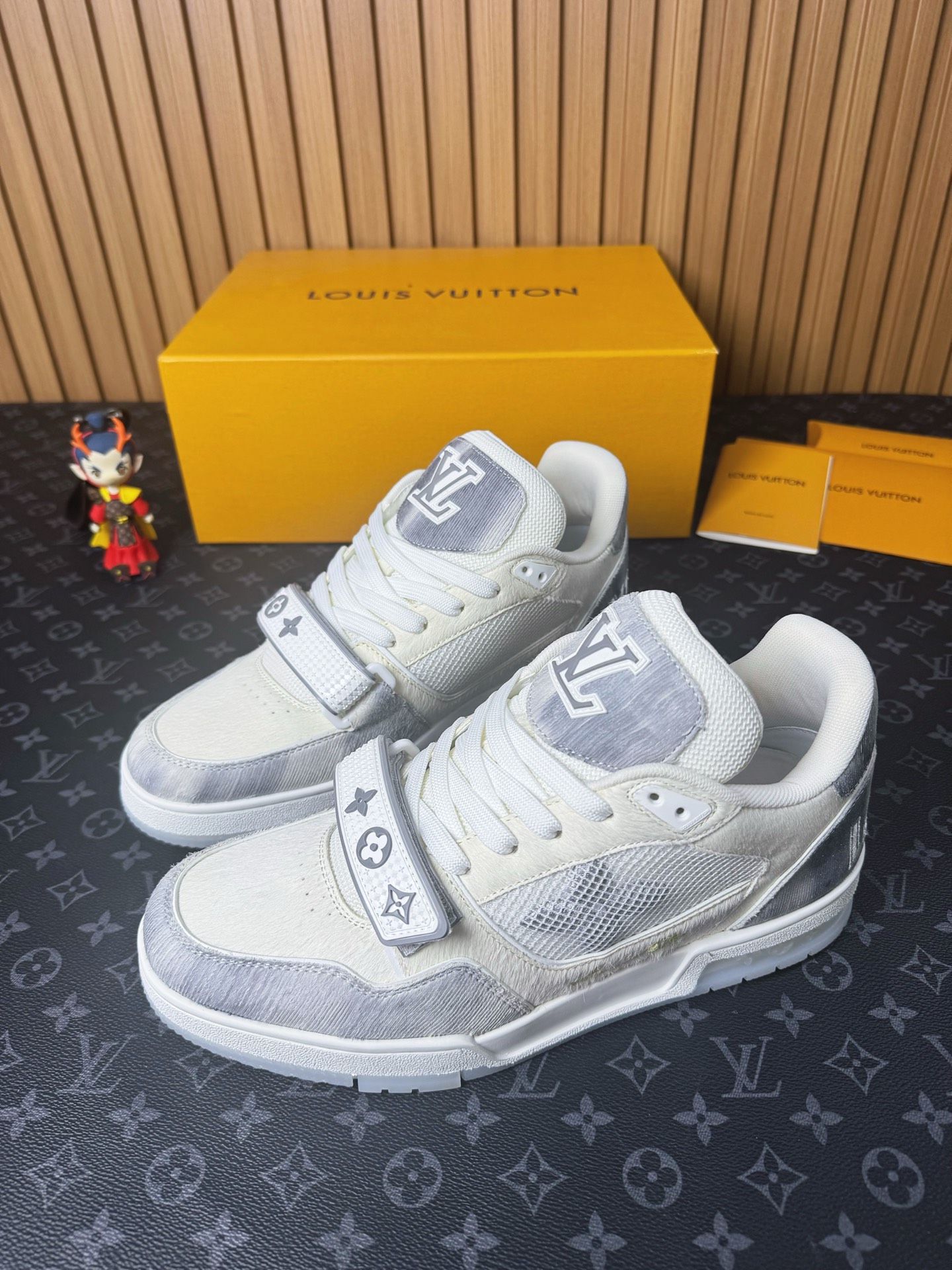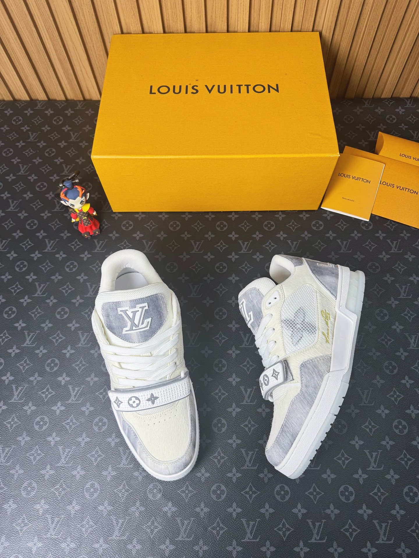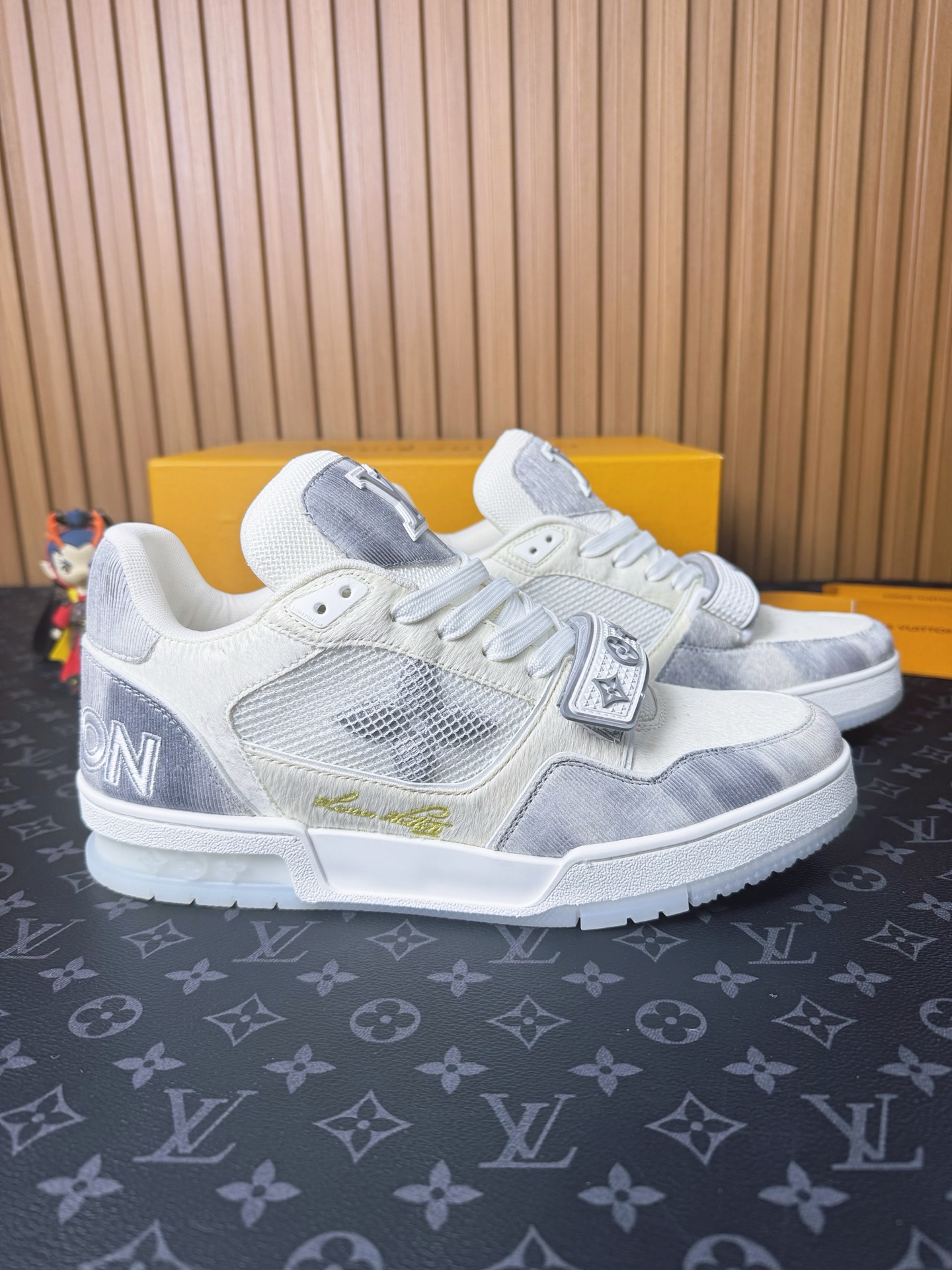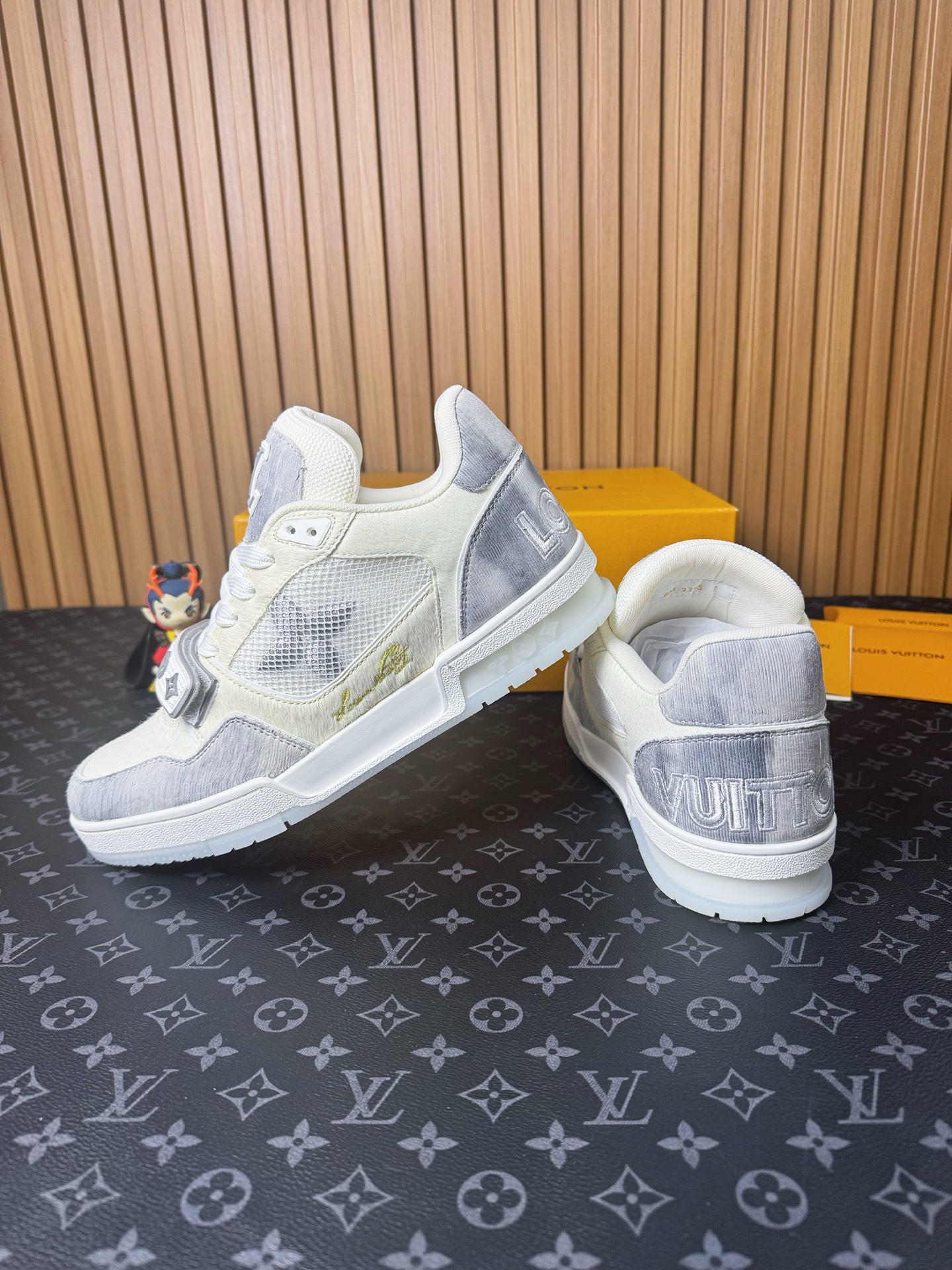 这款鞋子是AAAAA 1:1 质量 (非常棒). 使用了和原版一模一样的材料. 商标部分也保持了和路易威登/Louis Vuitton一样. 图片拍摄是实物鞋子拍摄, 您所收到的实物保证和我们图片一模一样.