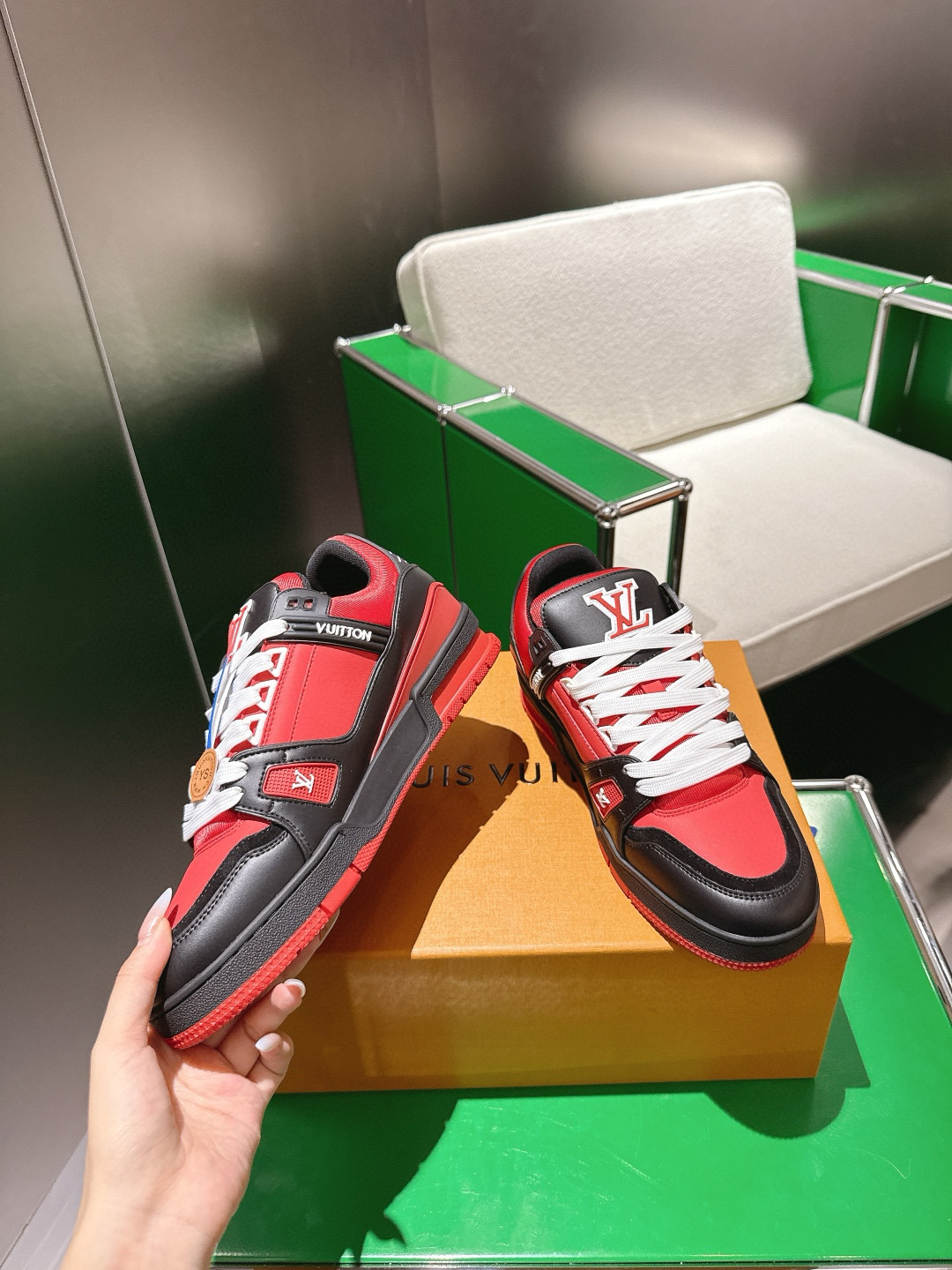这款鞋子是AAAAA 1:1 质量 (非常棒). 使用了和原版一模一样的材料. 商标部分也保持了和路易威登/Louis Vuitton一样. 图片拍摄是实物鞋子拍摄, 您所收到的实物保证和我们图片一模一样.