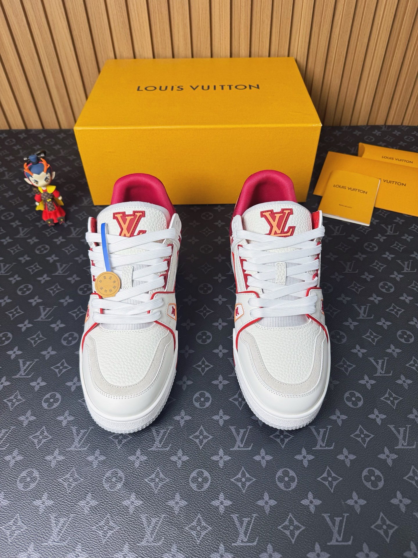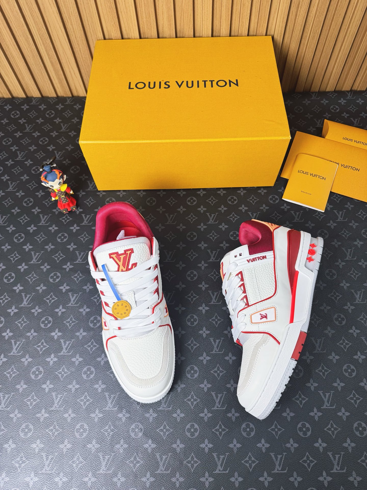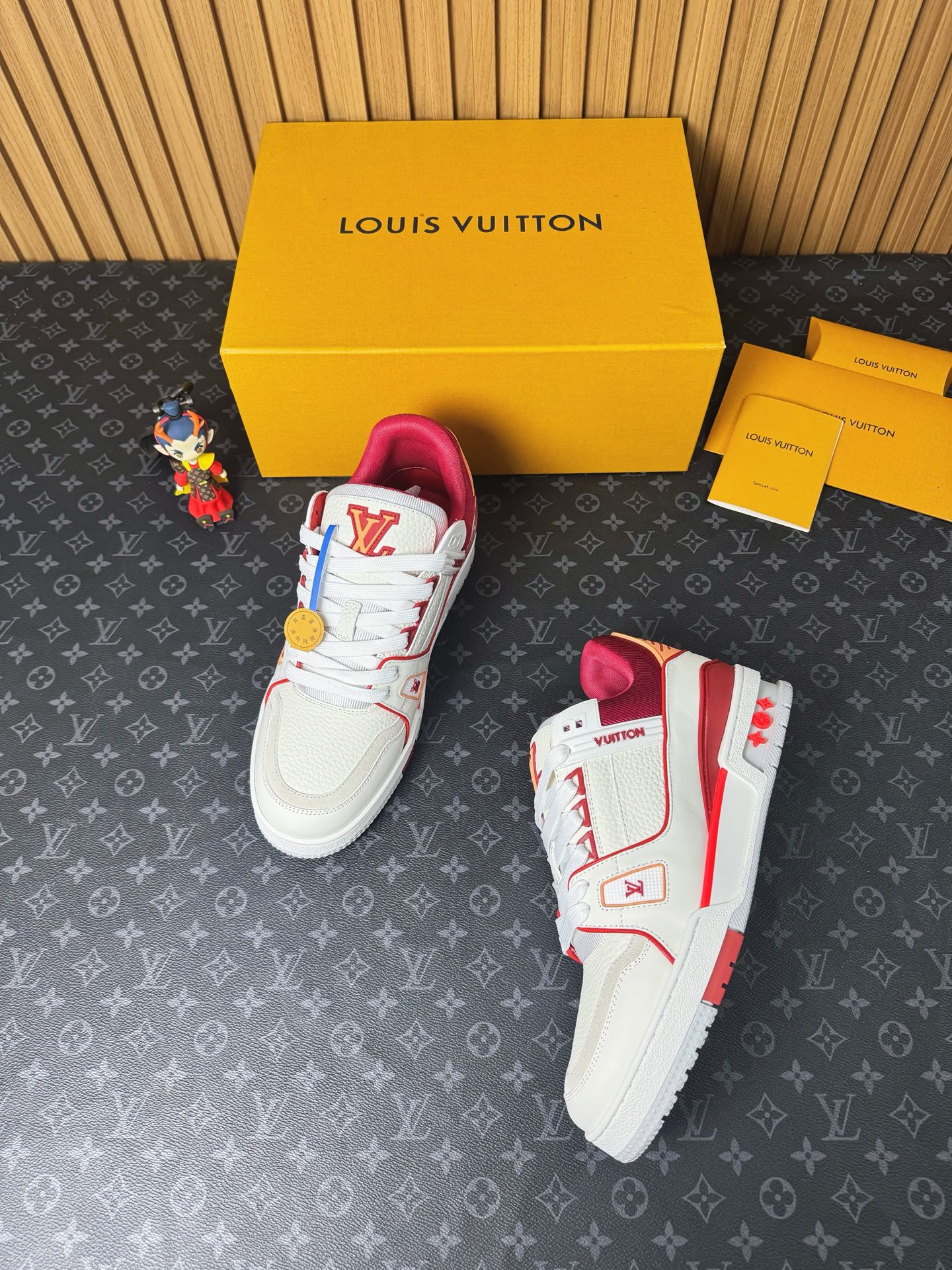 这款鞋子是AAAAA 1:1 质量 (非常棒). 使用了和原版一模一样的材料. 商标部分也保持了和路易威登/Louis Vuitton一样. 图片拍摄是实物鞋子拍摄, 您所收到的实物保证和我们图片一模一样.