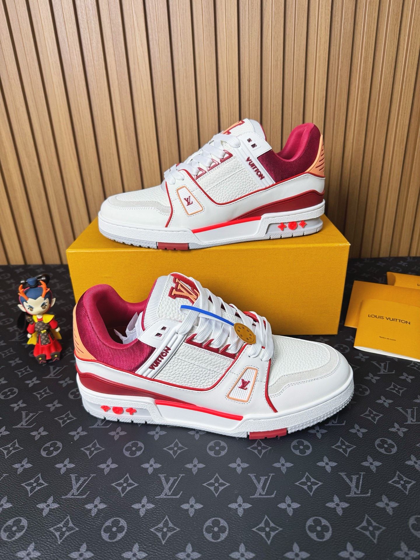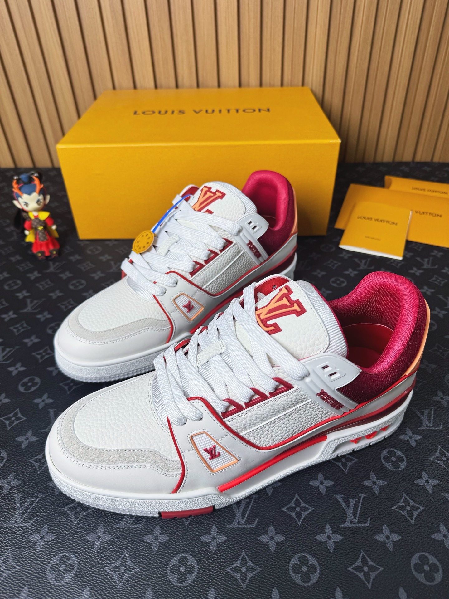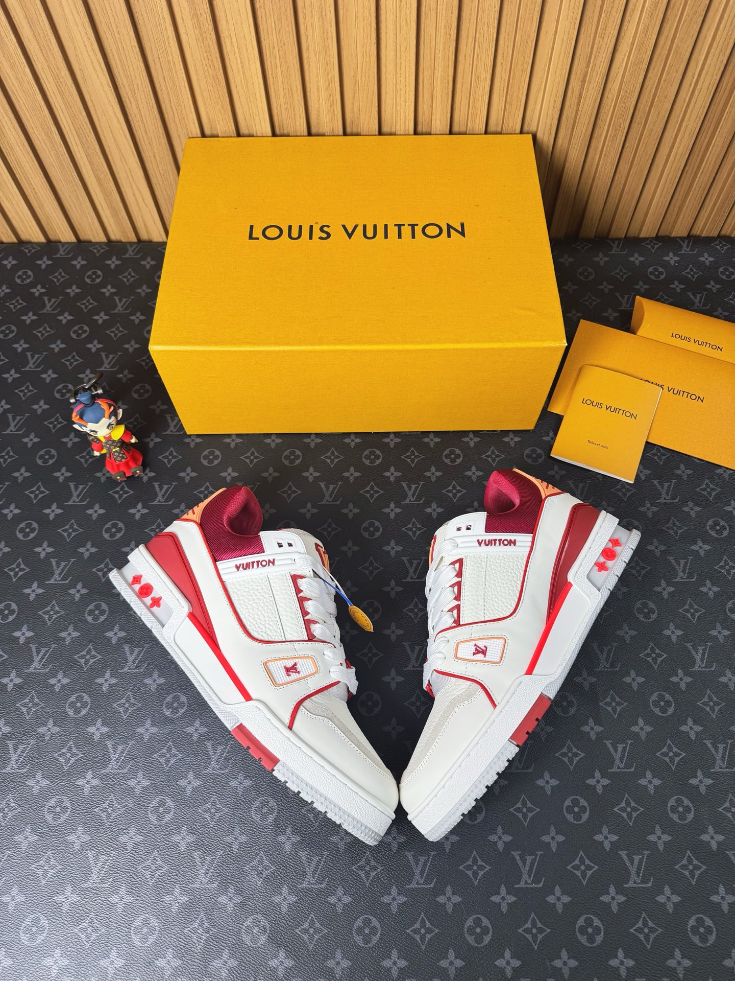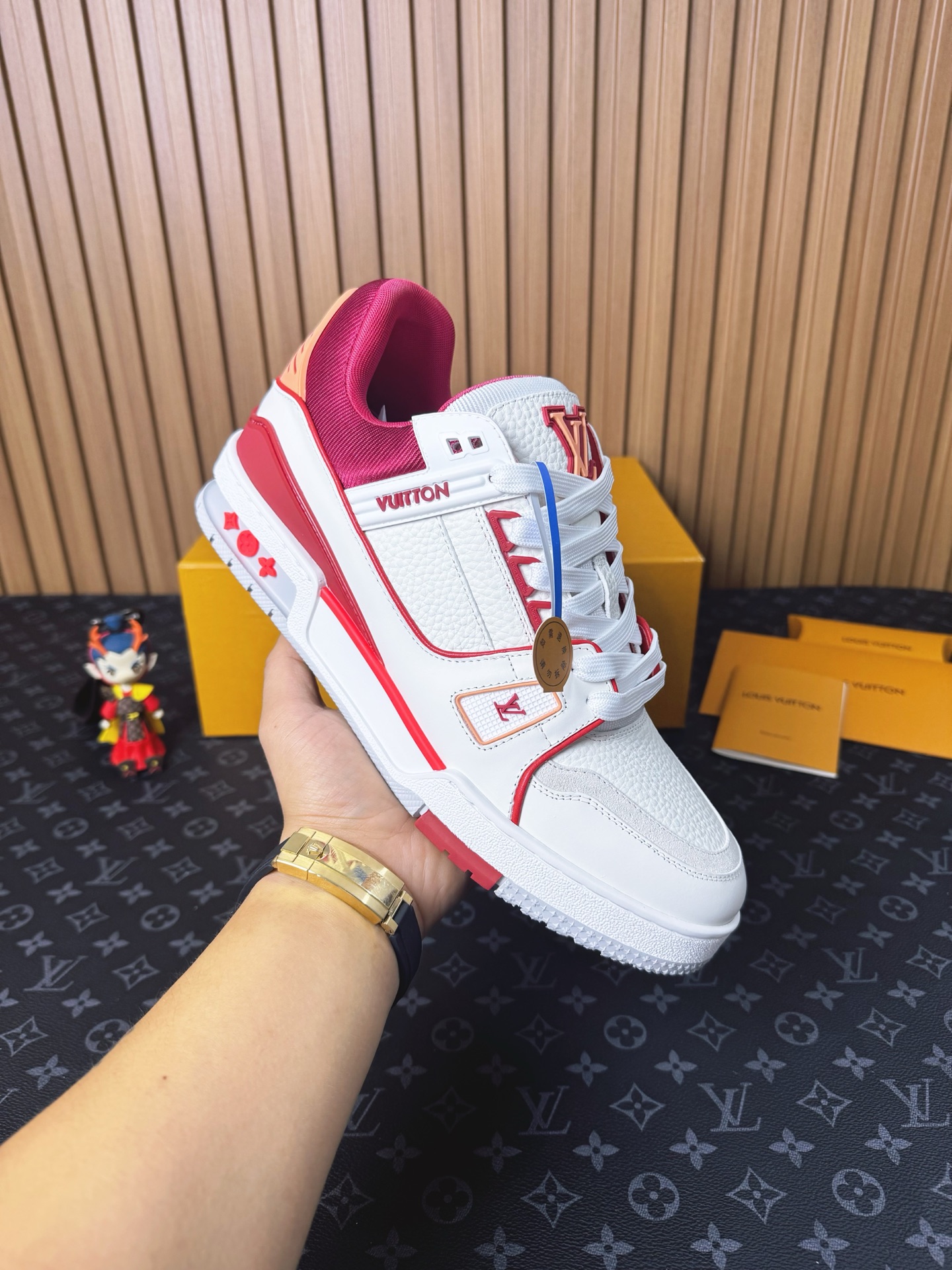 这款鞋子是AAAAA 1:1 质量 (非常棒). 使用了和原版一模一样的材料. 商标部分也保持了和路易威登/Louis Vuitton一样. 图片拍摄是实物鞋子拍摄, 您所收到的实物保证和我们图片一模一样.