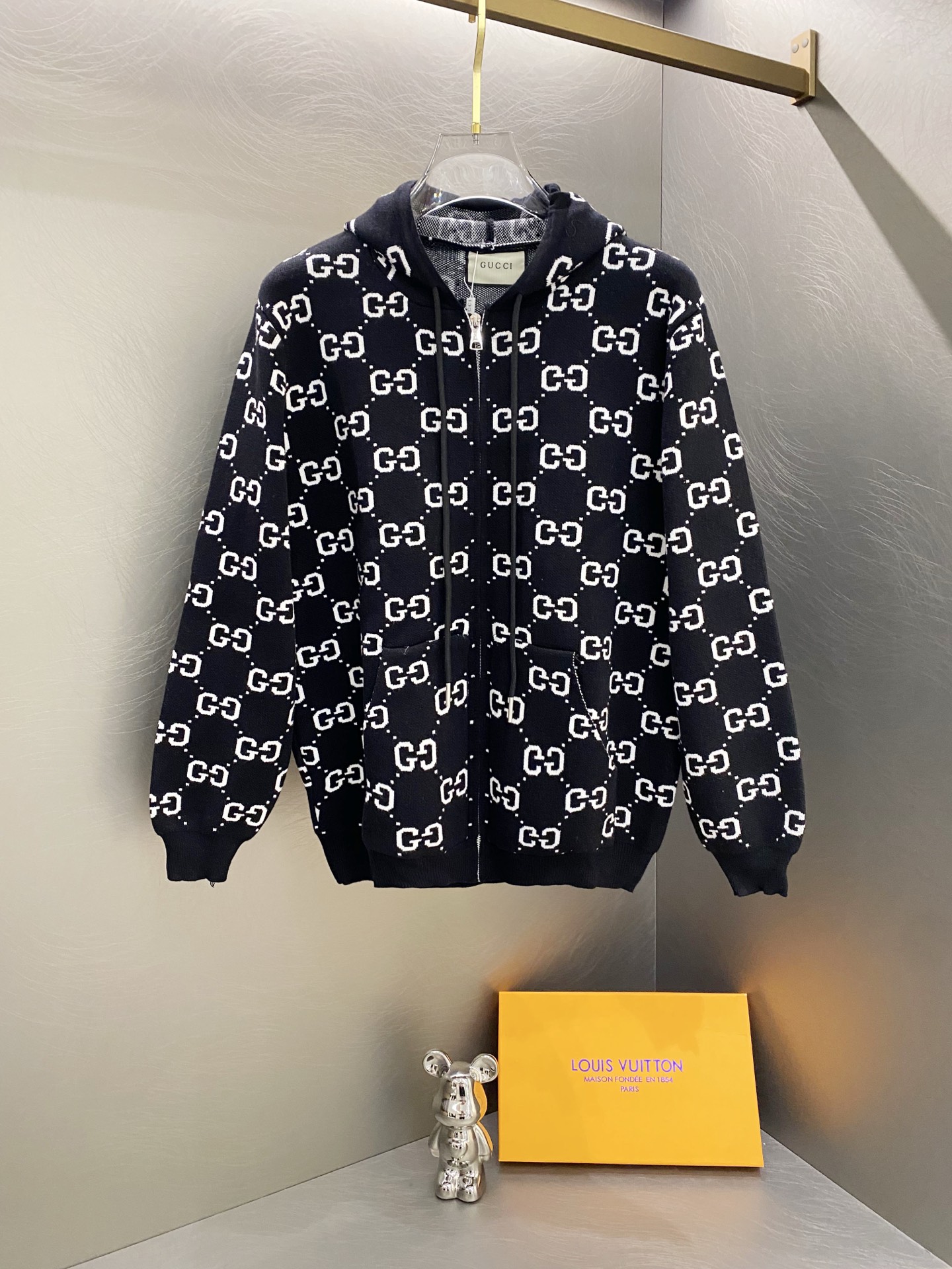 这款衣服是AAAAA 1:1 质量 (非常棒). 使用了和原版一模一样的材料. 商标部分也保持了和古奇/Gucci一样. 图片拍摄是实物衣服拍摄, 您所收到的实物保证和我们图片一模一样.