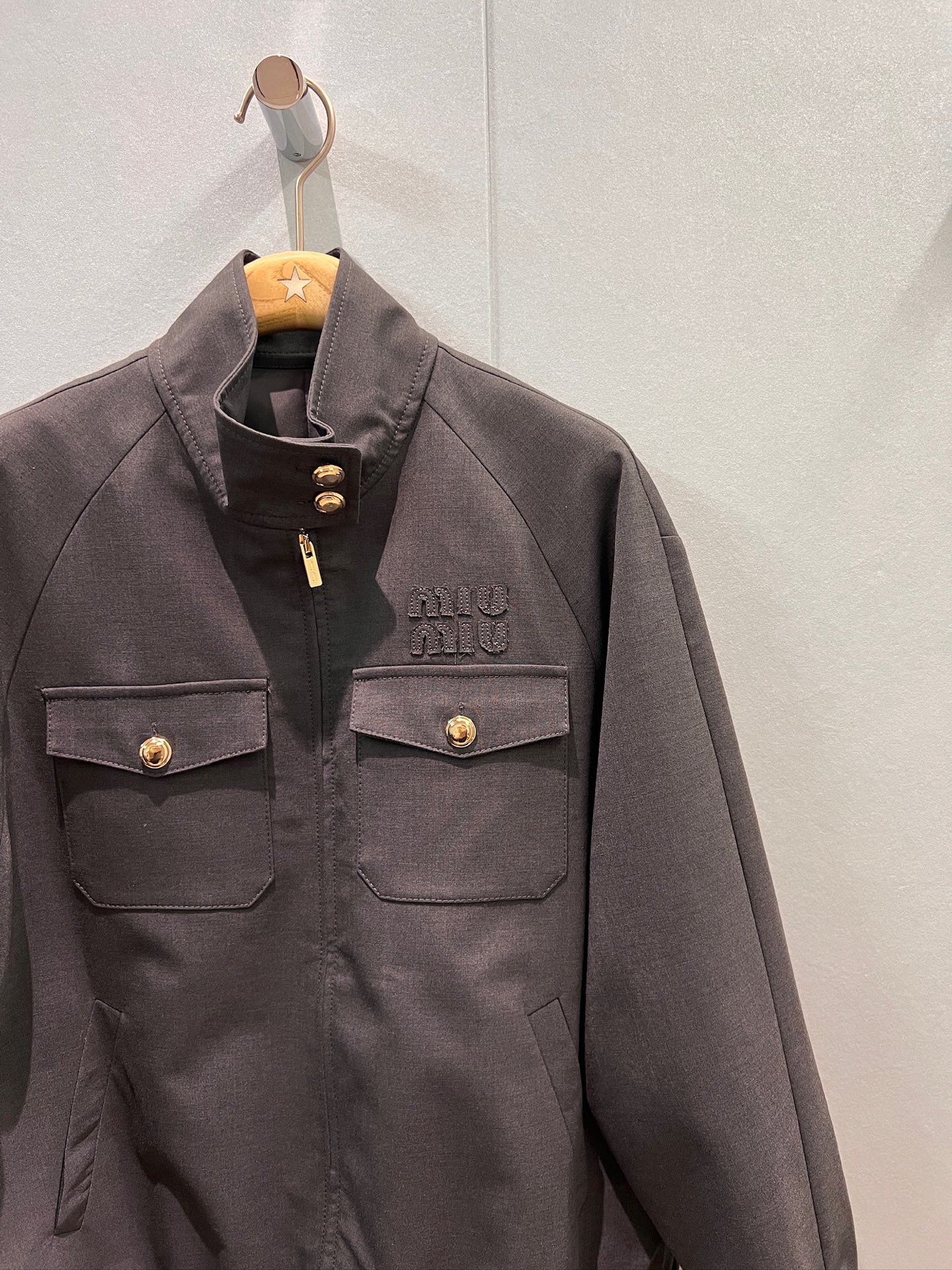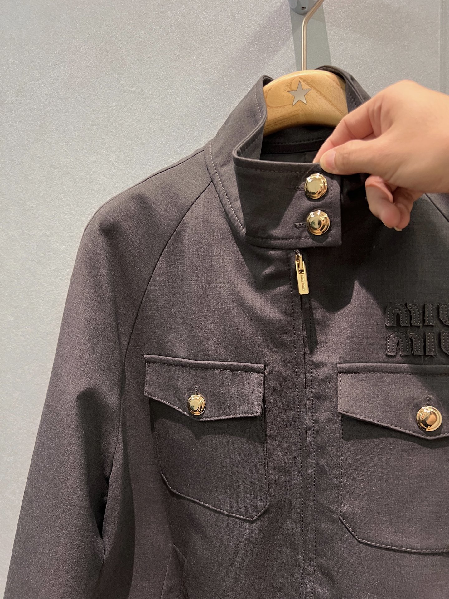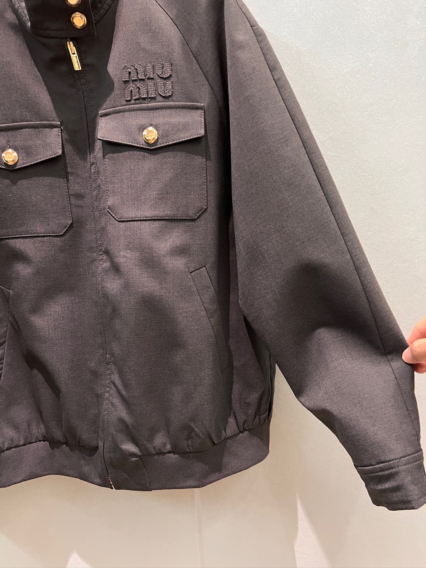 这款衣服是AAAAA 1:1 质量 (非常棒). 使用了和原版一模一样的材料. 商标部分也保持了和缪缪/Miu Miu一样. 图片拍摄是实物衣服拍摄, 您所收到的实物保证和我们图片一模一样.