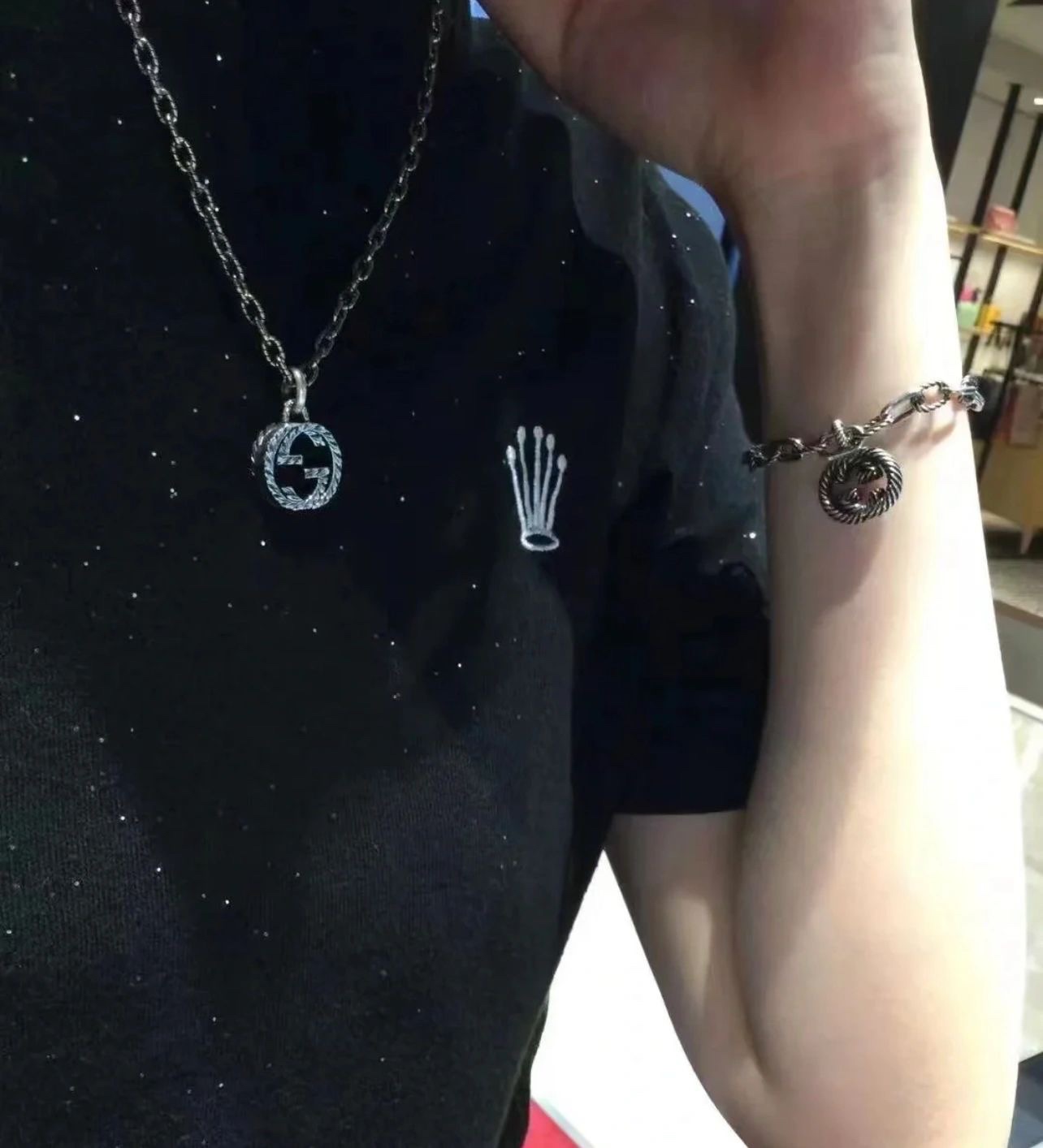 这款首饰是AAAAA 1:1 质量 (非常棒). 使用了和原版一模一样的材料. 商标部分也保持了和古奇/Gucci一样. 图片拍摄是实物首饰拍摄, 您所收到的实物保证和我们图片一模一样.
