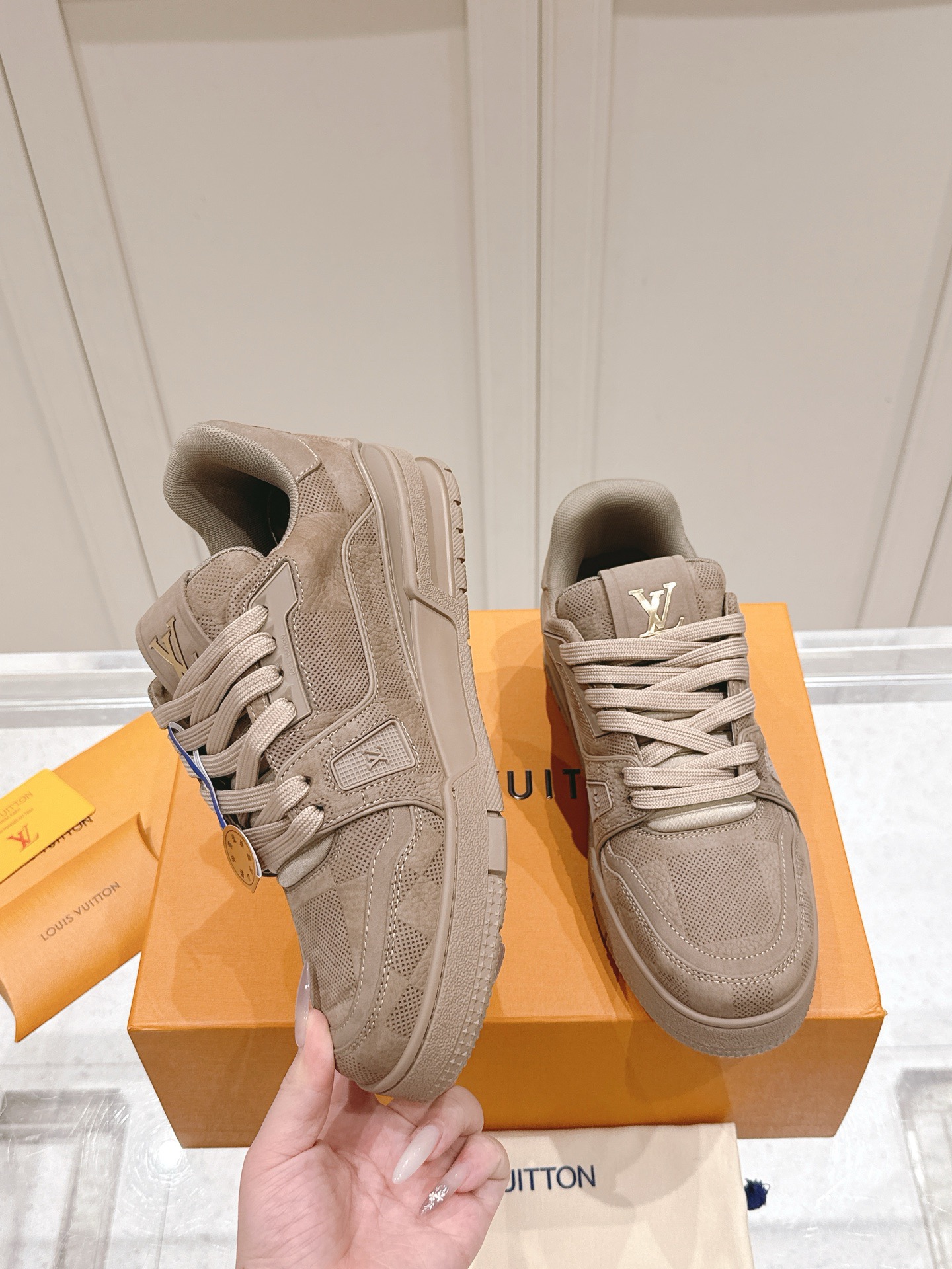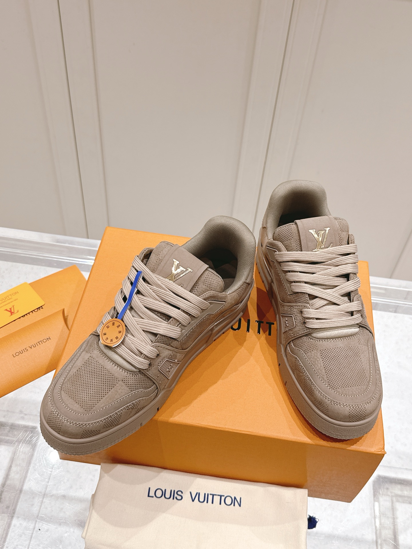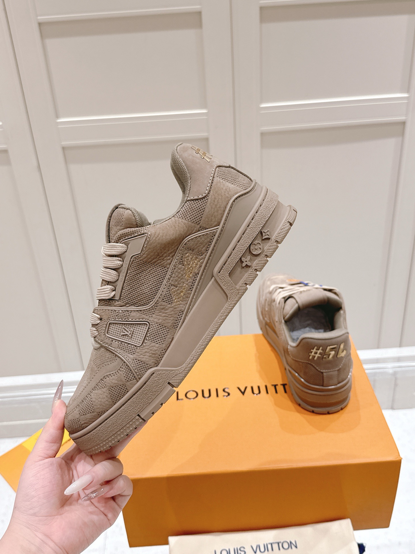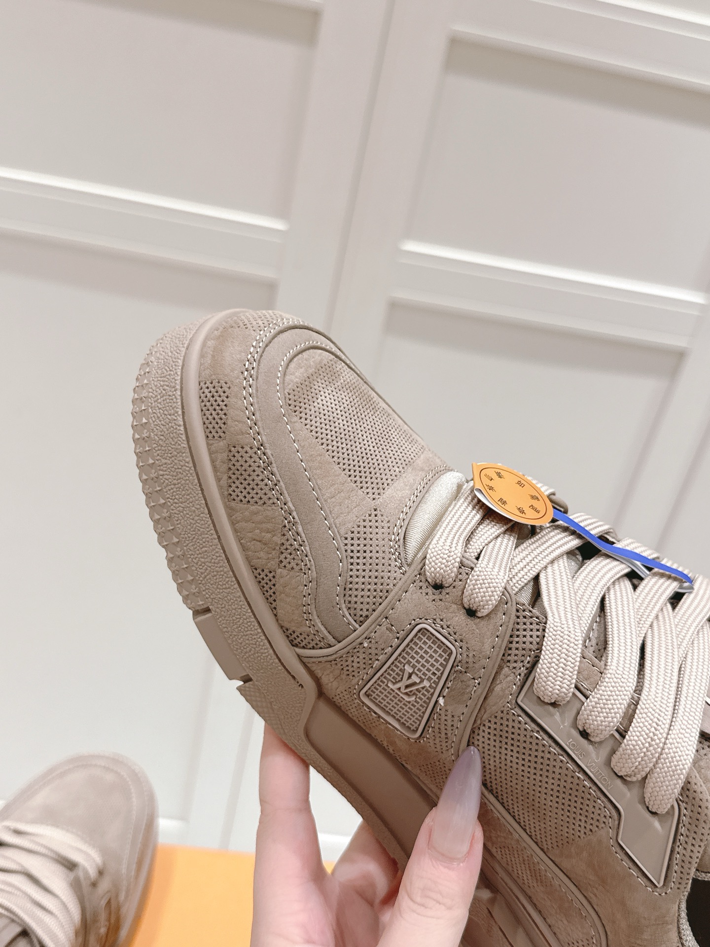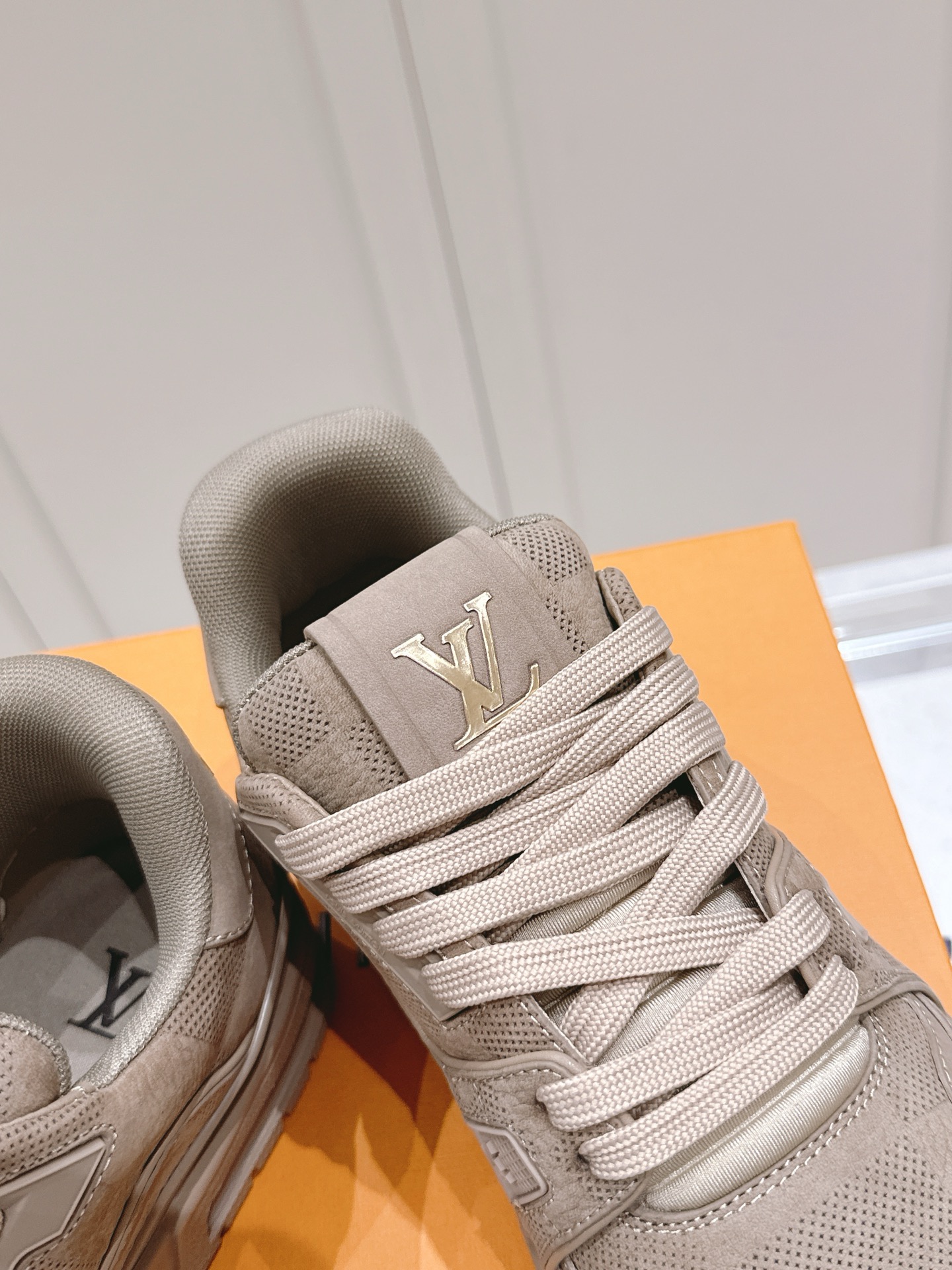 这款鞋子是AAAAA 1:1 质量 (非常棒). 使用了和原版一模一样的材料. 商标部分也保持了和路易威登/Louis Vuitton一样. 图片拍摄是实物鞋子拍摄, 您所收到的实物保证和我们图片一模一样.