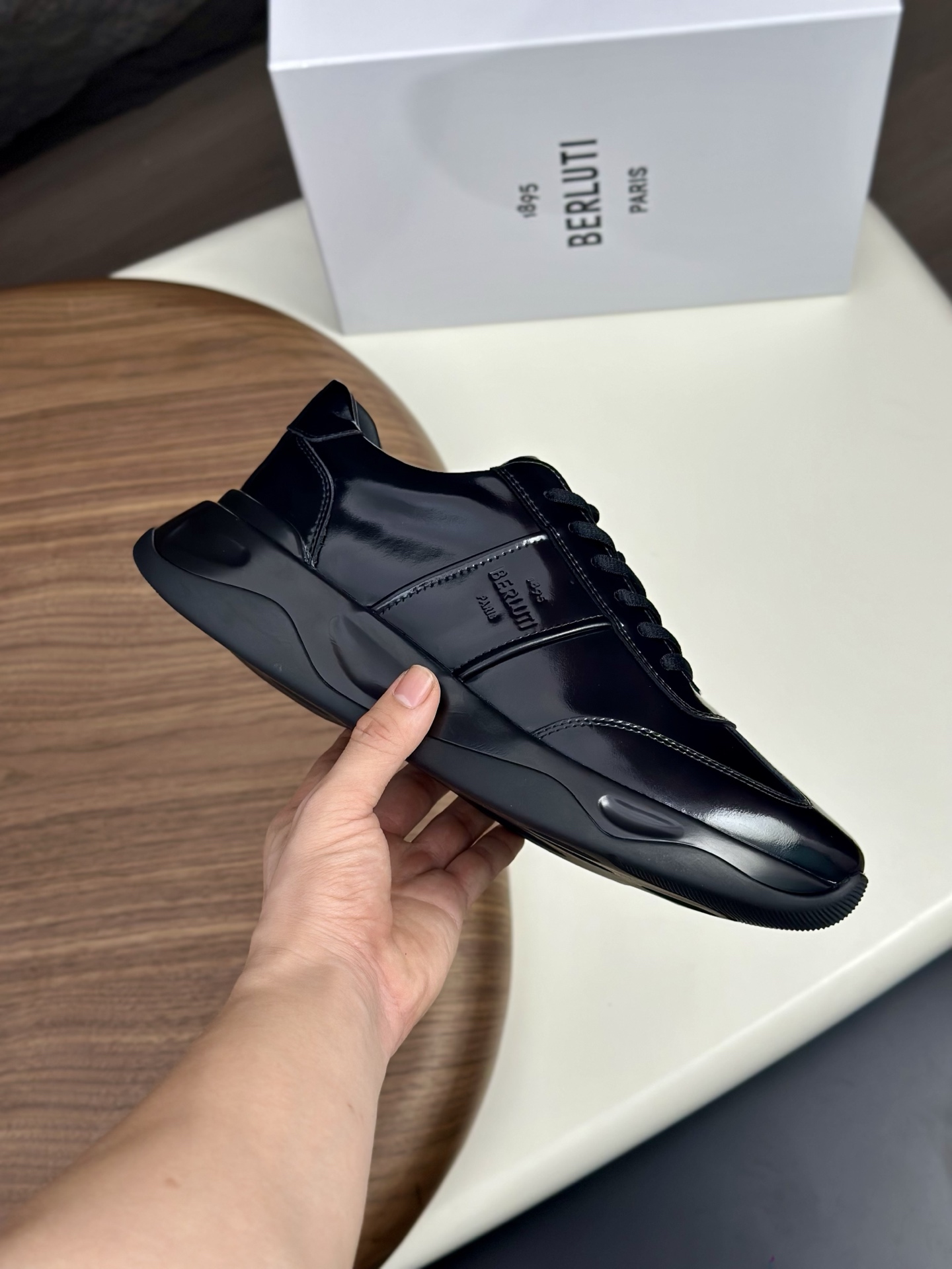 这款鞋子是AAAAA 1:1 质量 (非常棒). 使用了和原版一模一样的材料. 商标部分也保持了和Berluti一样. 图片拍摄是实物鞋子拍摄, 您所收到的实物保证和我们图片一模一样.