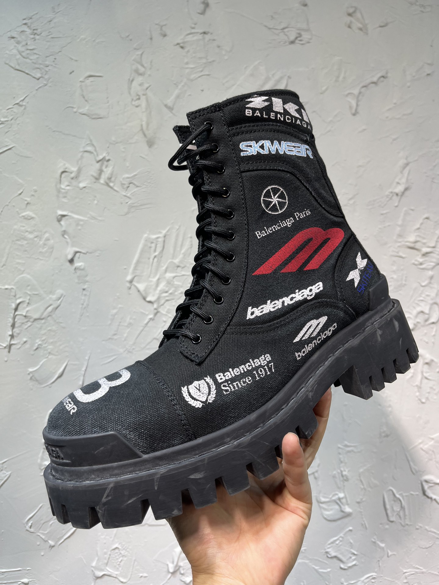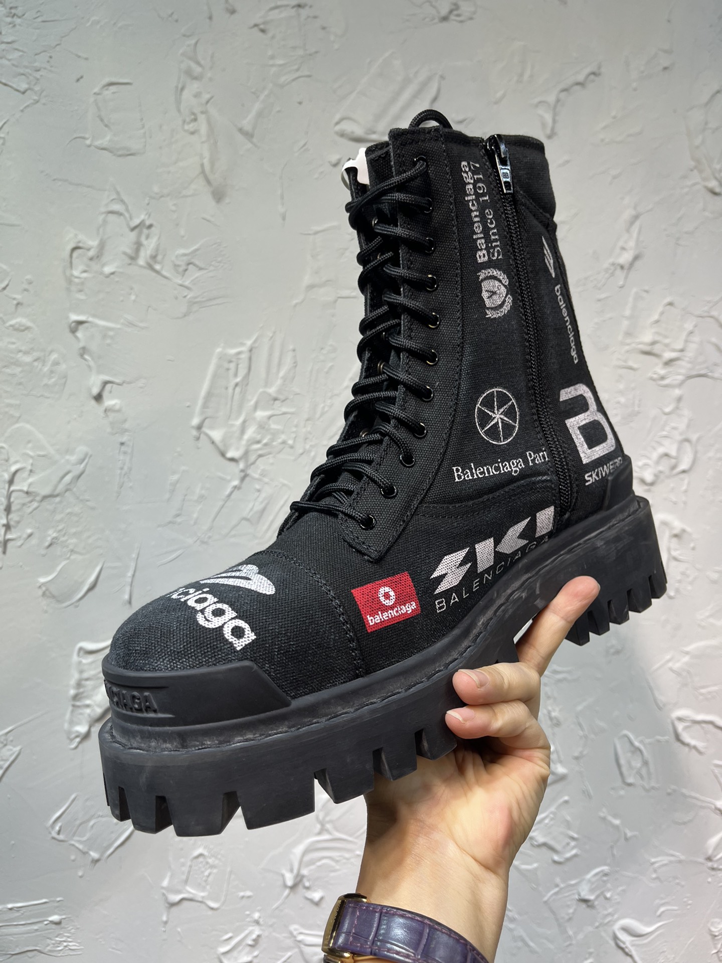 这款鞋子是AAAAA 1:1 质量 (非常棒). 使用了和原版一模一样的材料. 商标部分也保持了和巴黎世家/Balenciaga一样. 图片拍摄是实物鞋子拍摄, 您所收到的实物保证和我们图片一模一样.