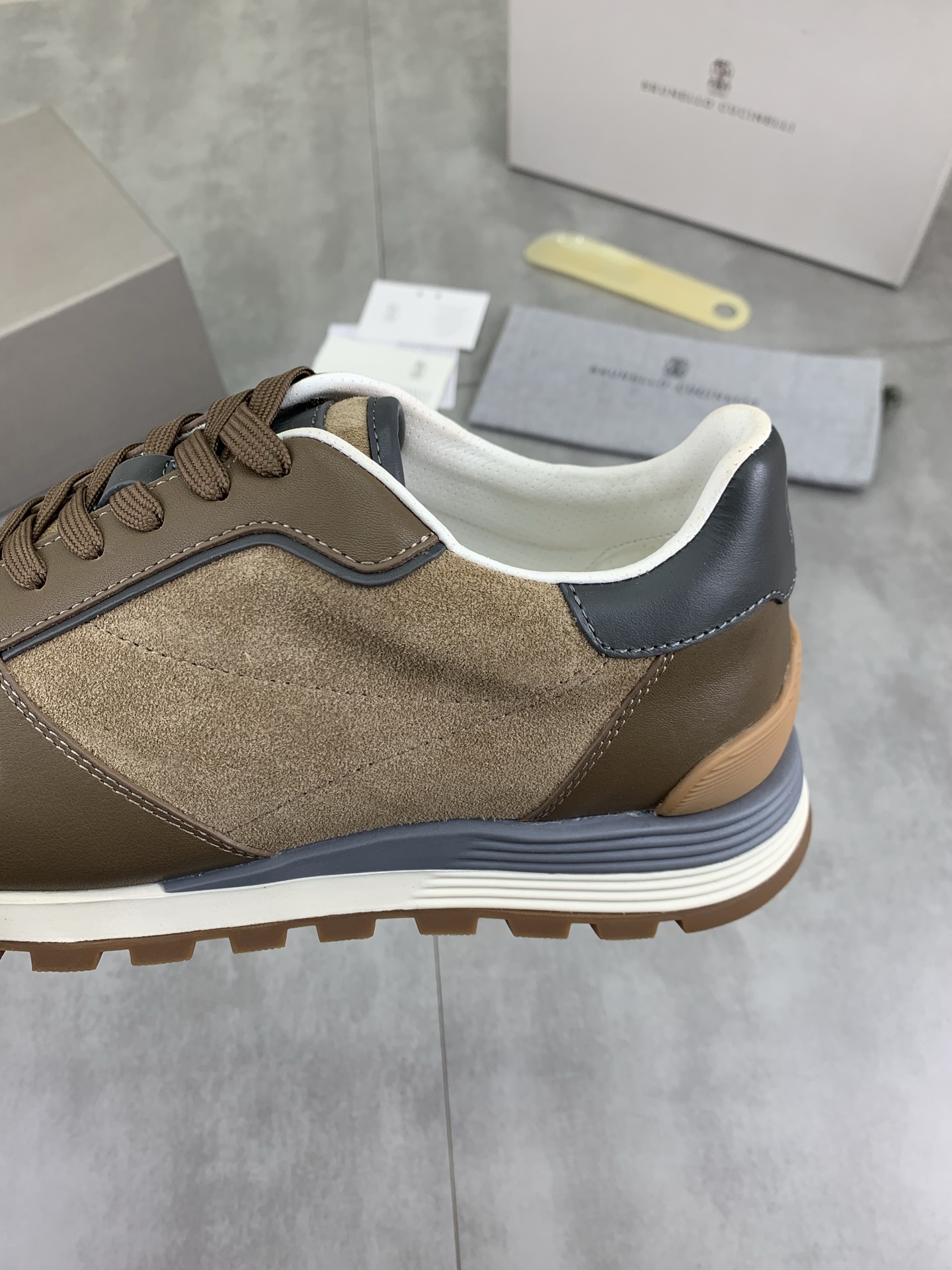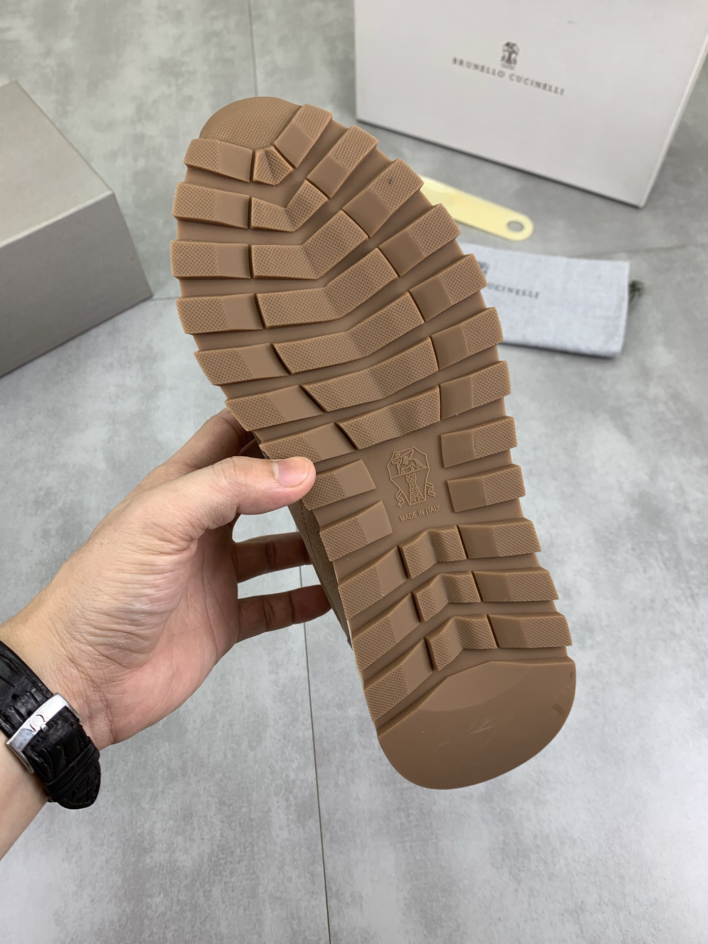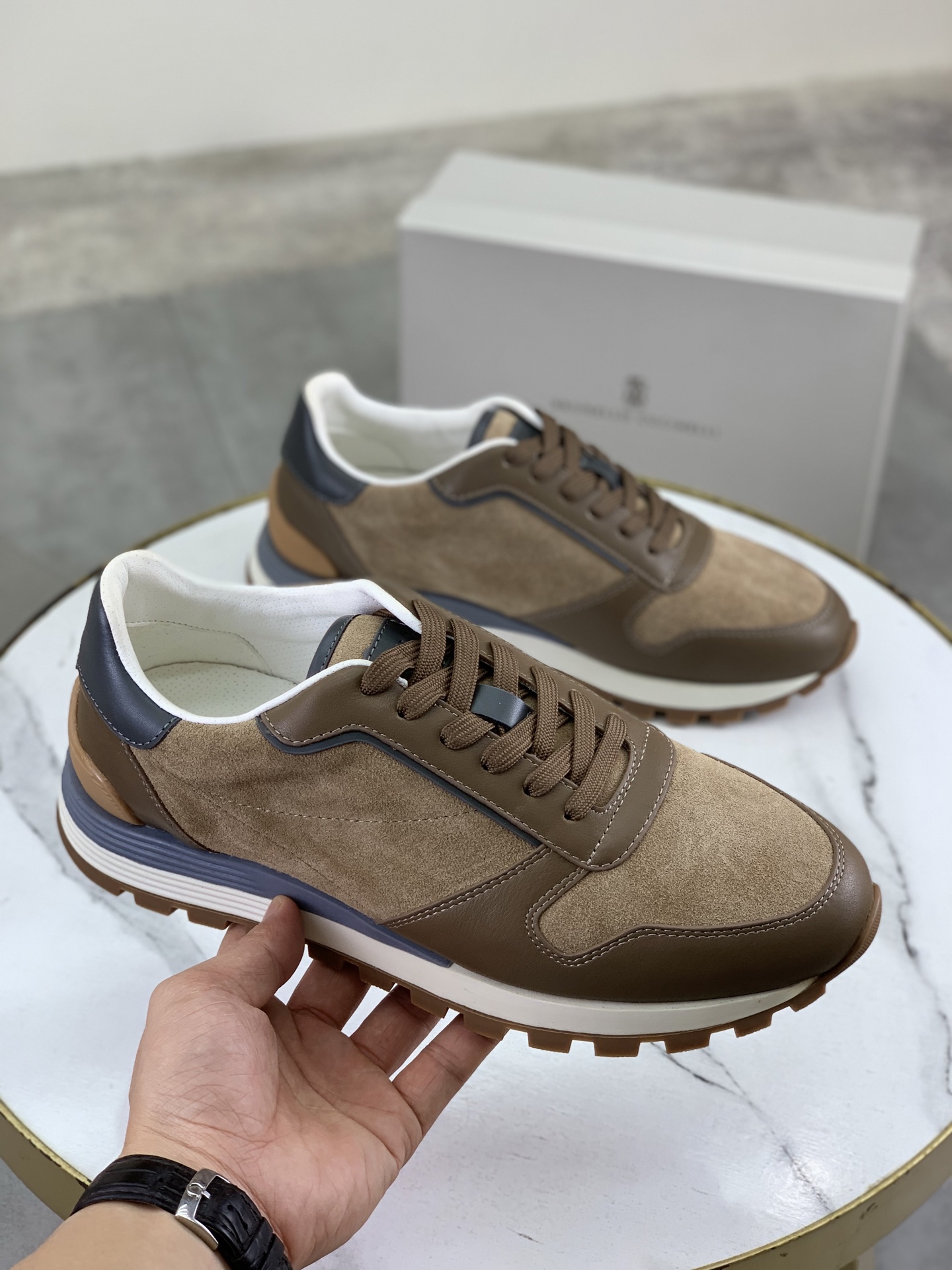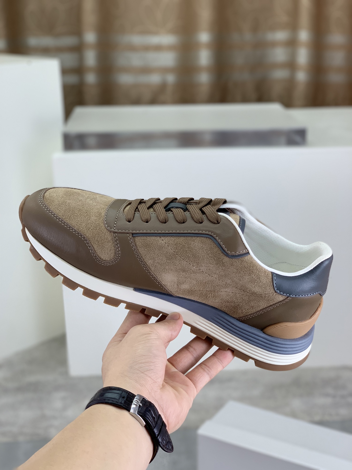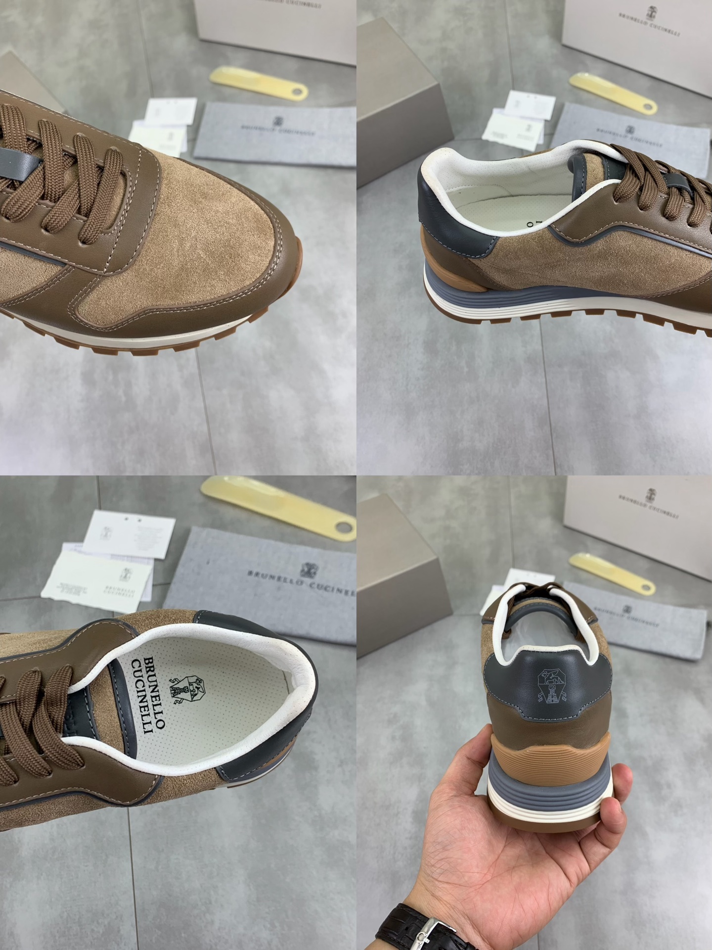 这款鞋子是AAAAA 1:1 质量 (非常棒). 使用了和原版一模一样的材料. 商标部分也保持了和Brunello Cucinelli一样. 图片拍摄是实物鞋子拍摄, 您所收到的实物保证和我们图片一模一样.