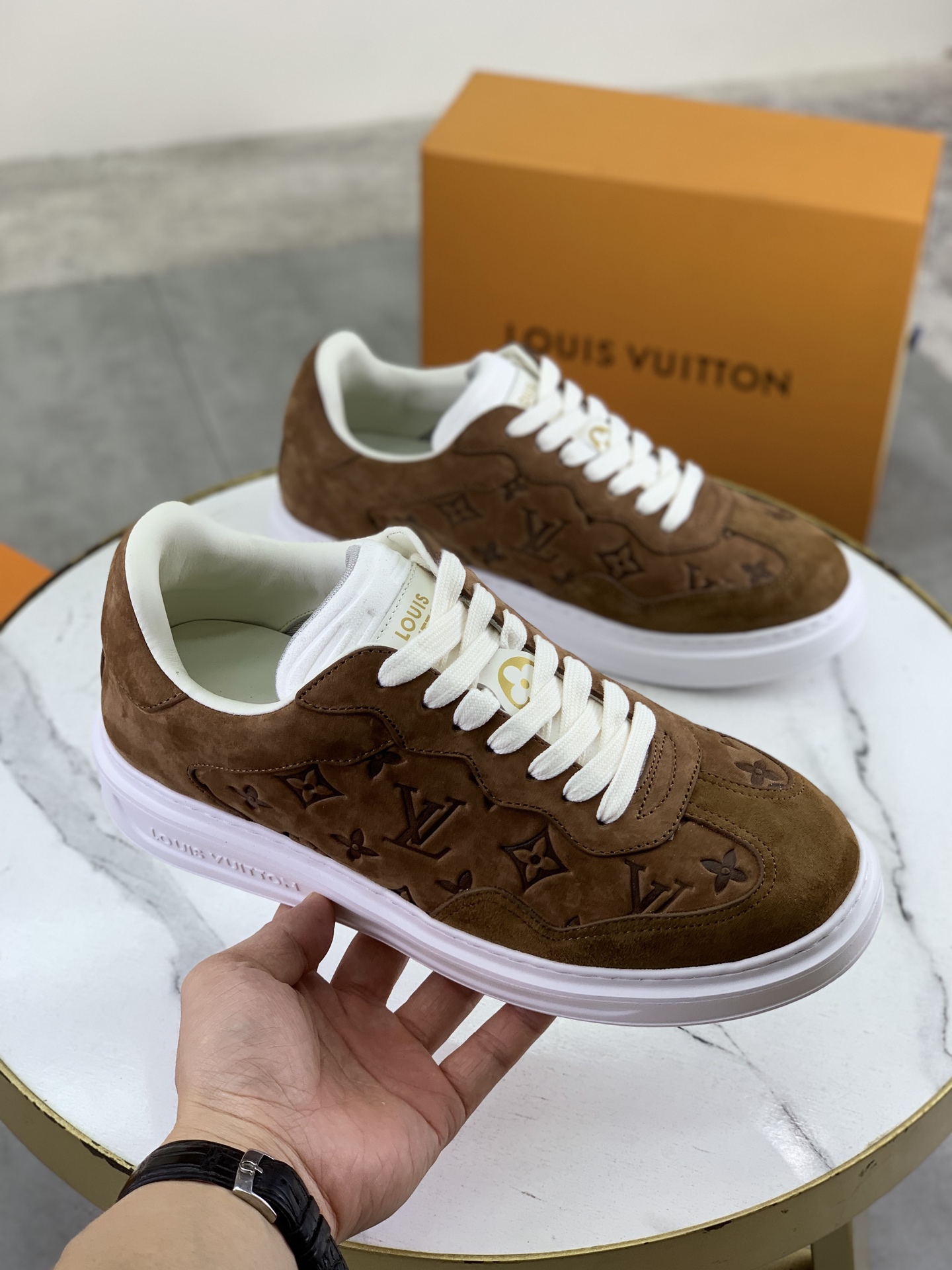 这款鞋子是AAAAA 1:1 质量 (非常棒). 使用了和原版一模一样的材料. 商标部分也保持了和路易威登/Louis Vuitton一样. 图片拍摄是实物鞋子拍摄, 您所收到的实物保证和我们图片一模一样.