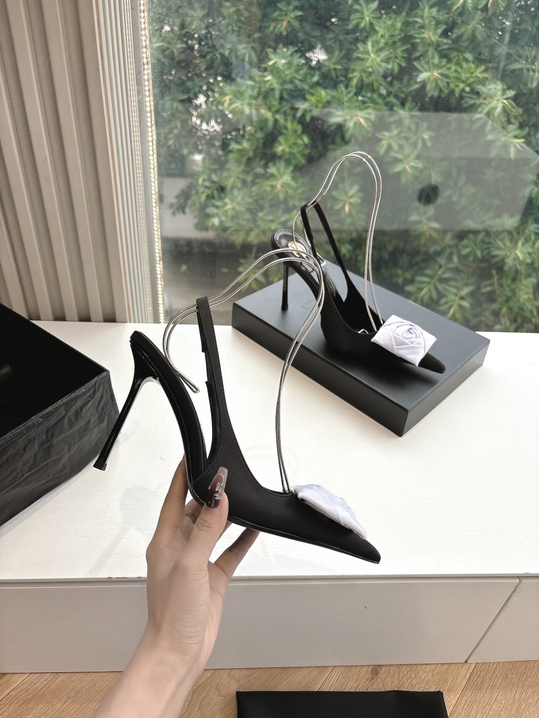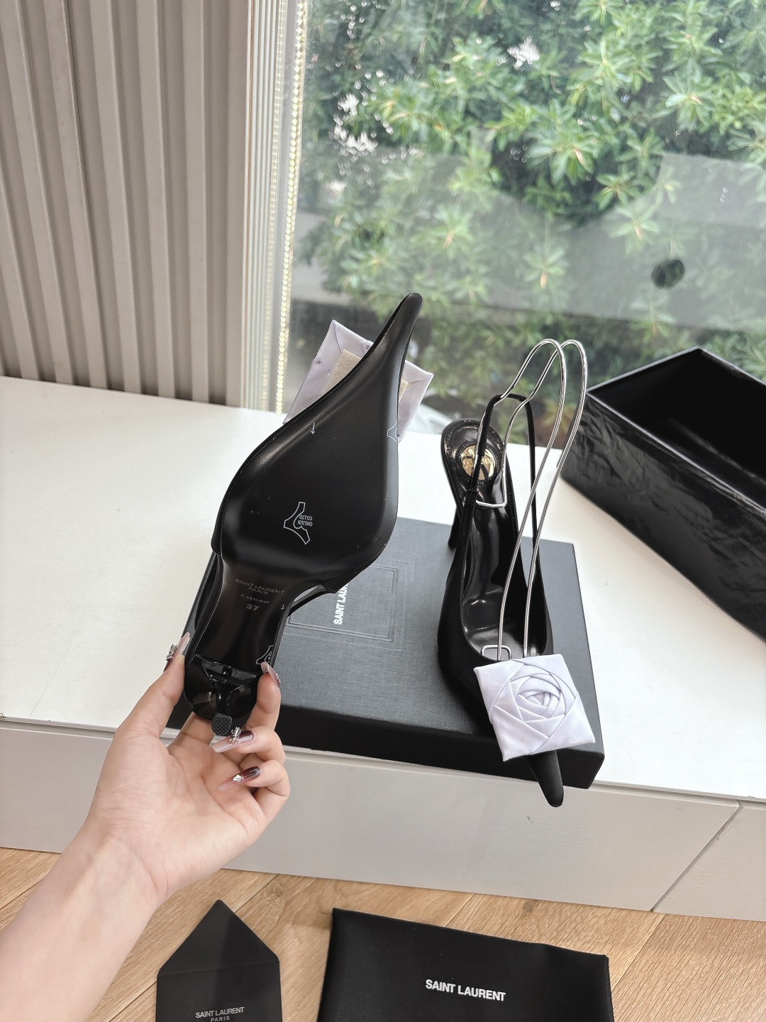 这款鞋子是AAAAA 1:1 质量 (非常棒). 使用了和原版一模一样的材料. 商标部分也保持了和圣罗兰/Saint Laurent一样. 图片拍摄是实物鞋子拍摄, 您所收到的实物保证和我们图片一模一样.