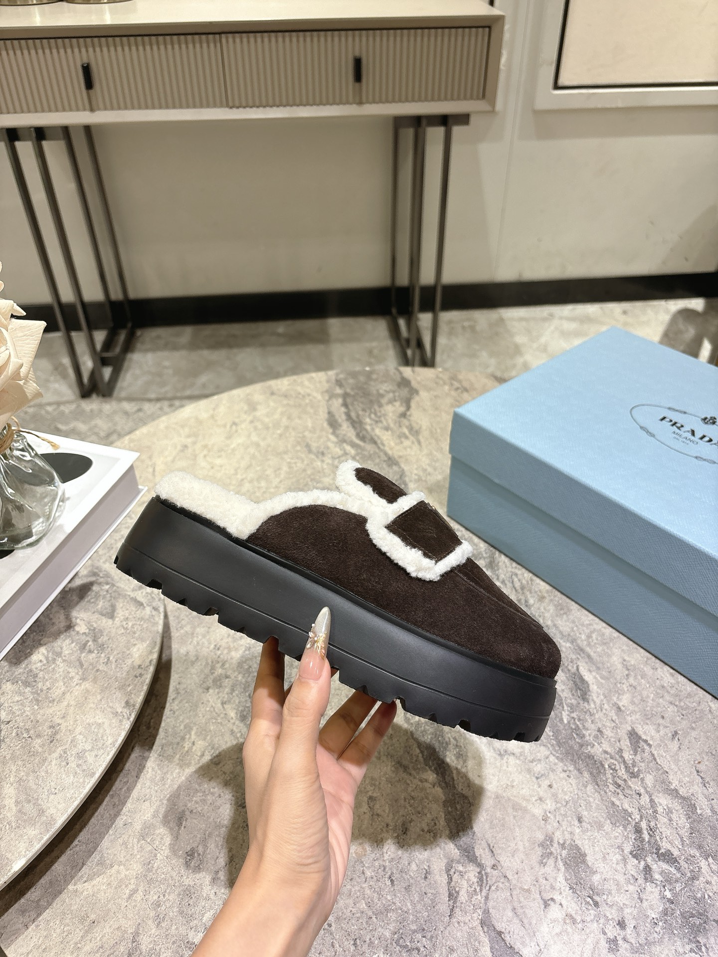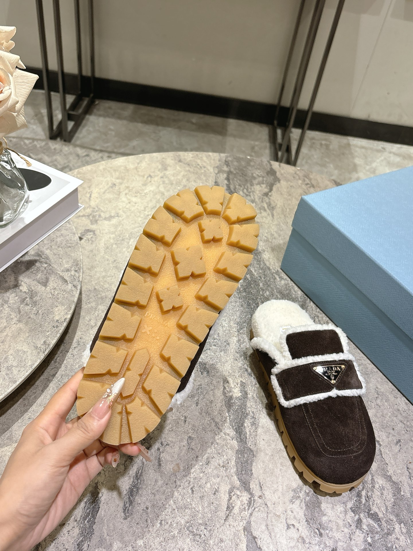 这款鞋子是AAAAA 1:1 质量 (非常棒). 使用了和原版一模一样的材料. 商标部分也保持了和普拉达/Prada一样. 图片拍摄是实物鞋子拍摄, 您所收到的实物保证和我们图片一模一样.