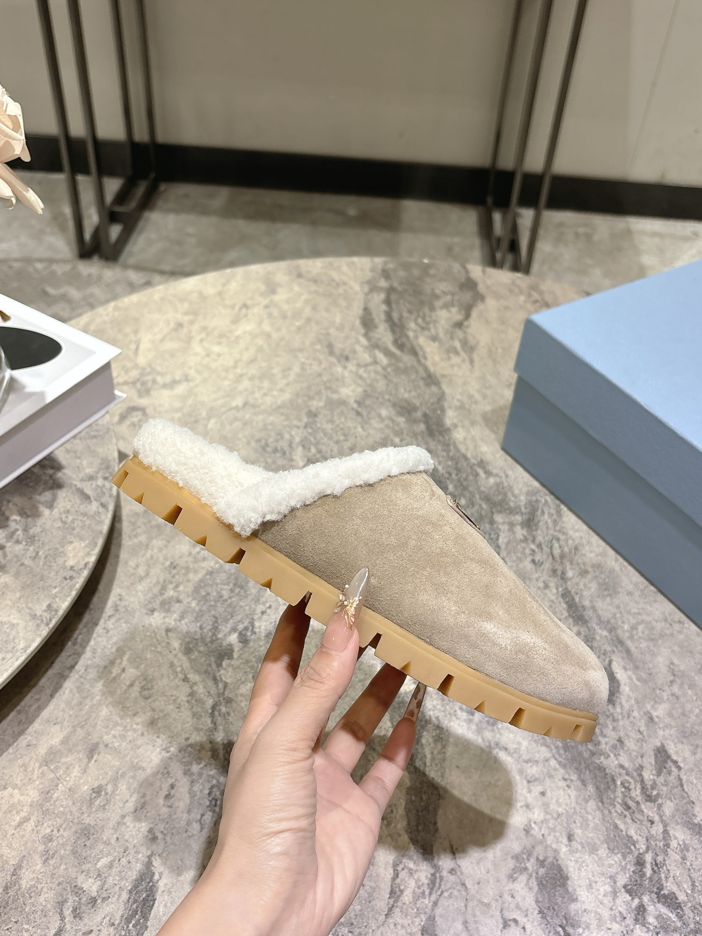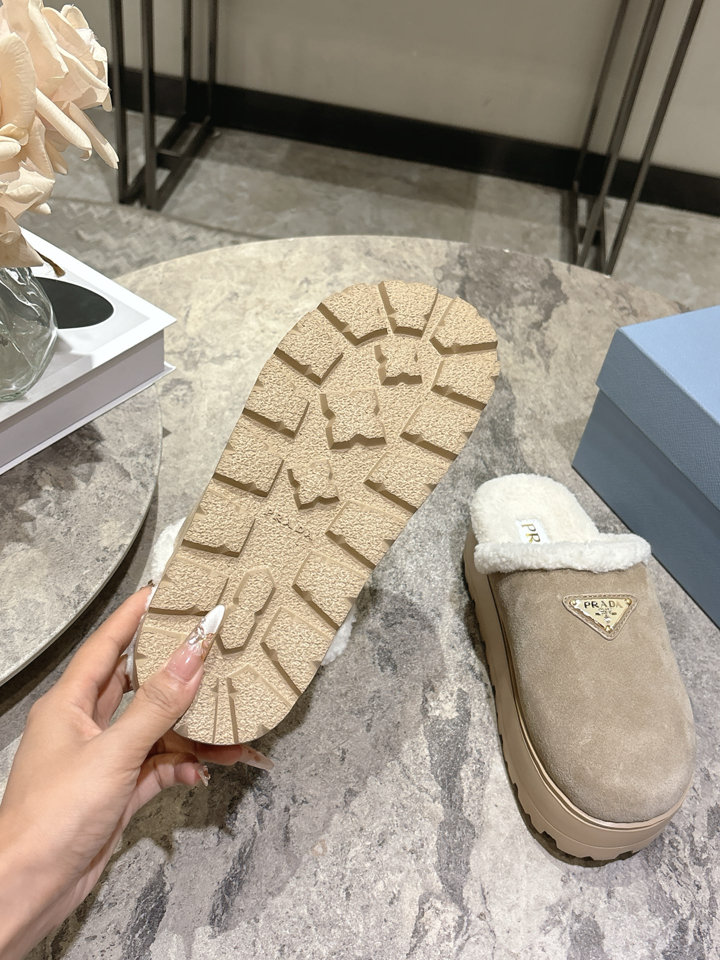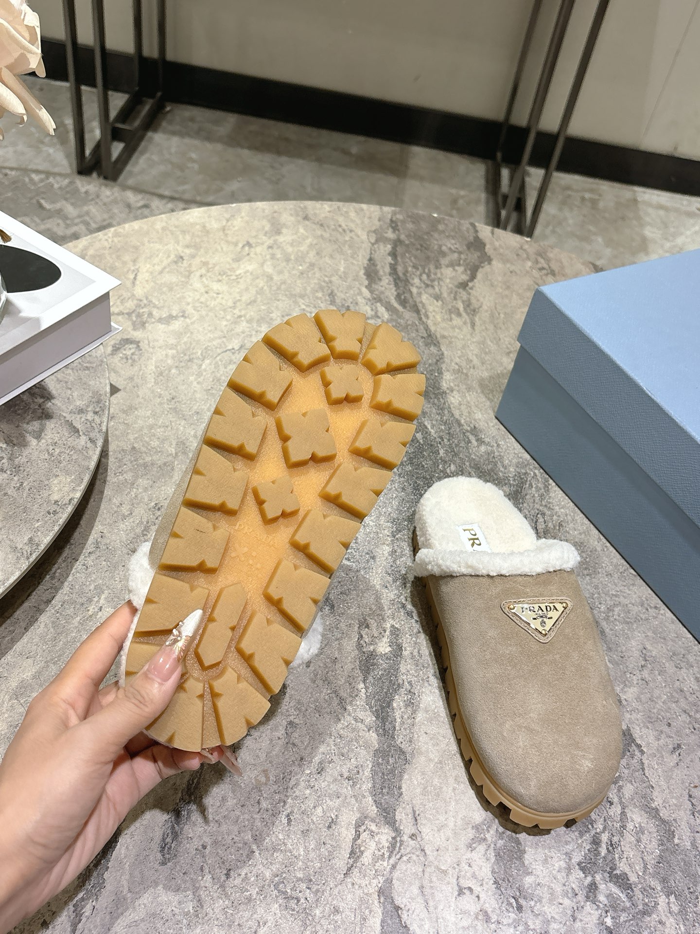 这款鞋子是AAAAA 1:1 质量 (非常棒). 使用了和原版一模一样的材料. 商标部分也保持了和普拉达/Prada一样. 图片拍摄是实物鞋子拍摄, 您所收到的实物保证和我们图片一模一样.