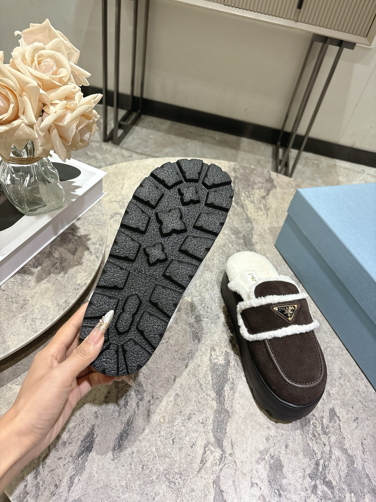 这款鞋子是AAAAA 1:1 质量 (非常棒). 使用了和原版一模一样的材料. 商标部分也保持了和普拉达/Prada一样. 图片拍摄是实物鞋子拍摄, 您所收到的实物保证和我们图片一模一样.